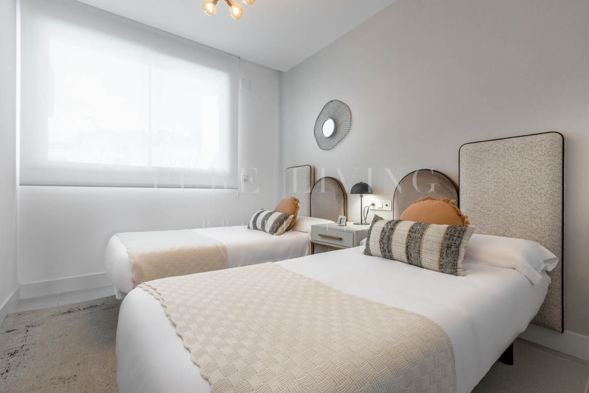 The community offers landscaped gardens and an open-air pool where you can enjoy the peace and quiet of the area, plus a fitness room and an indoor pool for complete care of mind and body. In addition, its south-southwest orientation takes full advantage of the natural light and affords impressive views to the sea. The common areas of Artola Homes have been conceived and designed considering the commitment to sustainability, with a wide range of features, and offering top-quality facilities.