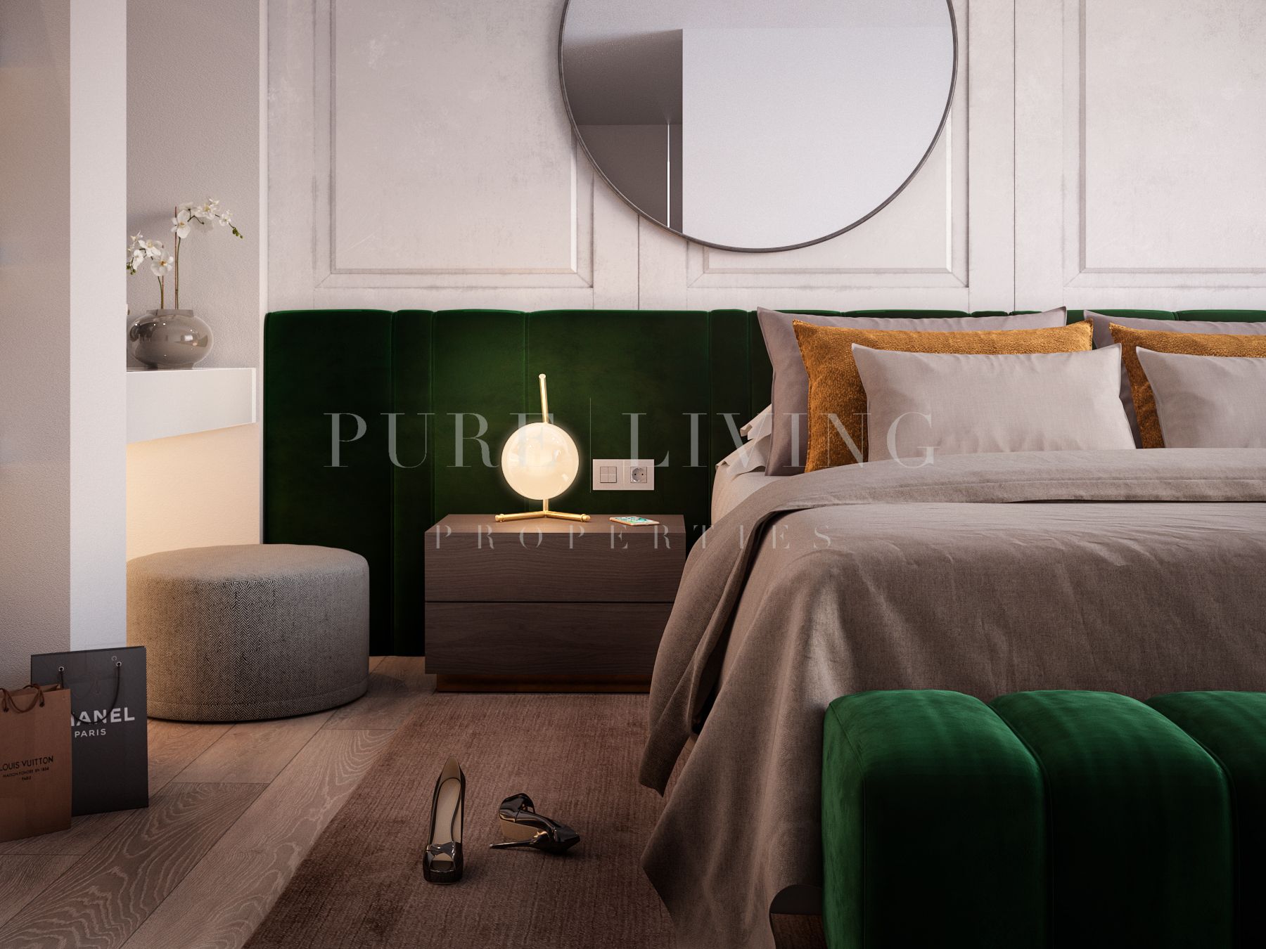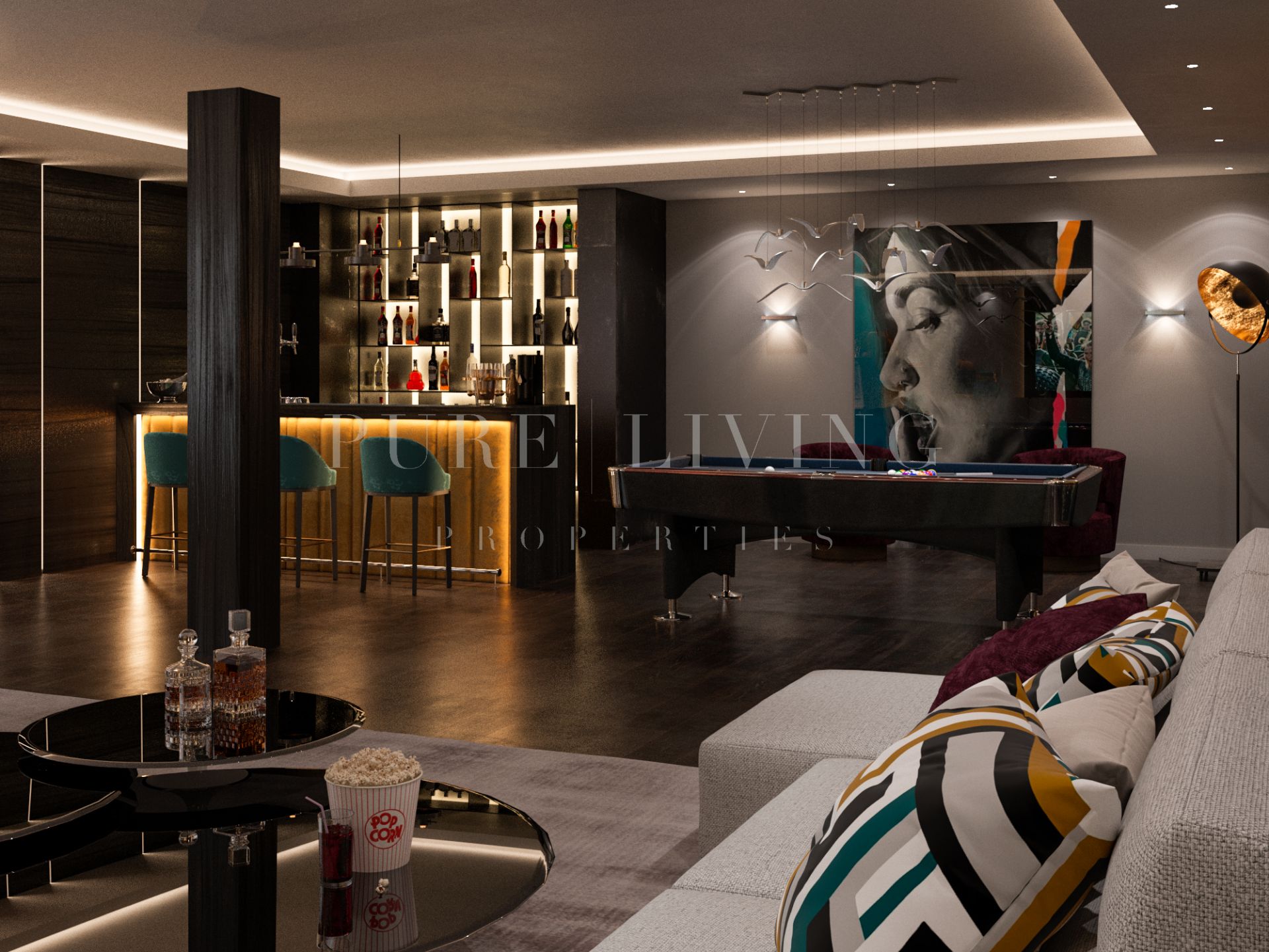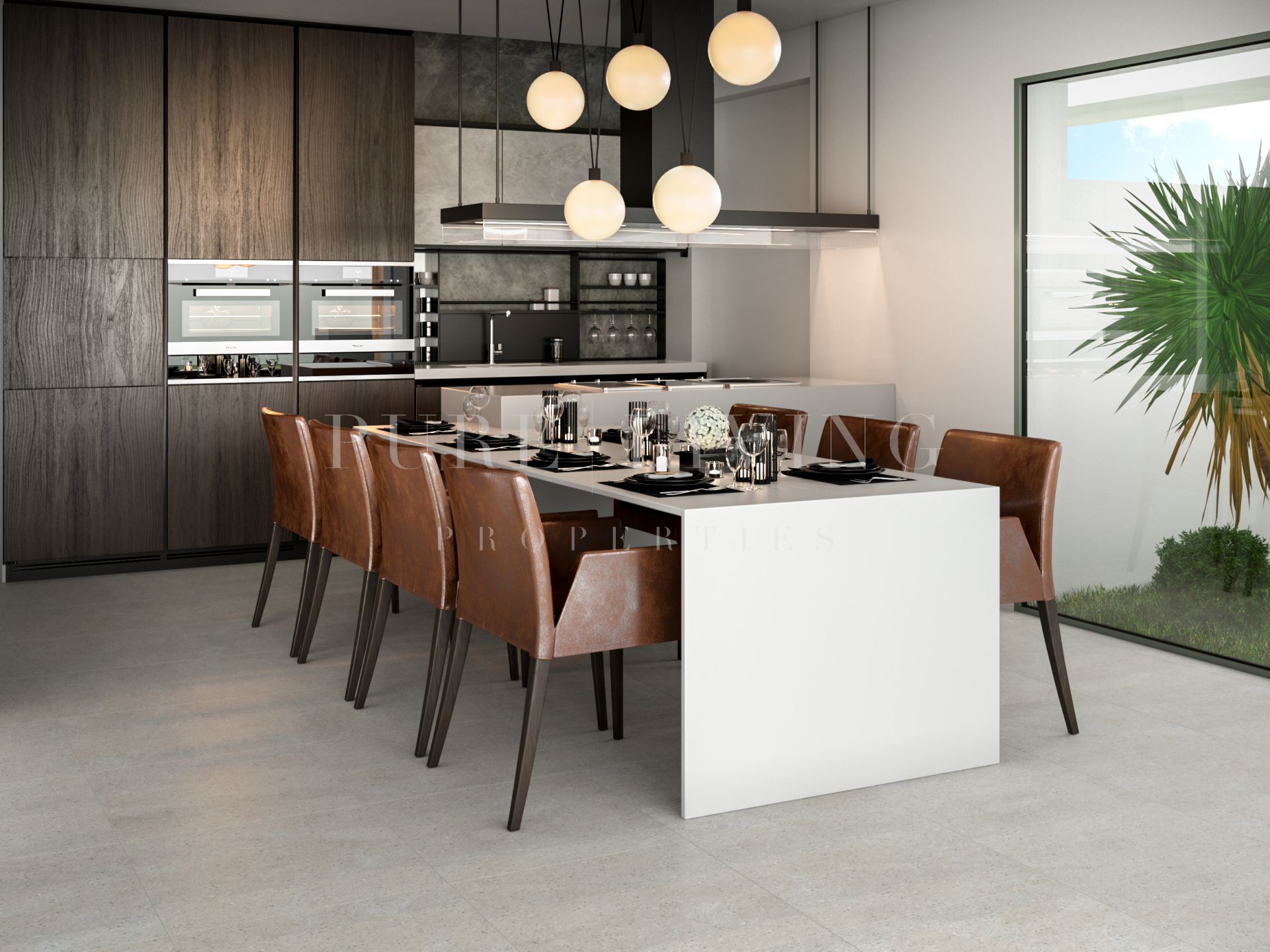 Each villa is divided between three floors, including an open plan living and dining area having access to the swimming pool and garden area, a fully equipped kitchen with German appliances, four bedrooms with en-suite bathrooms, and a basement that is multi-purpose having the possibility to be completely personalized, building extra bedrooms, gym, games room, home cinema, etc. Also, there is two covered parking spaces for each villa.