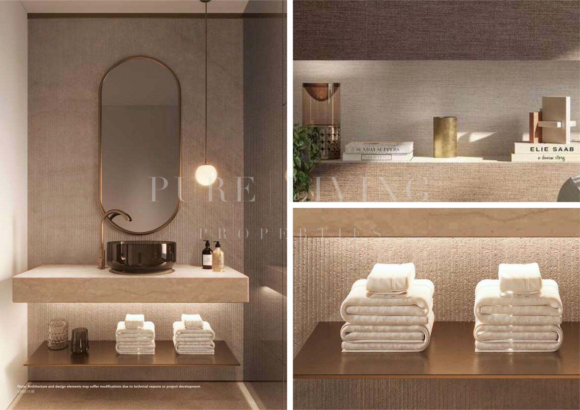 Chaque propriété unique, orientée au sud, se trouve sur un terrain de 2 000 à 2 200 m2, construite sur 1 000 m2, offre de grandes terrasses avec pergolas extérieures, une piscine à débordement et des jardins paysagers. Des espaces intérieurs libres et élégants, enrichis de pièces de la collection ELIE SAAB MAISON, qui s’ouvrent sur de vastes terrasses extérieures.