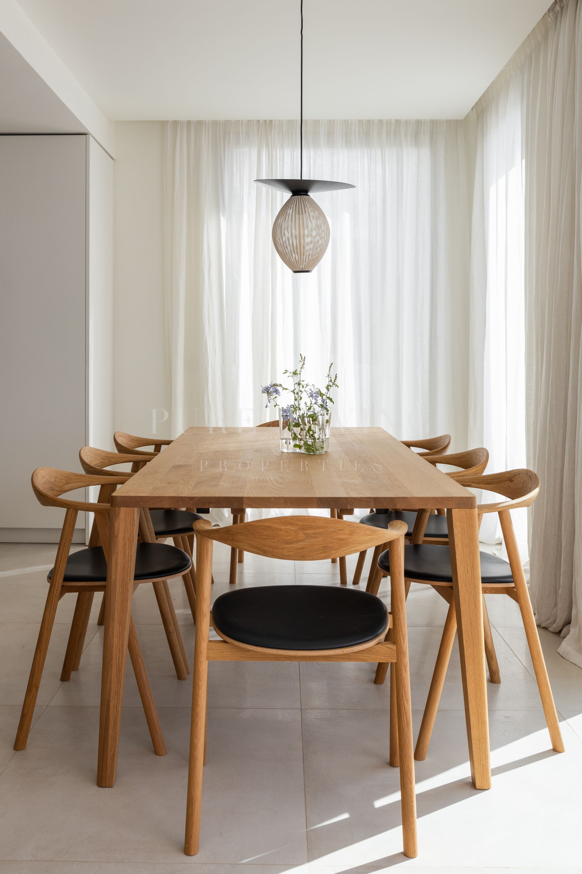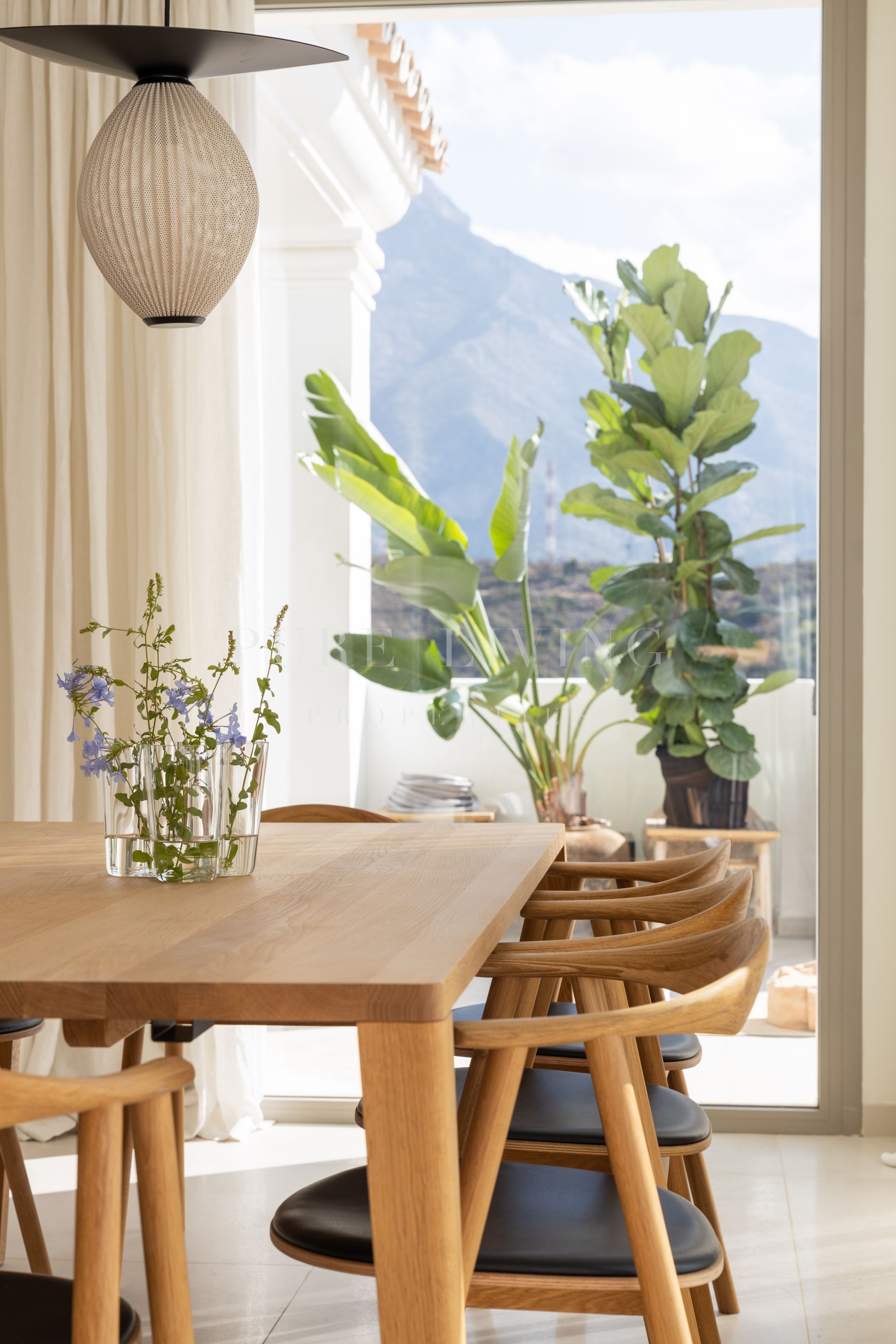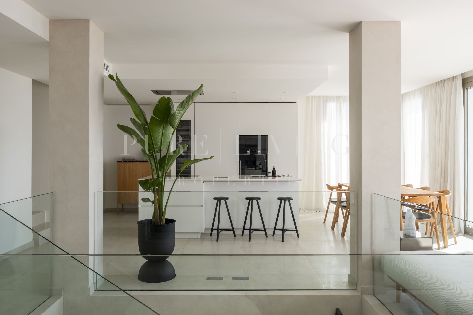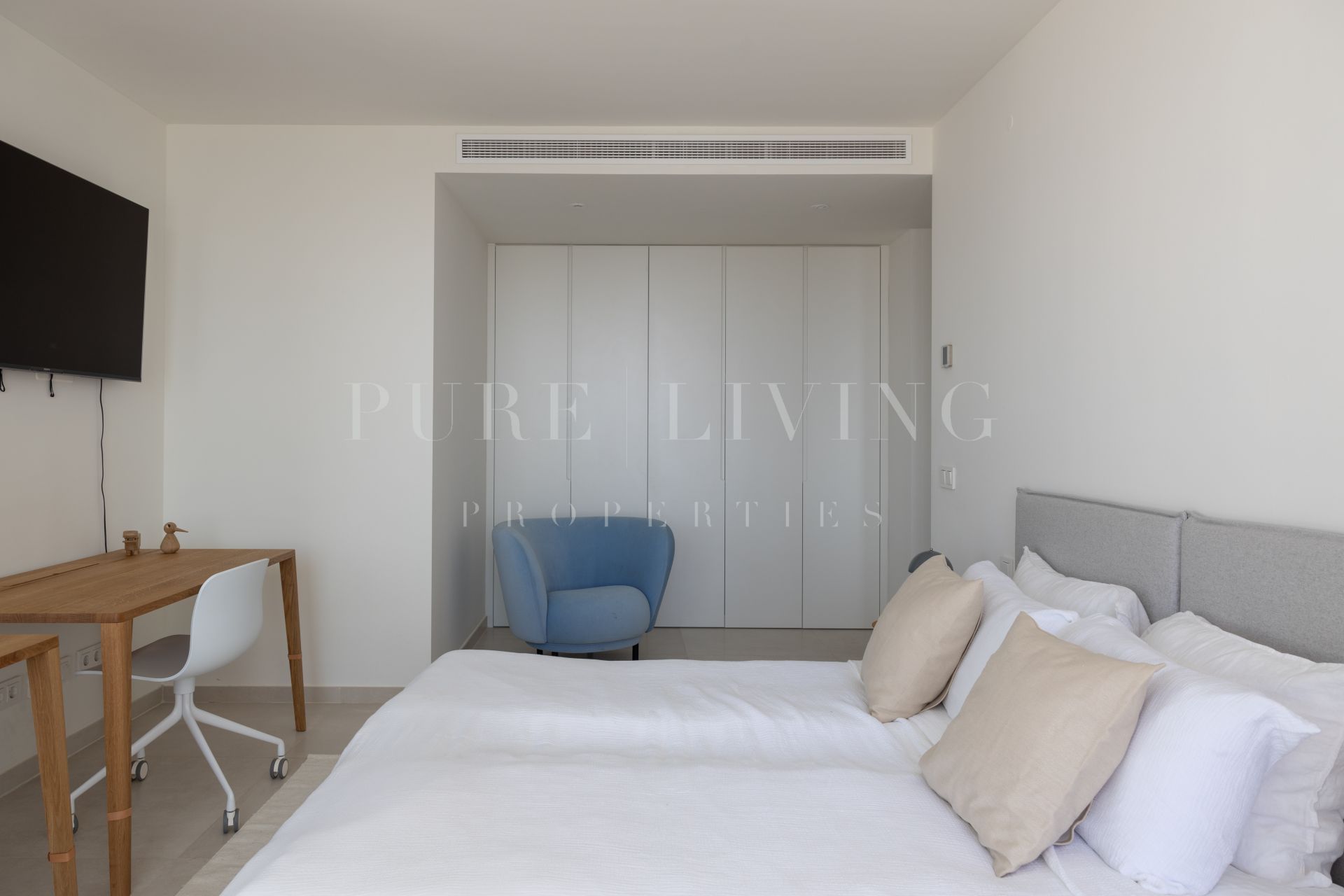 Designed with both comfort and style in mind, the apartment showcases a unique layout and high-quality finishes throughout, including premium appliances by Gaggenau and elegant bathrooms by Villeroy & Boch. Expansive floor-to-ceiling windows flood the interiors with natural light, while partially covered terraces allow for year-round outdoor living, making the most of over 300 days of sunshine.