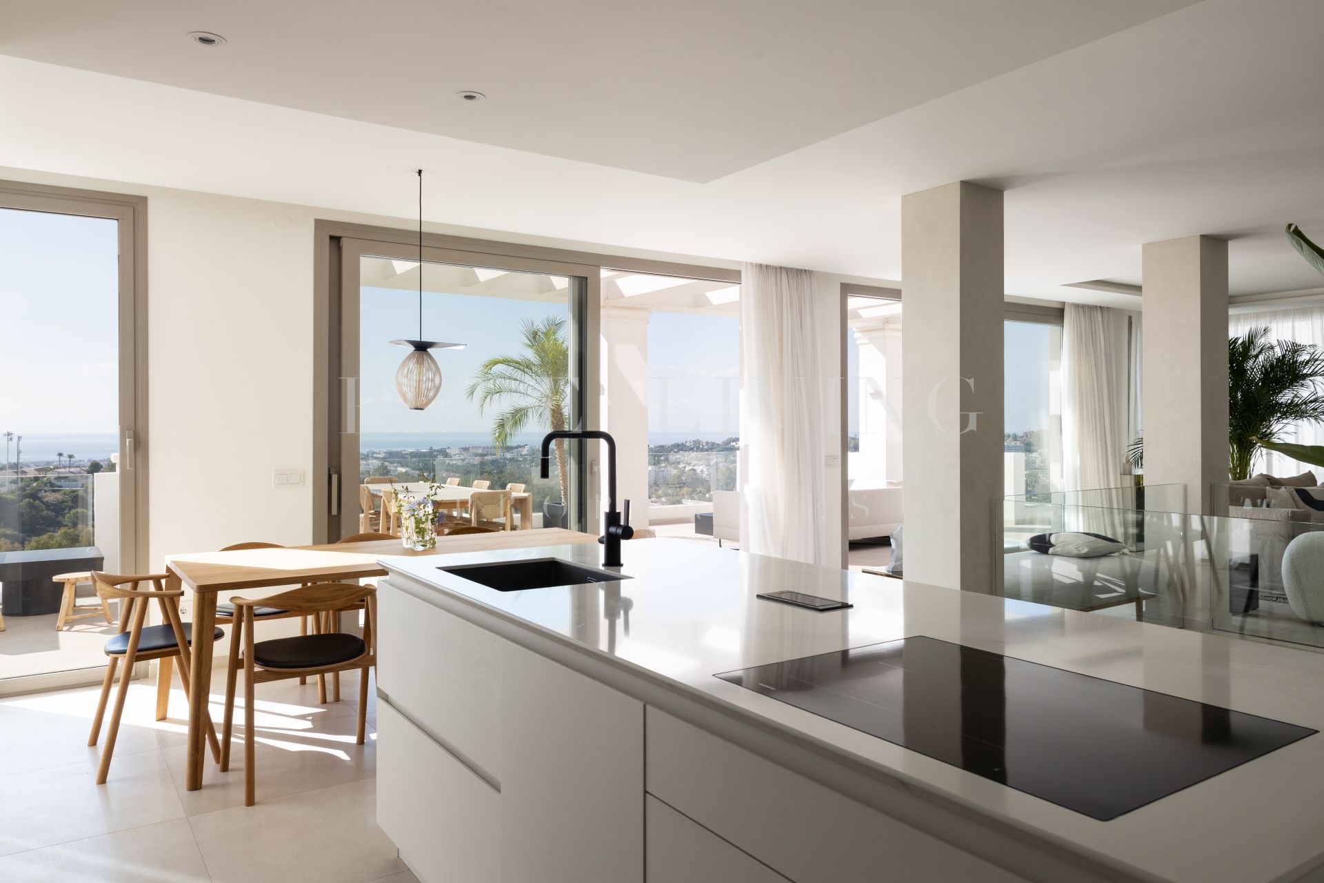 This beautifully designed duplex penthouse combines privacy, space, and spectacular views. One of the bedrooms enjoys serene views towards La Concha mountain and Turtle Lake, while the main living areas and terraces face south, offering breathtaking panoramic sea views.