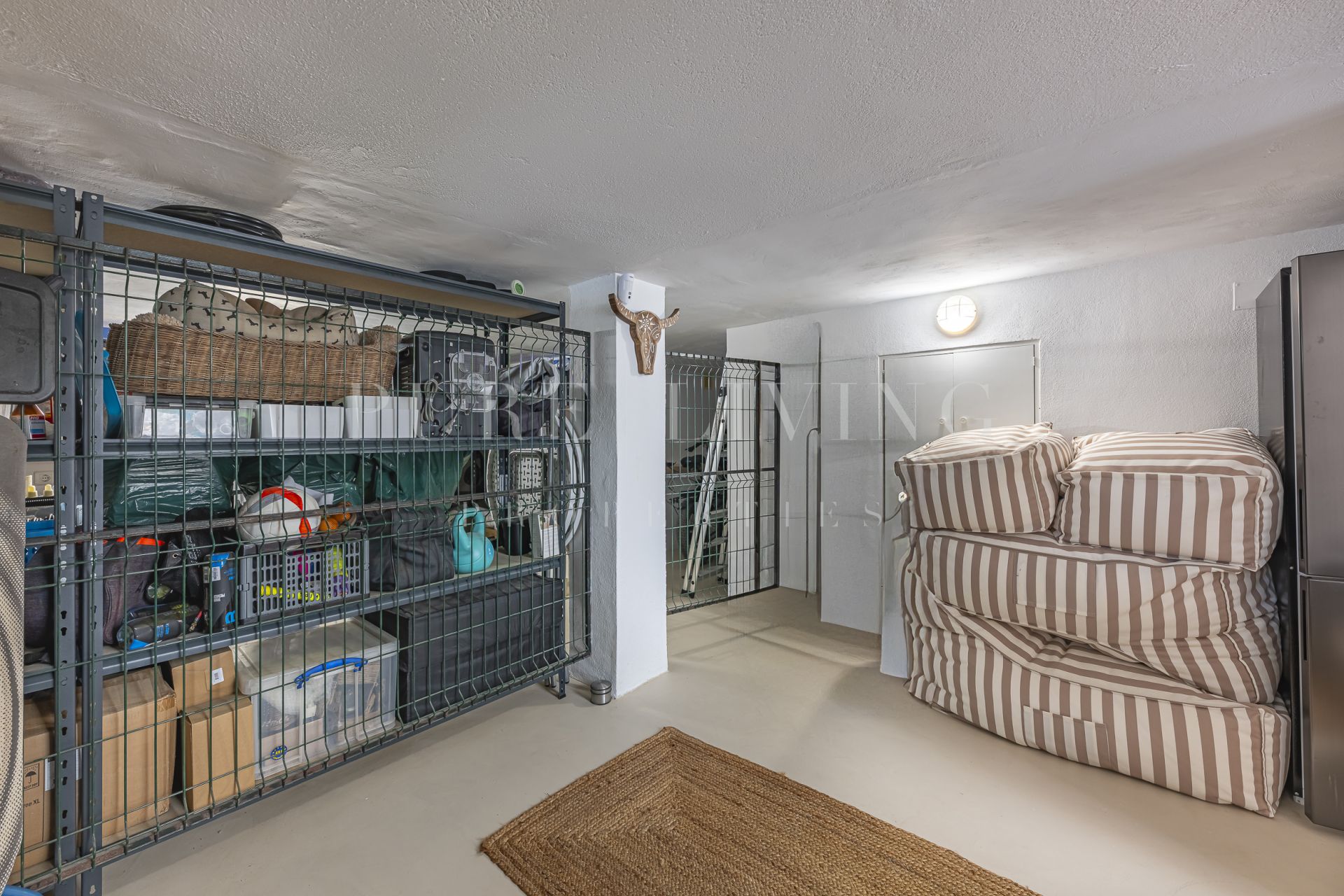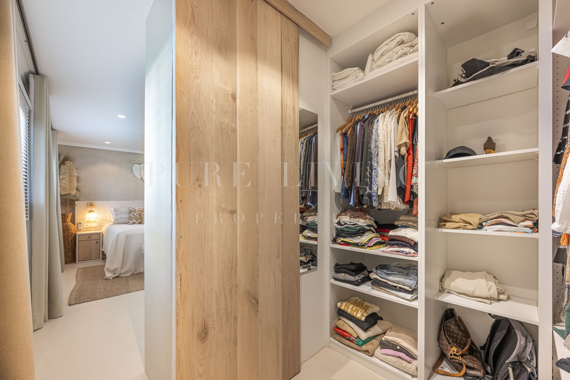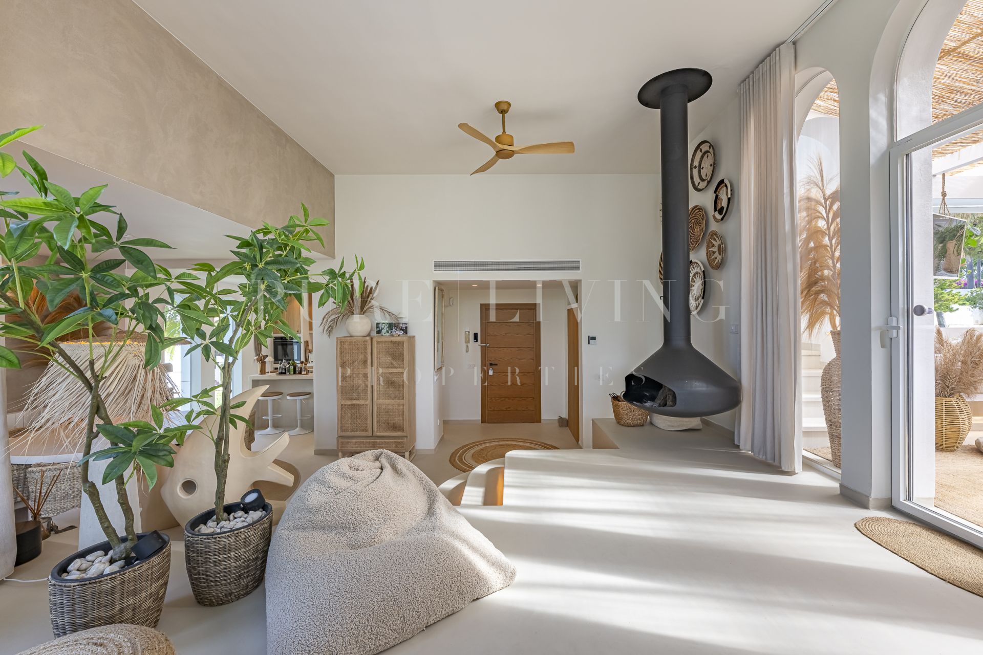 This exceptional villa renovated by the current owners to the highest standards in 2023, showcases a refined modern Mediterranean design infused with Boho Chic Ibiza influences. The interiors exude understated elegance, blending warm wood accents, sleek ceramic surfaces, and luxurious details to create a contemporary yet inviting atmosphere.
