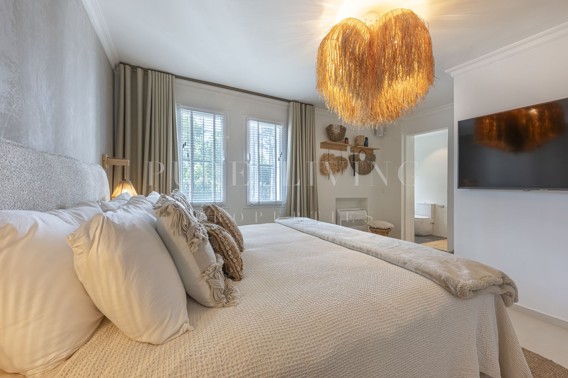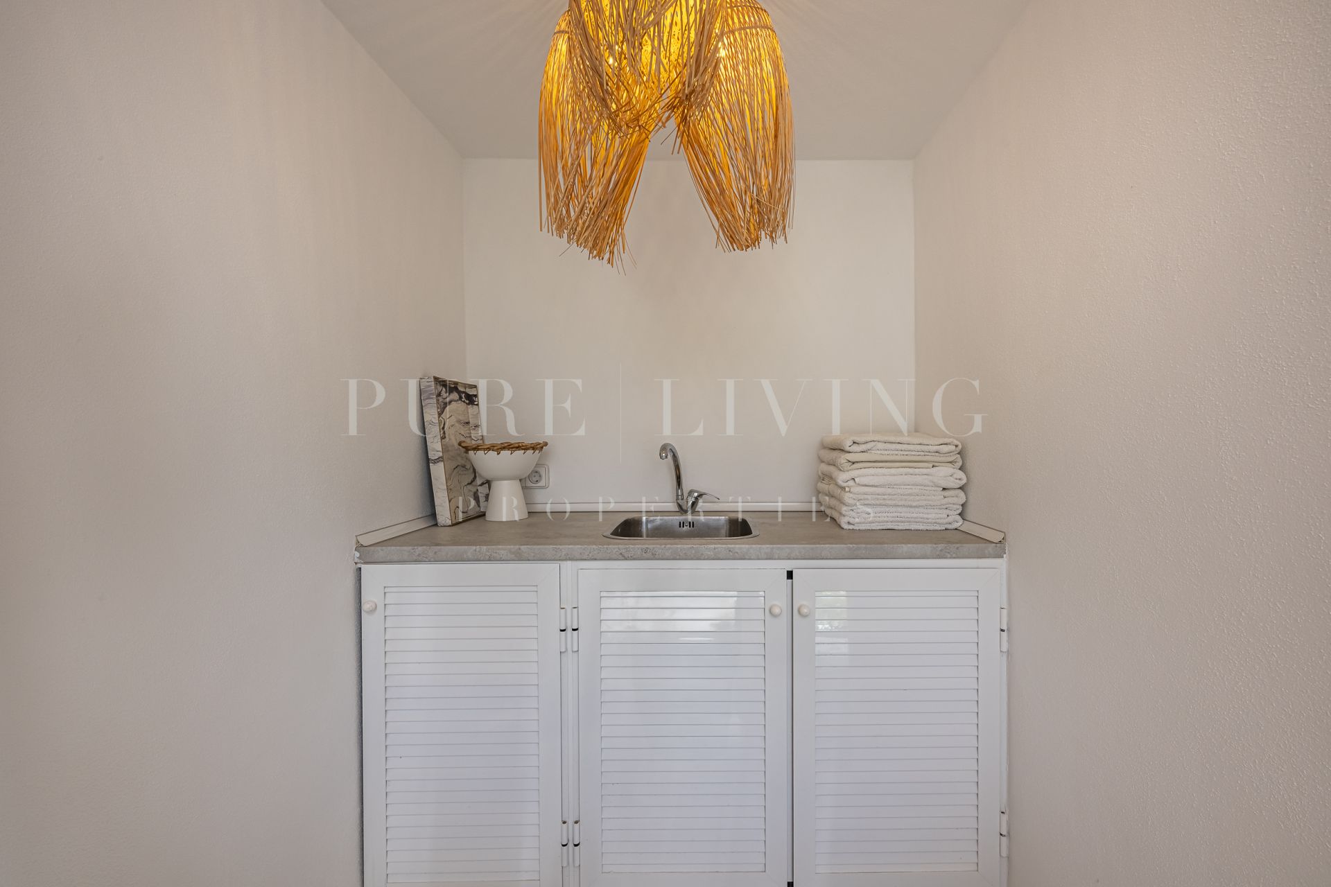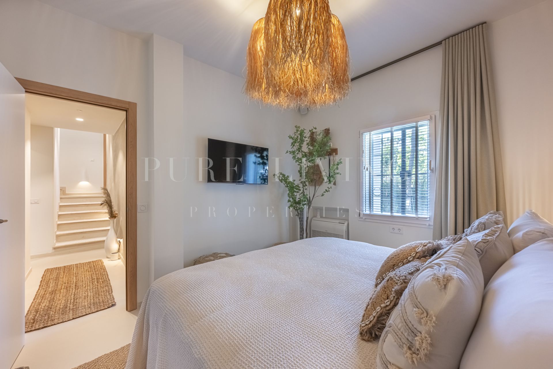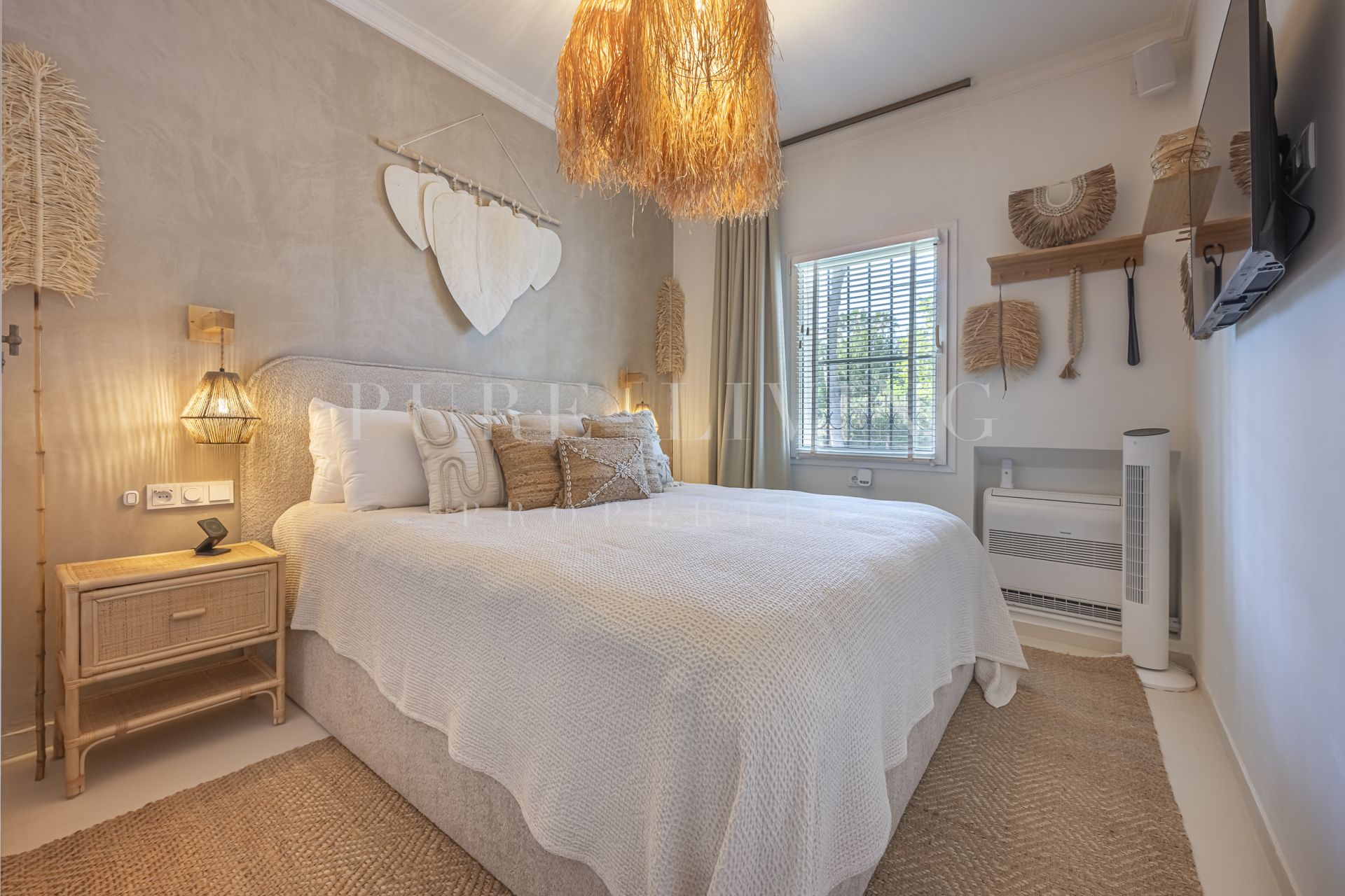 This exceptional villa renovated by the current owners to the highest standards in 2023, showcases a refined modern Mediterranean design infused with Boho Chic Ibiza influences. The interiors exude understated elegance, blending warm wood accents, sleek ceramic surfaces, and luxurious details to create a contemporary yet inviting atmosphere.