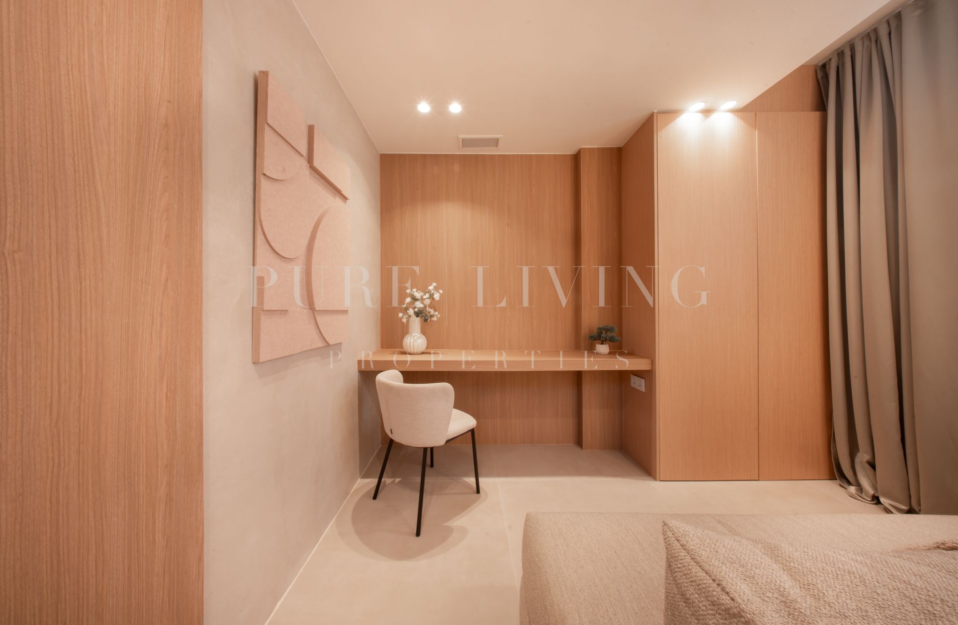 Thoughtfully redesigned to the highest standards, the home offers four bedrooms, including a spacious en-suite, an additional full bathroom, and a guest toilet—providing ample comfort for family and guests alike. Elegant microcement finishes, concealed LED lighting, and custom-crafted carpentry infuse every space with a refined, contemporary character.