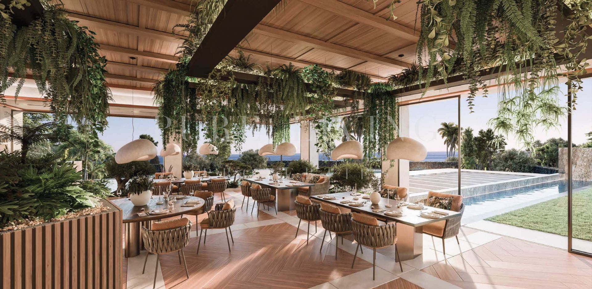 Spanning an impressive 760 m², this 4-bedroom, 5-bathroom residence is designed for those who appreciate elegance, comfort, and world-class amenities. The 391 m² interior boasts expansive living spaces with floor-to-ceiling glass doors, seamlessly connecting indoor and outdoor areas. The 369 m² terrace provides the perfect setting for relaxation and entertaining, complete with a private pool and garden, all while enjoying panoramic sea, golf, and mountain views.
