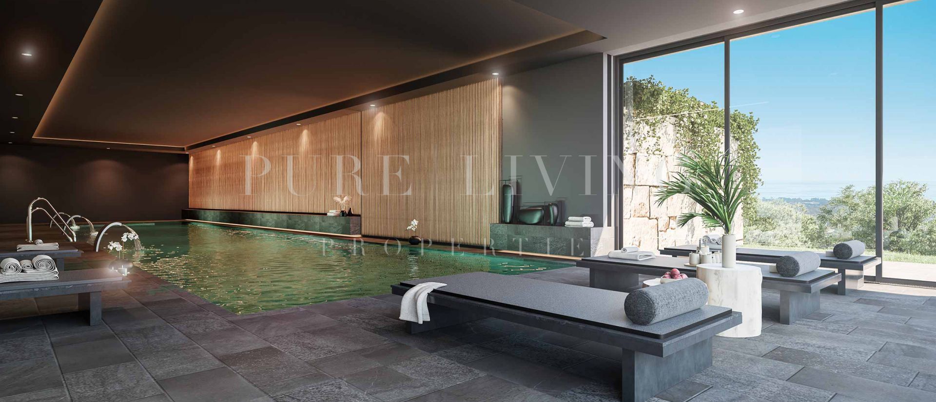 Private terrace, Living room, Close to shops, Close to town, Sea view, Mountain view, Indoor pool, Heated pool, Underfloor heating (throughout), Smart home system, Laundry room, Covered terrace, Fitted wardrobes, Gated community, Garden view, Pool view, Panoramic view, Cinema room, Amenities near, Air conditioning, Fully furnished, Fully fitted kitchen, Sauna, Close to golf, Uncovered terrace, Basement, Glass Doors, Guest room, Gym, Open plan kitchen, Security entrance, SPA, Video entrance, Brand new, Excellent condition, Dining room, Security service 24h, Guest toilet.