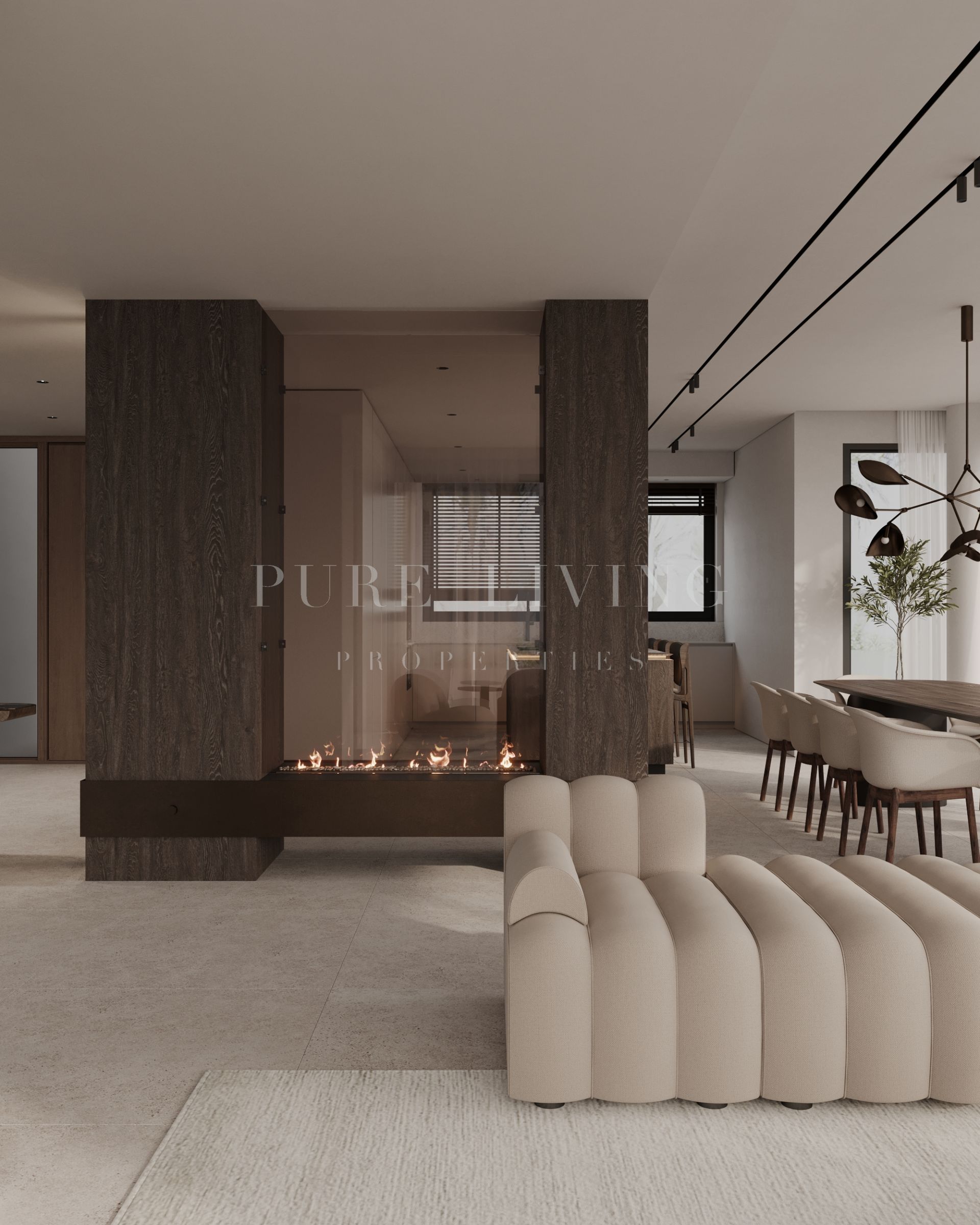 Set on a generous 1,152 m² plot, the residence offers 515 m² of refined interior space complemented by 298 m² of terraces, creating a seamless flow between indoor and outdoor living.