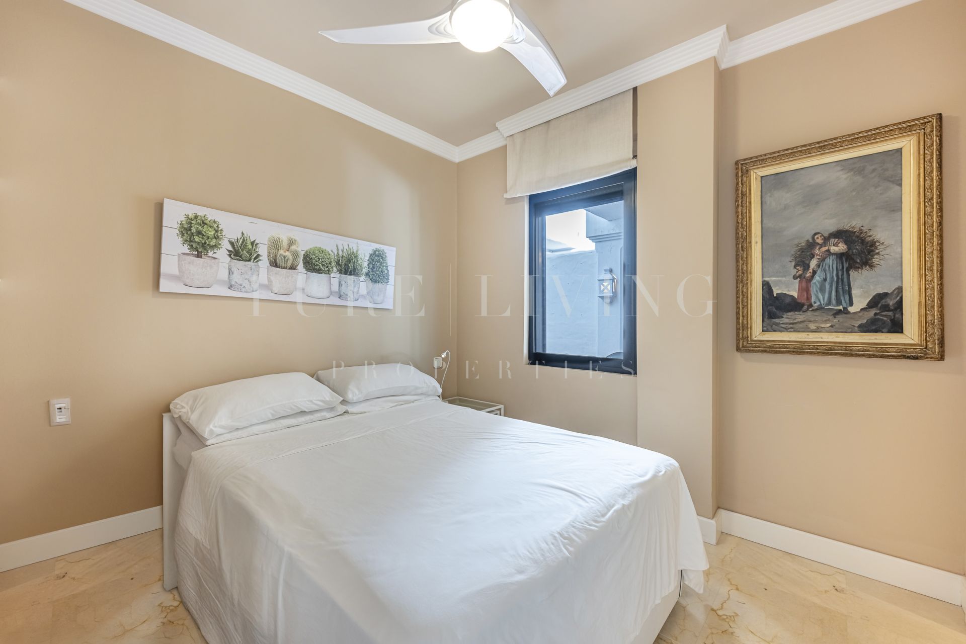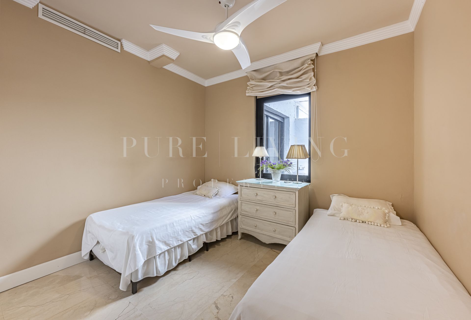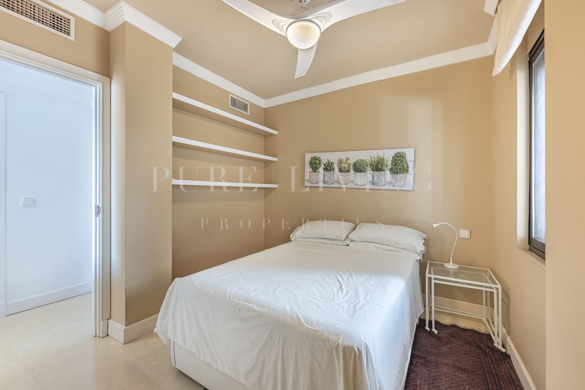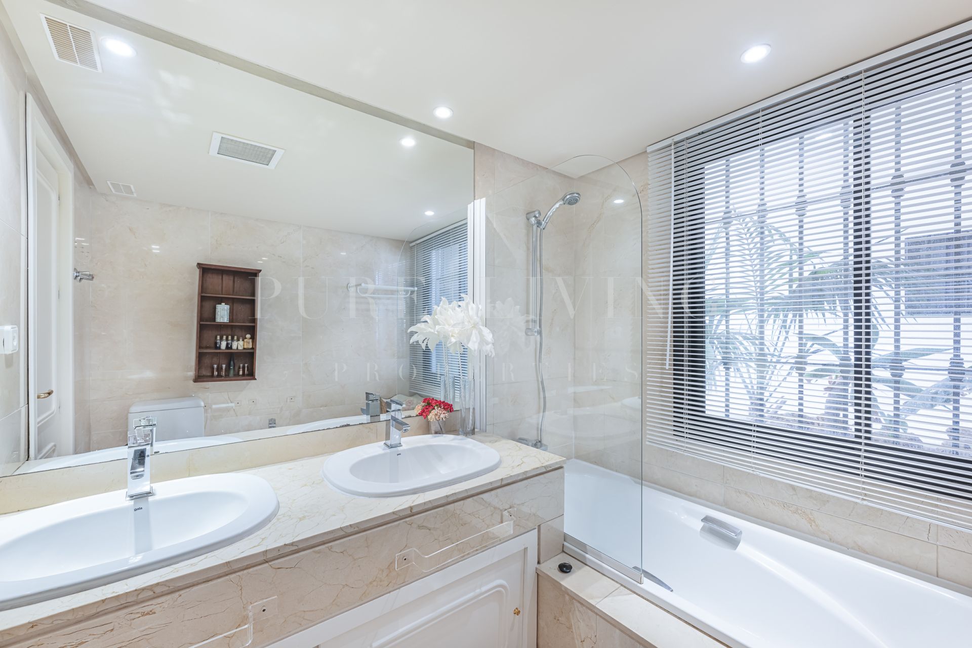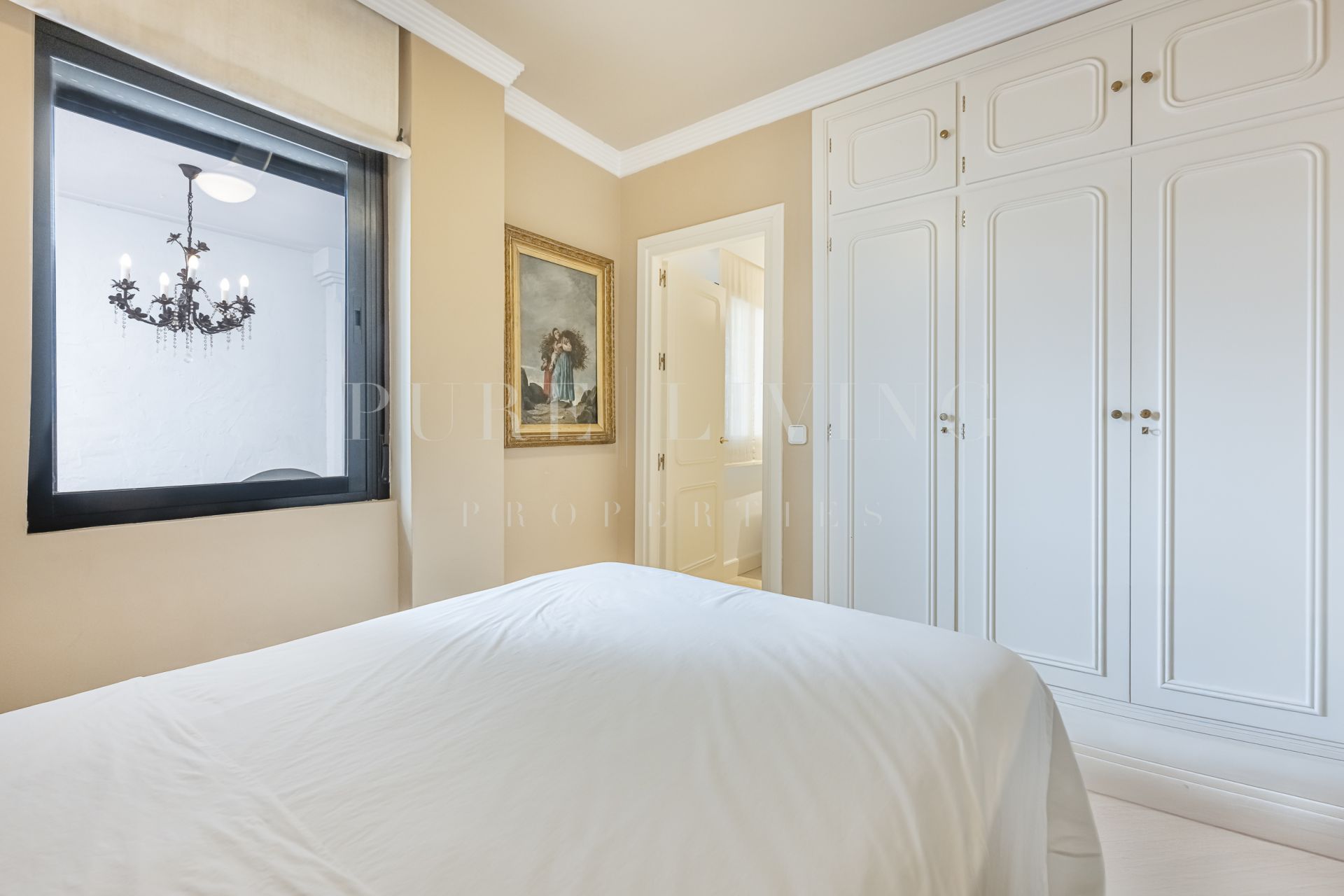 This exclusive complex offers 24-hour security, beautiful Mediterranean gardens and a large swimming pool, creating a tranquil and high quality living environment. Furthermore, its strategic location, just minutes away from Puente Romano, the Marbella Club, Marbella centre and Puerto Banús, allows access to the best restaurants, luxury shops and entertainment venues in the area. The beach is just a pleasant stroll away, where you can enjoy the famous beach bars along the promenade.