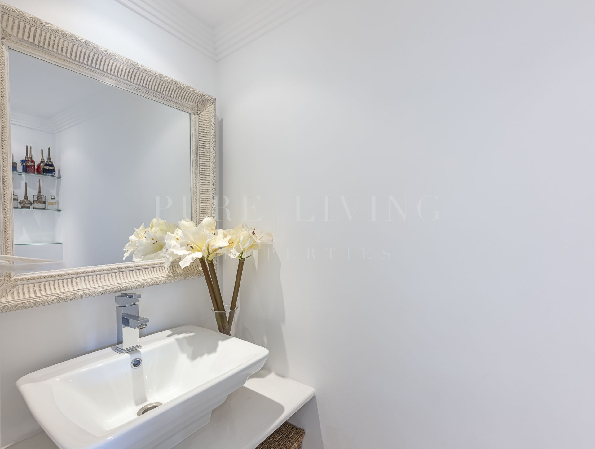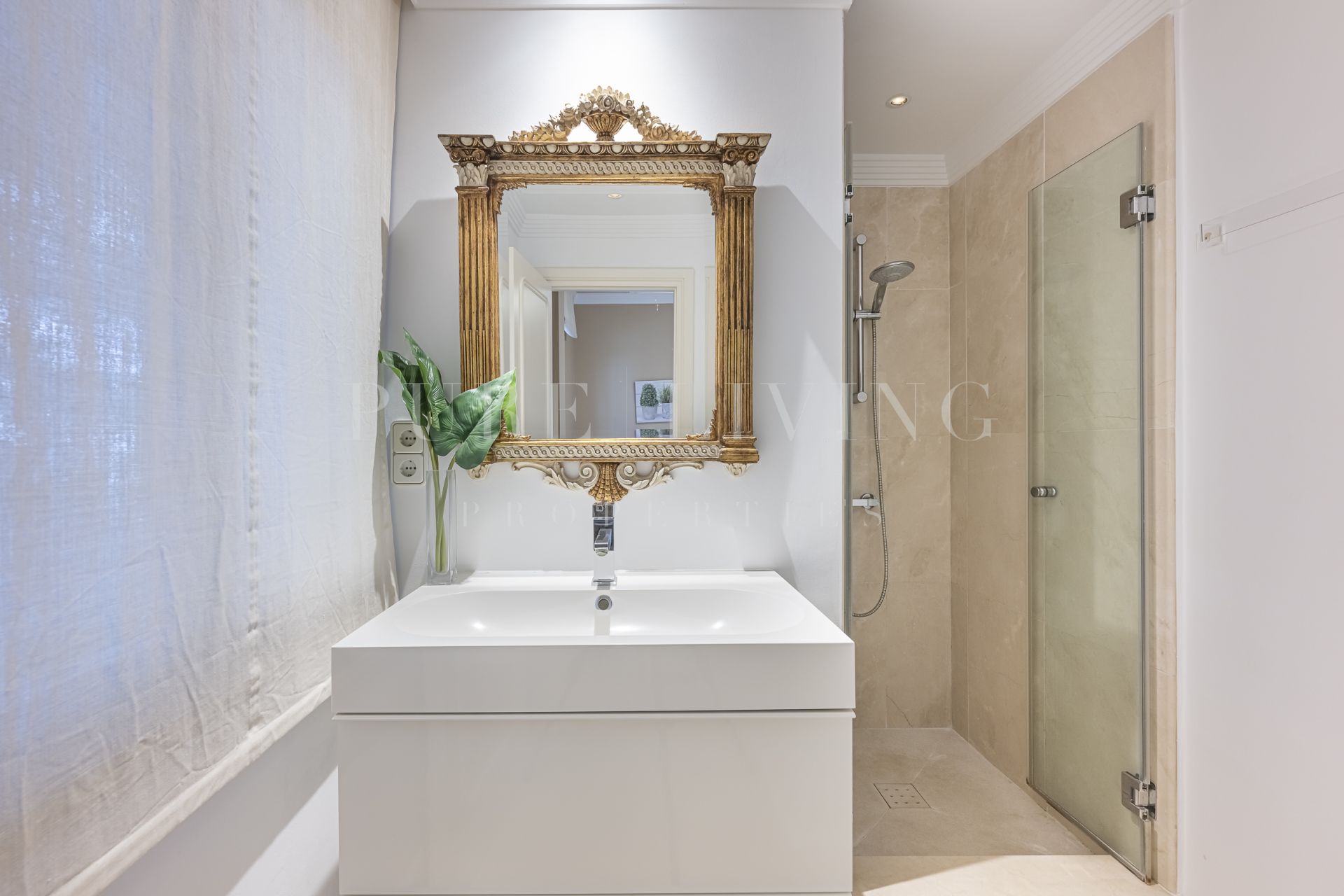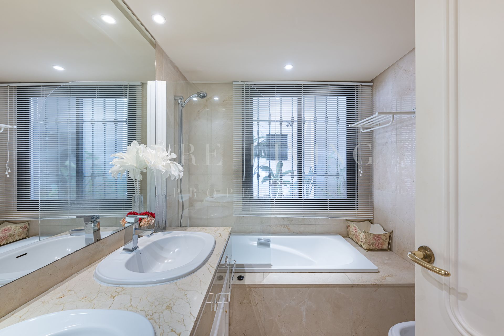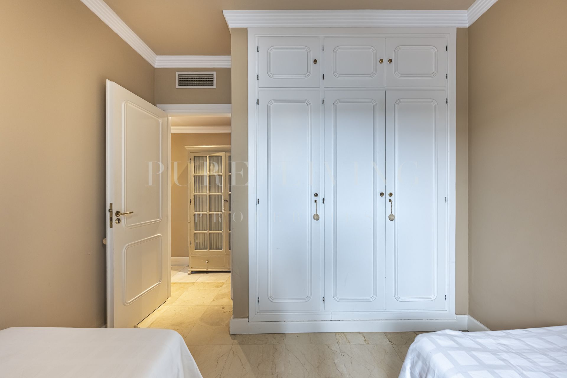 This exclusive complex offers 24-hour security, beautiful Mediterranean gardens and a large swimming pool, creating a tranquil and high quality living environment. Furthermore, its strategic location, just minutes away from Puente Romano, the Marbella Club, Marbella centre and Puerto Banús, allows access to the best restaurants, luxury shops and entertainment venues in the area. The beach is just a pleasant stroll away, where you can enjoy the famous beach bars along the promenade.