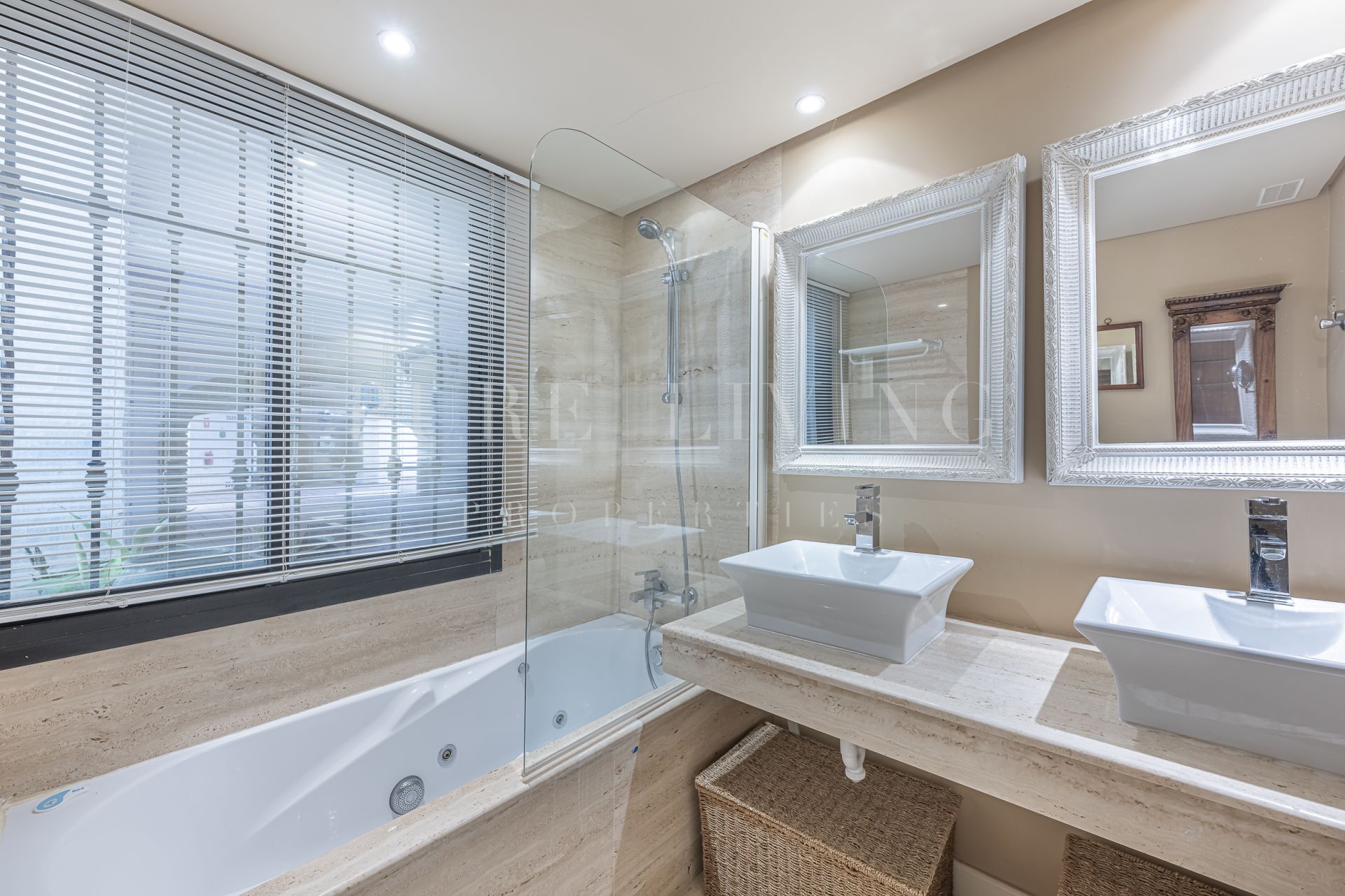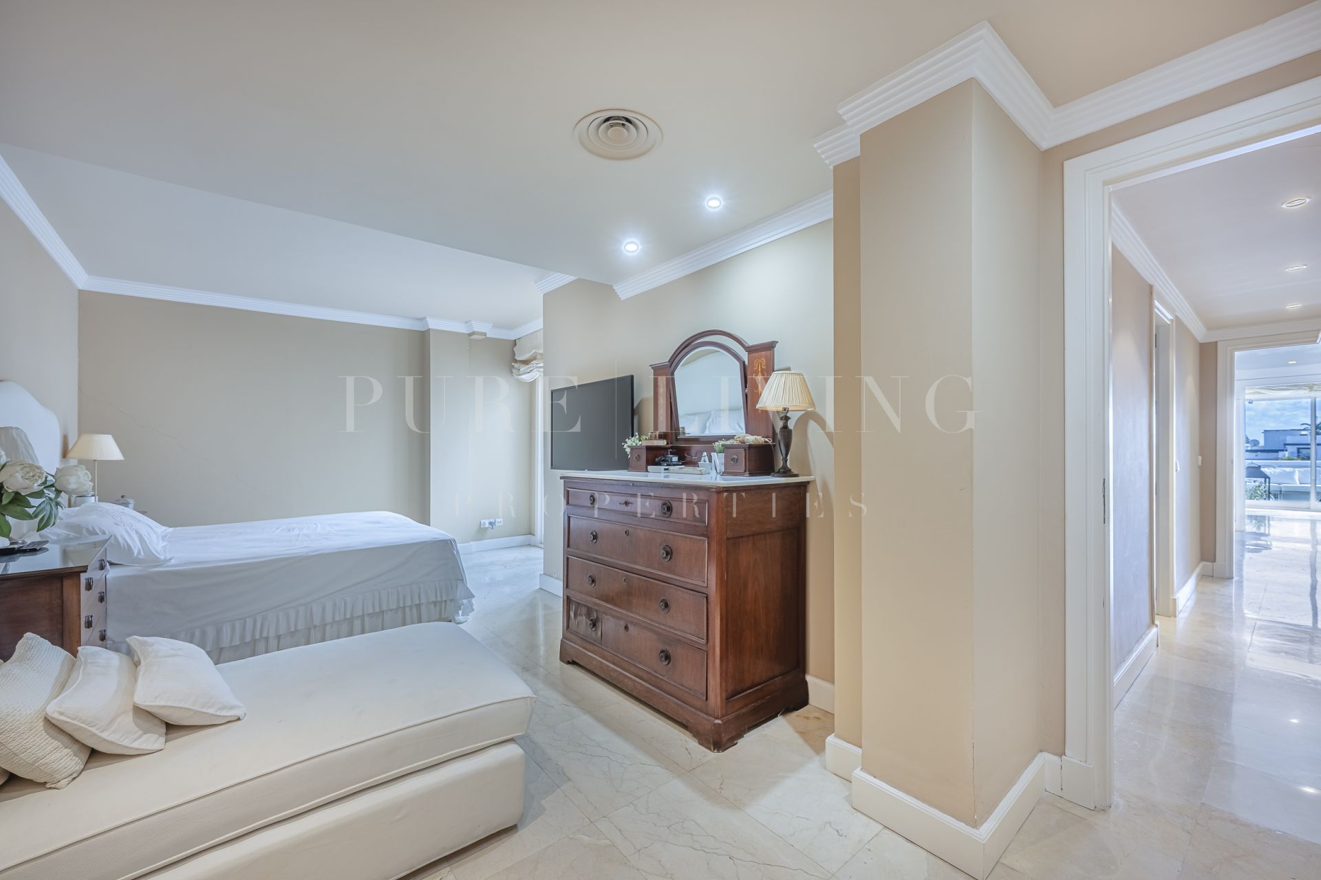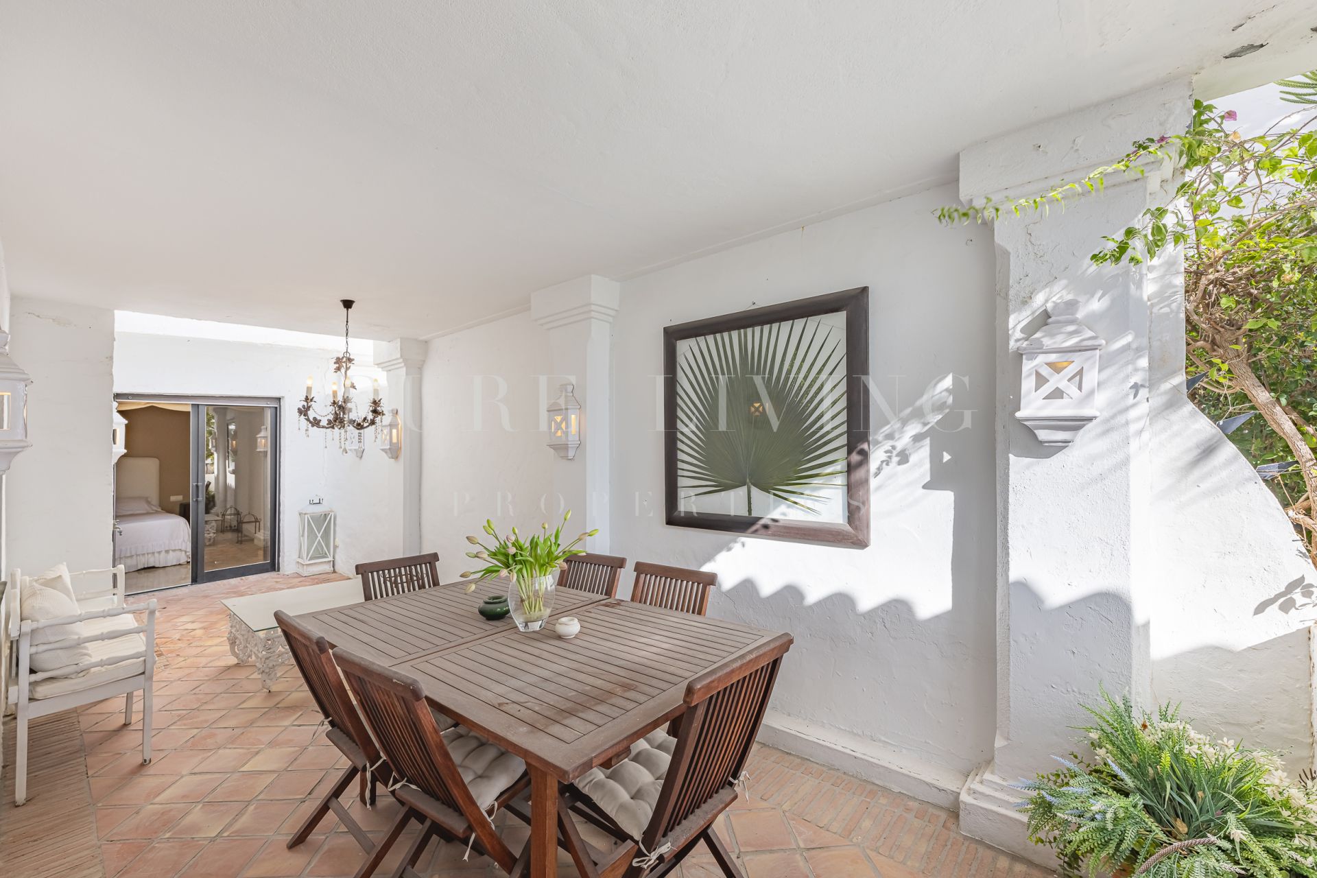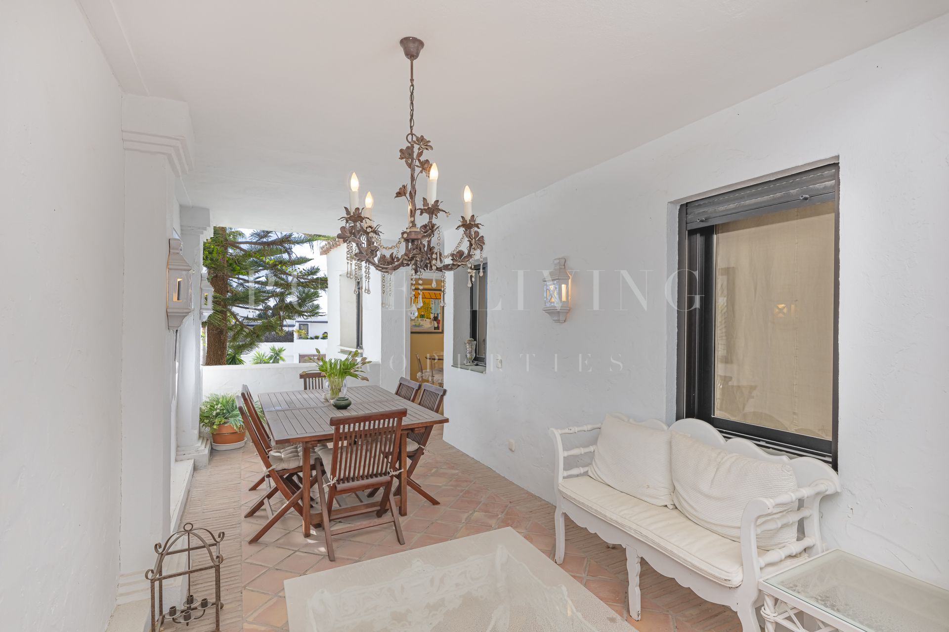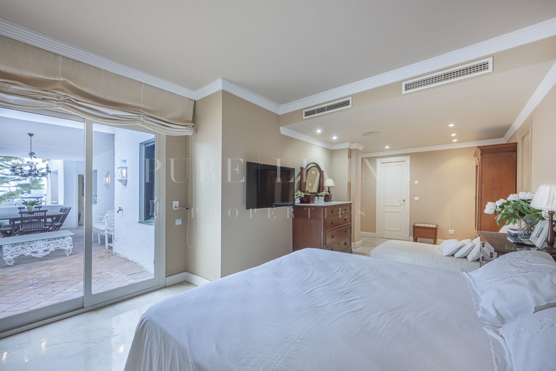This exclusive complex offers 24-hour security, beautiful Mediterranean gardens and a large swimming pool, creating a tranquil and high quality living environment. Furthermore, its strategic location, just minutes away from Puente Romano, the Marbella Club, Marbella centre and Puerto Banús, allows access to the best restaurants, luxury shops and entertainment venues in the area. The beach is just a pleasant stroll away, where you can enjoy the famous beach bars along the promenade.