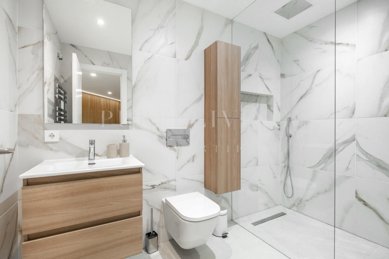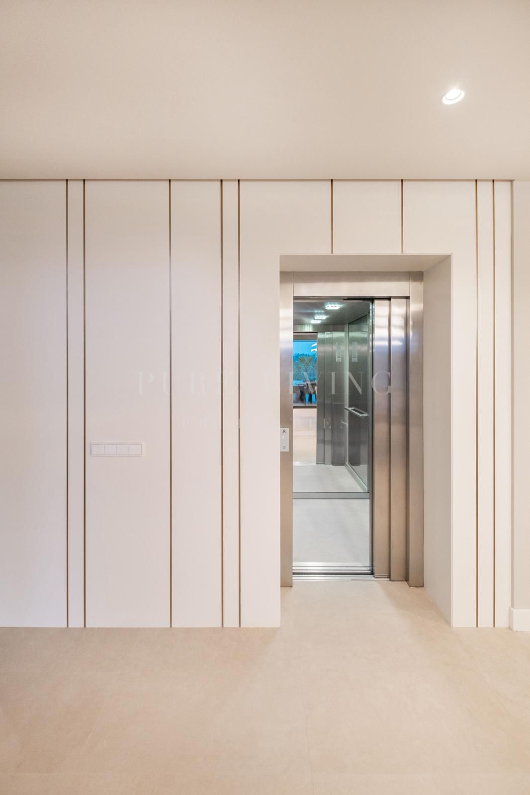 Further features include a large private garage for two vehicles, additional outdoor parking spaces, and a lift connecting all three levels. State-of-the-art amenities include aerothermal hot and cold air conditioning, water-based underfloor heating throughout with electric underfloor heating in the bathrooms, hydromassage bathtub, fireplace, integrated safe, video intercom, alarm system, and a home automation system operated via two included iPads.