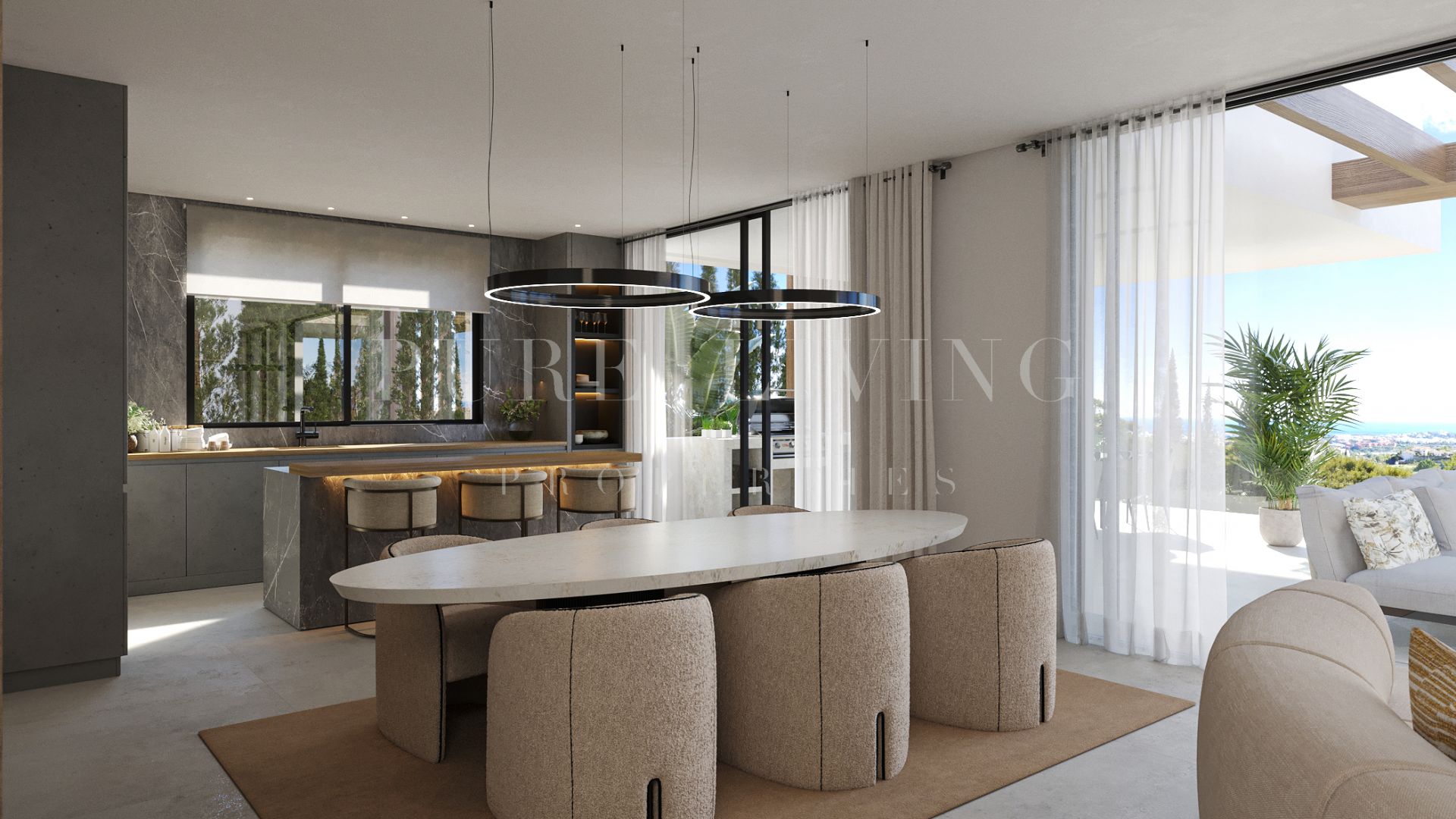 Located between Estepona and Marbella, the villas provide stunning panoramic views. They are conveniently close to major roads while still being surrounded by the calm of nature. In the desirable area near La Resina Golf Club on the New Golden Mile, you can enjoy the serene surroundings while having easy access to the vibrant attractions of the Costa del Sol.