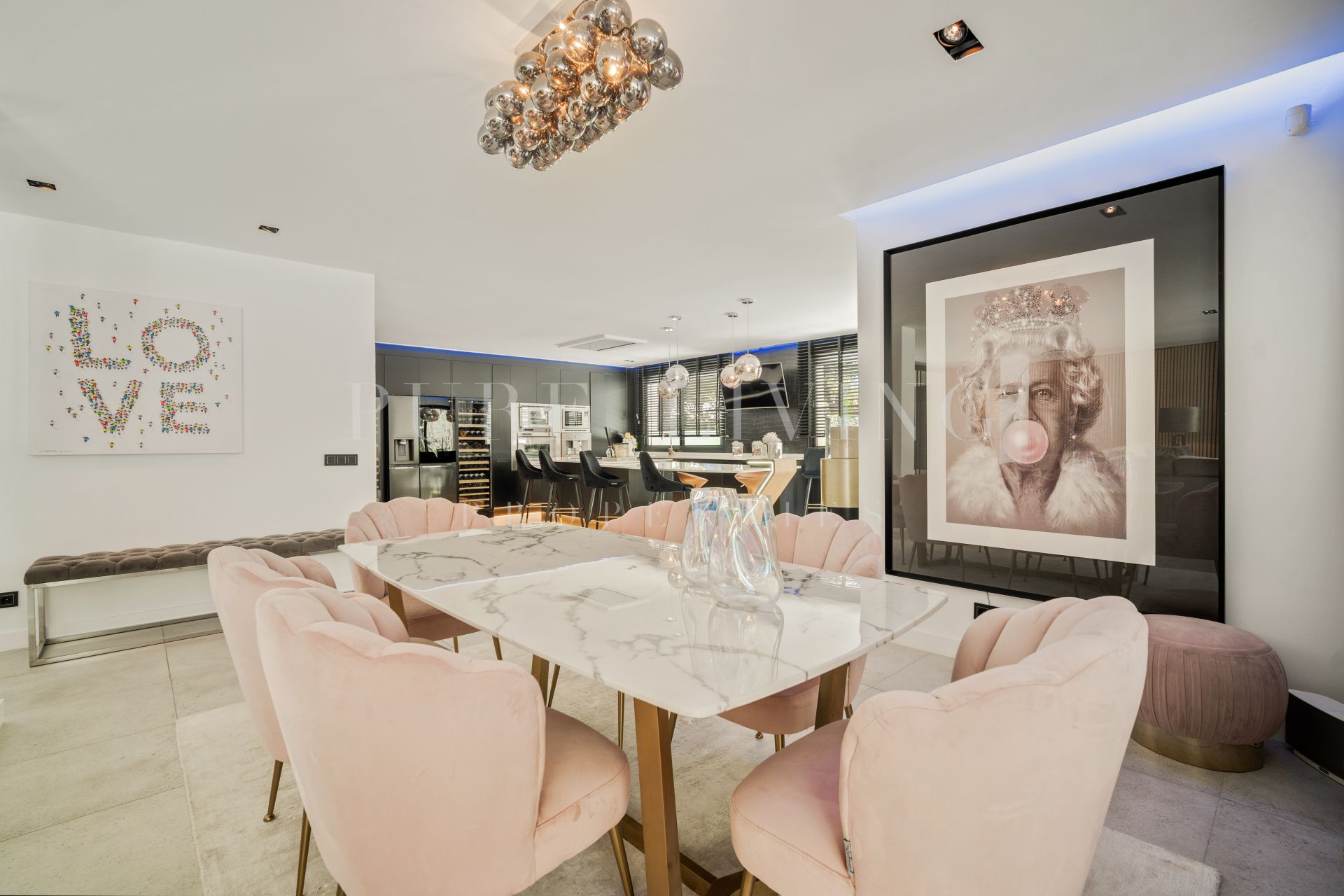 The infinity swimming pool and the beautifully designed garden layout make this villa a dream come true, where luxury and sophistication meet comfort and tranquility in one of the most exclusive areas of Marbella.