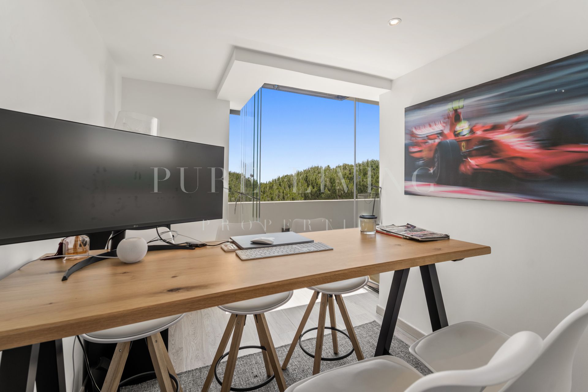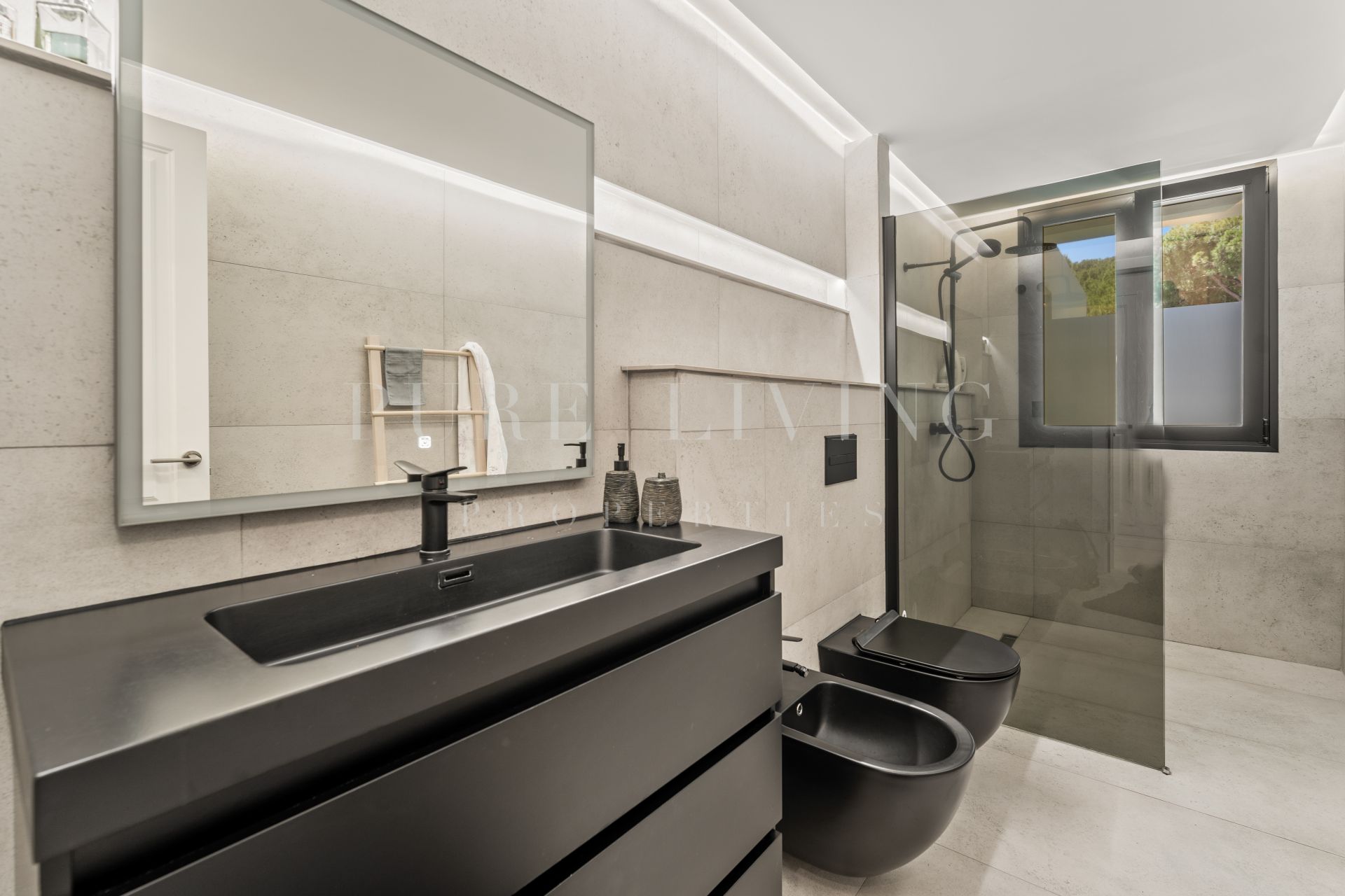 The upper level, has a beautifully designed master bedroom with a large walk-in closet and ensuite bathroom, access to a private terrace with stunning panoramic views. There are three further bedrooms with ensuite bathrooms on this level, one of them with a private living room.
