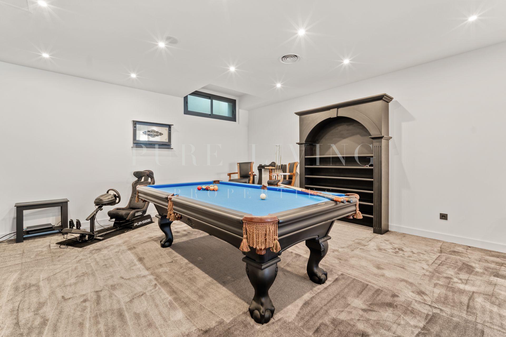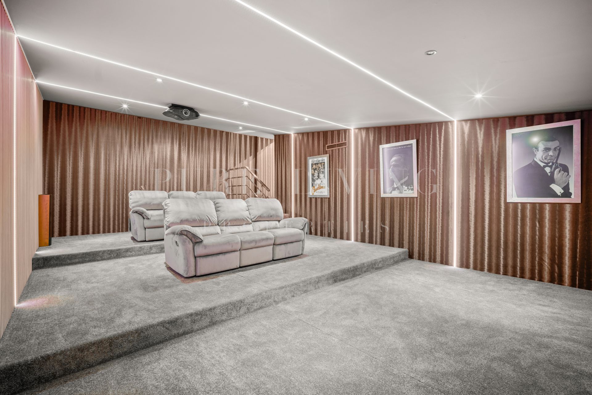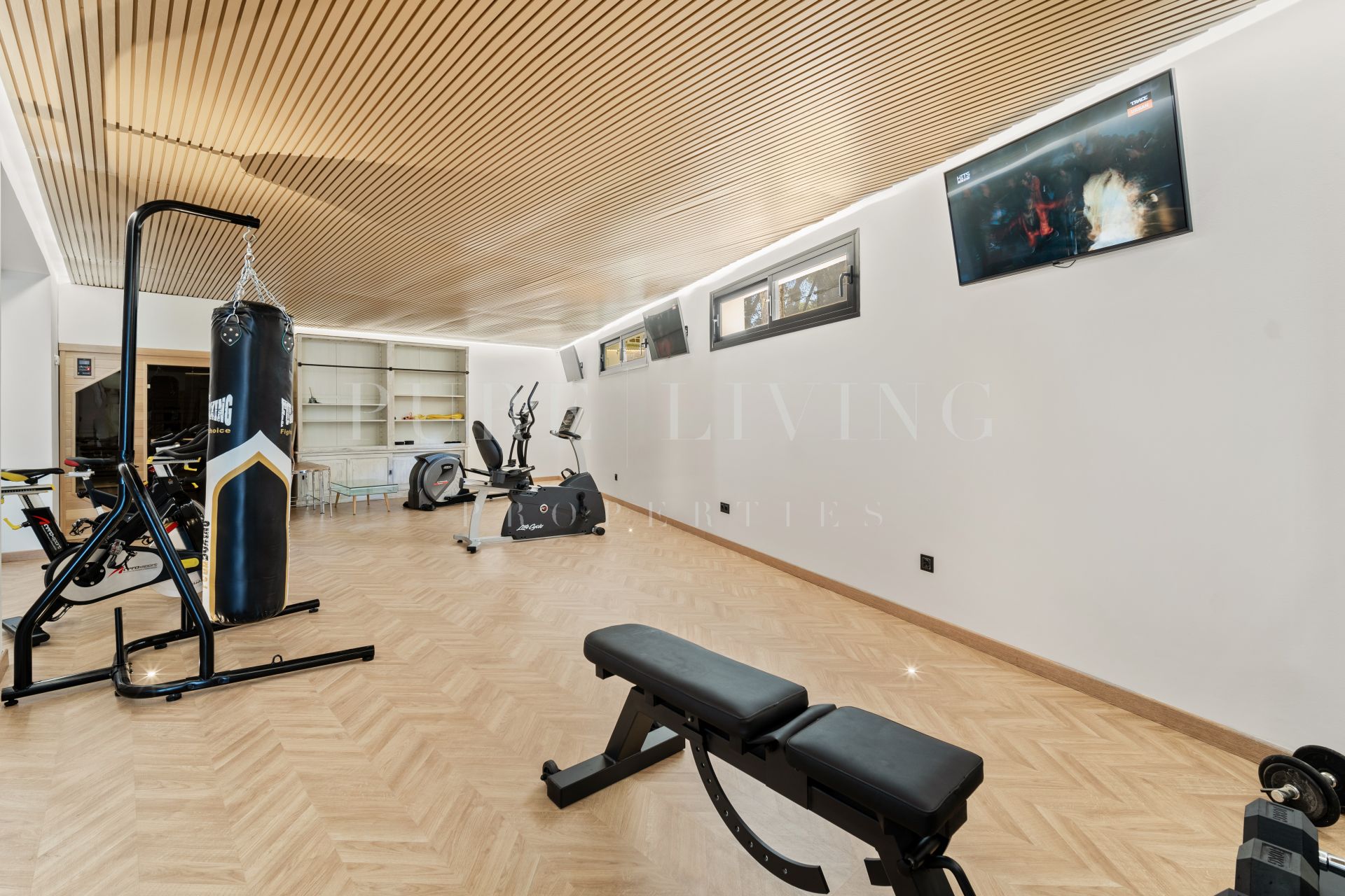 Close to schools, Office room, Underfloor heating (throughout), Automatic irrigation system, Smart home system, Electric blinds, Fitted wardrobes, Lift, Garden view, Amenities near, Transport near, Air conditioning, Wine Cellar, Fully furnished, Fully fitted kitchen, Utility room, Fireplace, Close to golf, Basement, Games Room, Guest room, Storage room, Gym, Alarm, Video entrance, Excellent condition.