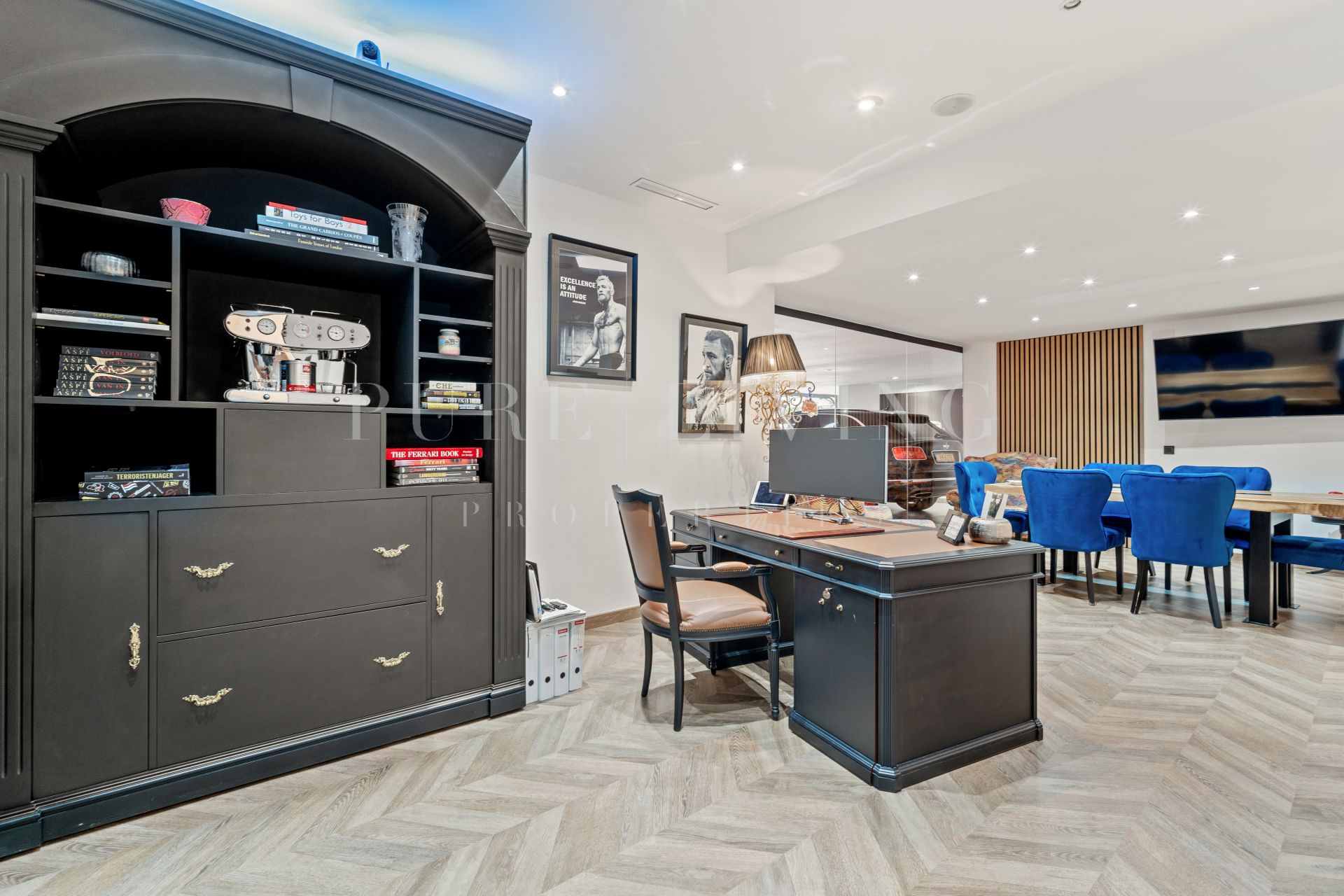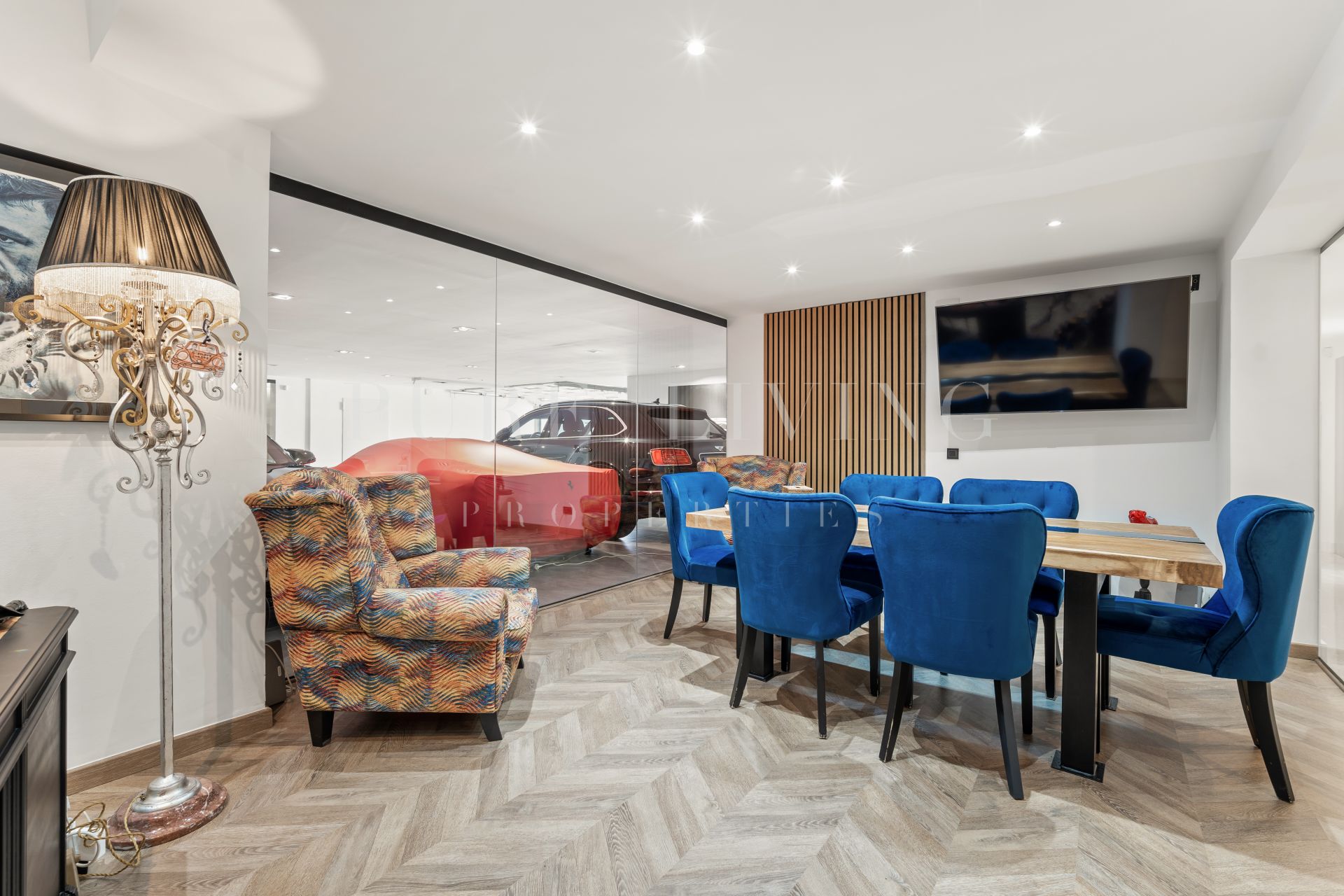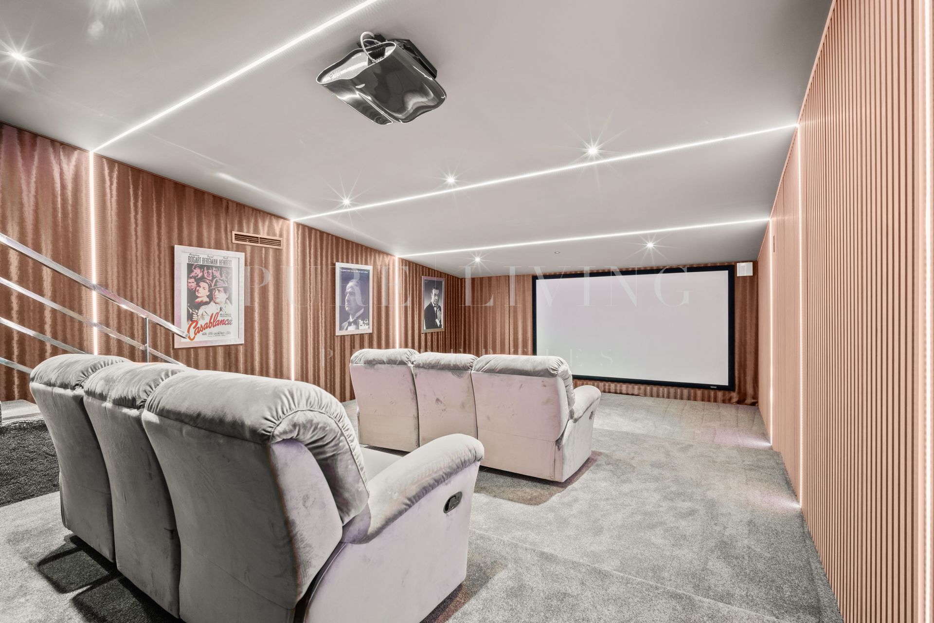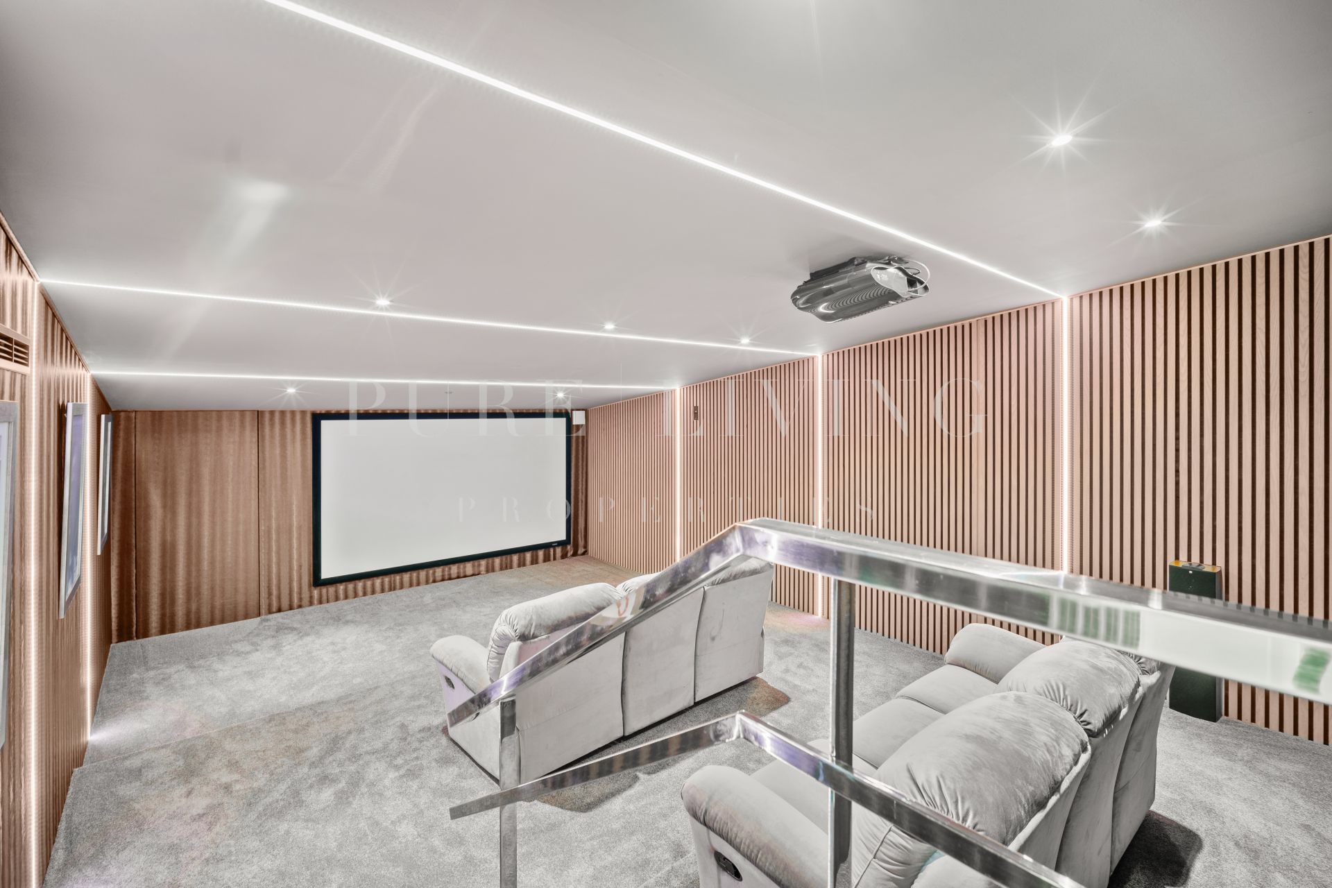 Close to schools, Office room, Underfloor heating (throughout), Automatic irrigation system, Smart home system, Electric blinds, Fitted wardrobes, Lift, Garden view, Amenities near, Transport near, Air conditioning, Wine Cellar, Fully furnished, Fully fitted kitchen, Utility room, Fireplace, Close to golf, Basement, Games Room, Guest room, Storage room, Gym, Alarm, Video entrance, Excellent condition.