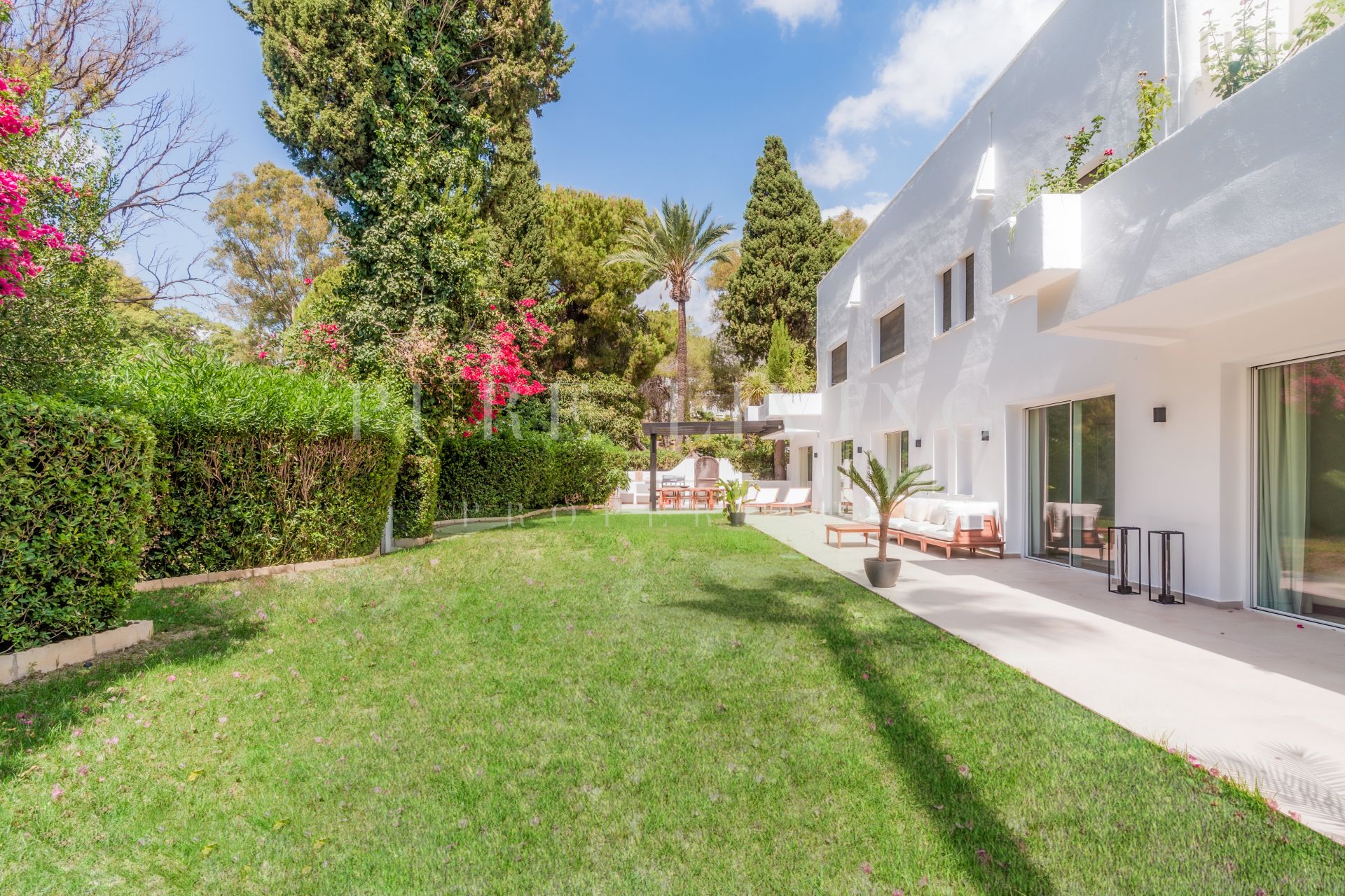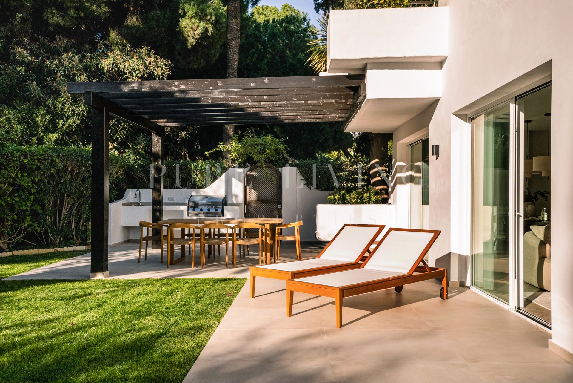 Situated within the prestigious Lomas de Marbella Club, this exceptional ground floor apartment offers a truly unique living experience. Spanning a total of 470 square meters, including an expansive 241-square-meter private garden, this residence is thoughtfully designed to provide seamless, single-level living.