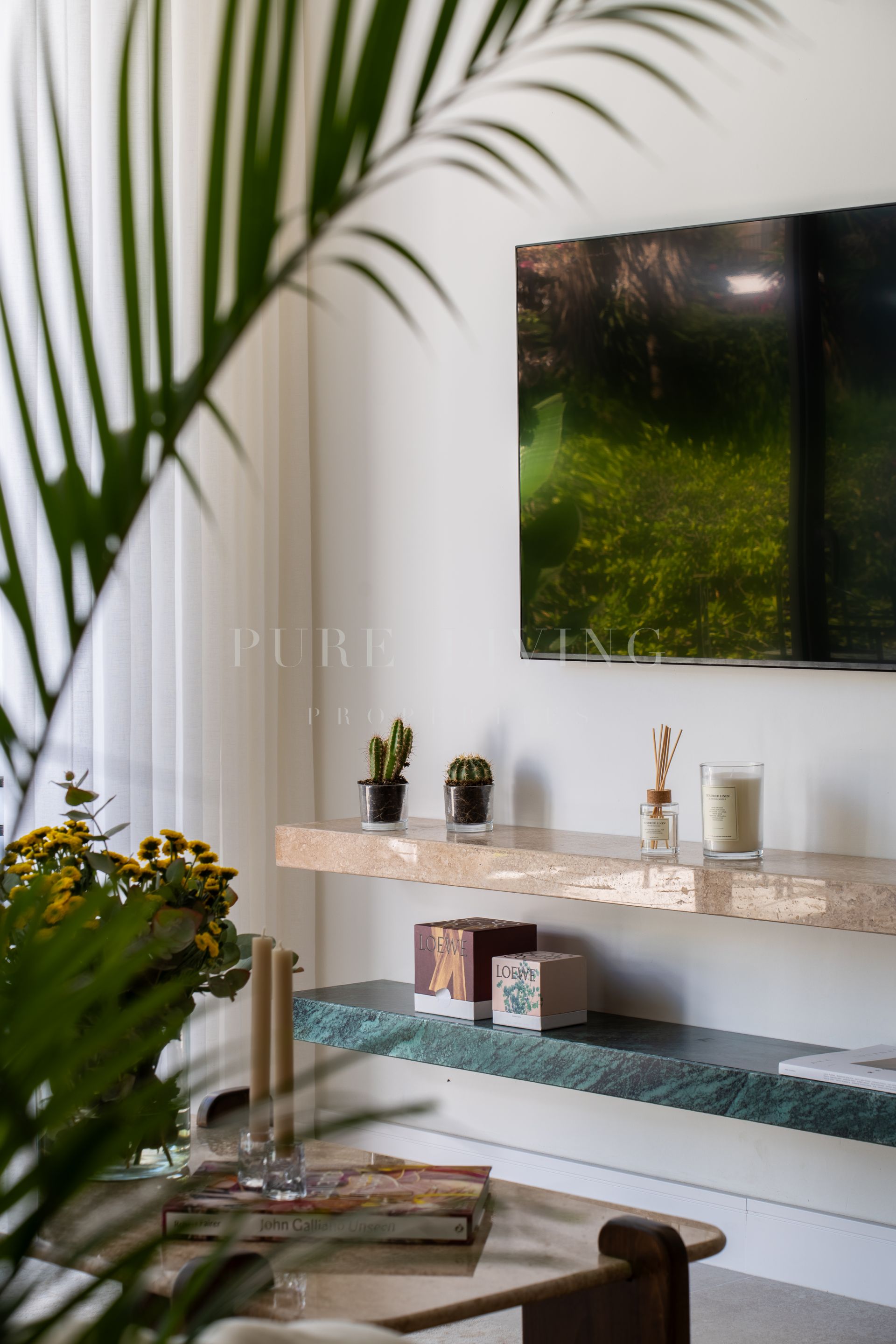 The apartment offers three spacious bedrooms and two stylish bathrooms, along with a bright, open living area that flows seamlessly onto a private terrace surrounded by lush greenery—perfect for relaxing or entertaining.