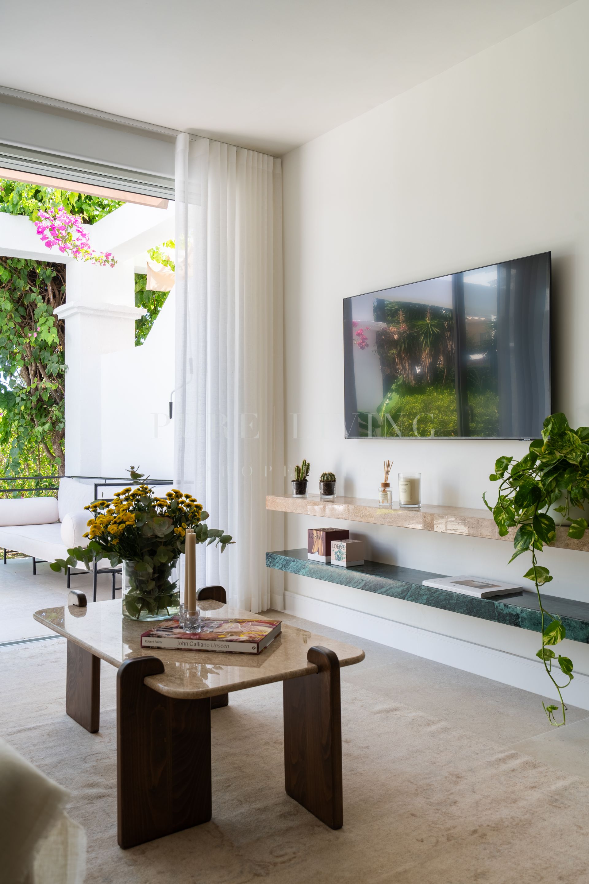 Situated in the sought-after area of La Quinta, Marbella, this beautifully renovated ground-floor apartment combines contemporary design with bespoke craftsmanship. Featuring custom-made furniture, designer sinks, and distinctive marble finishes throughout, the property exudes understated elegance and attention to detail.