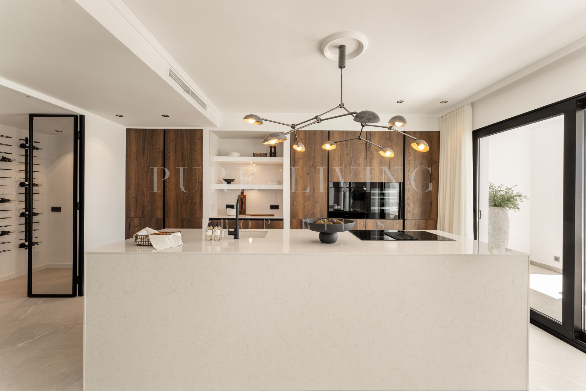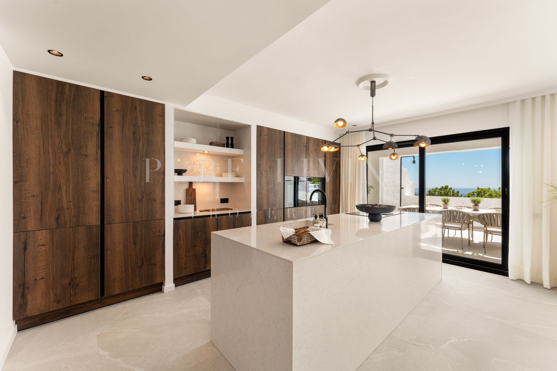 The property benefits from the expertise of a renowned architect and has been recently renovated by Casa Renovo, enhancing both finishes and materials. Interiors feature elegant wooden furnishings that complement the home’s sleek design and emphasise warmth and quality. Outdoors, the terrace is ideal for al fresco dining, complete with an outdoor kitchen and built-in barbecue, all set against stunning natural scenery. Communal amenities include a large swimming pool and beautifully landscaped gardens, fostering a sense of privacy and community.