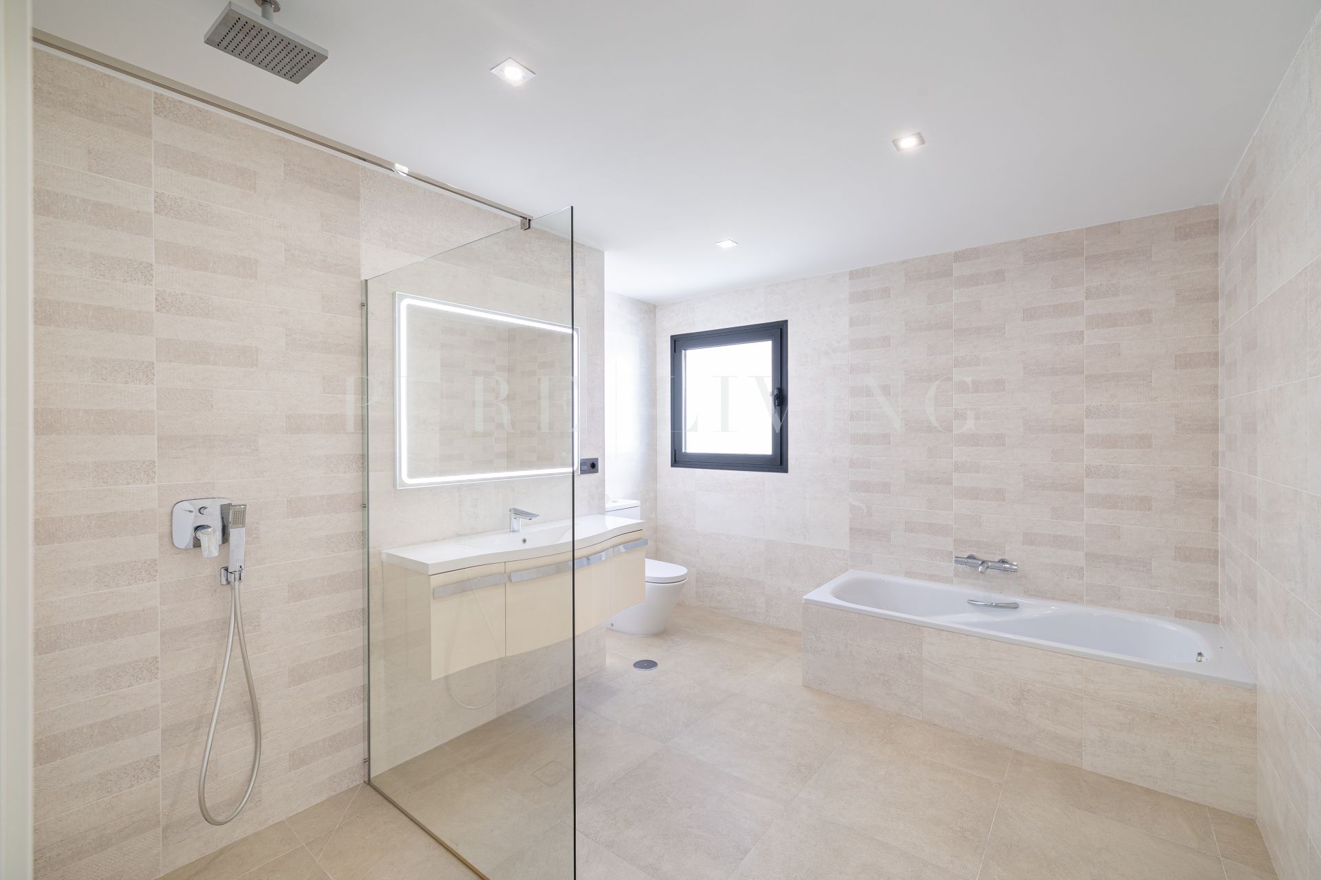 Private terrace, Beach Side, Amenities near, Close to shops, Air conditioning, Close to schools, Fully fitted kitchen, Unfurnished, Utility room, Office room, Close to sea / beach, Underfloor heating (throughout), Close to golf, Uncovered terrace, Double glazing, Fitted wardrobes, Excellent condition, Good condition, Recently Renovated / Refurbished, Garden view, Pool view.