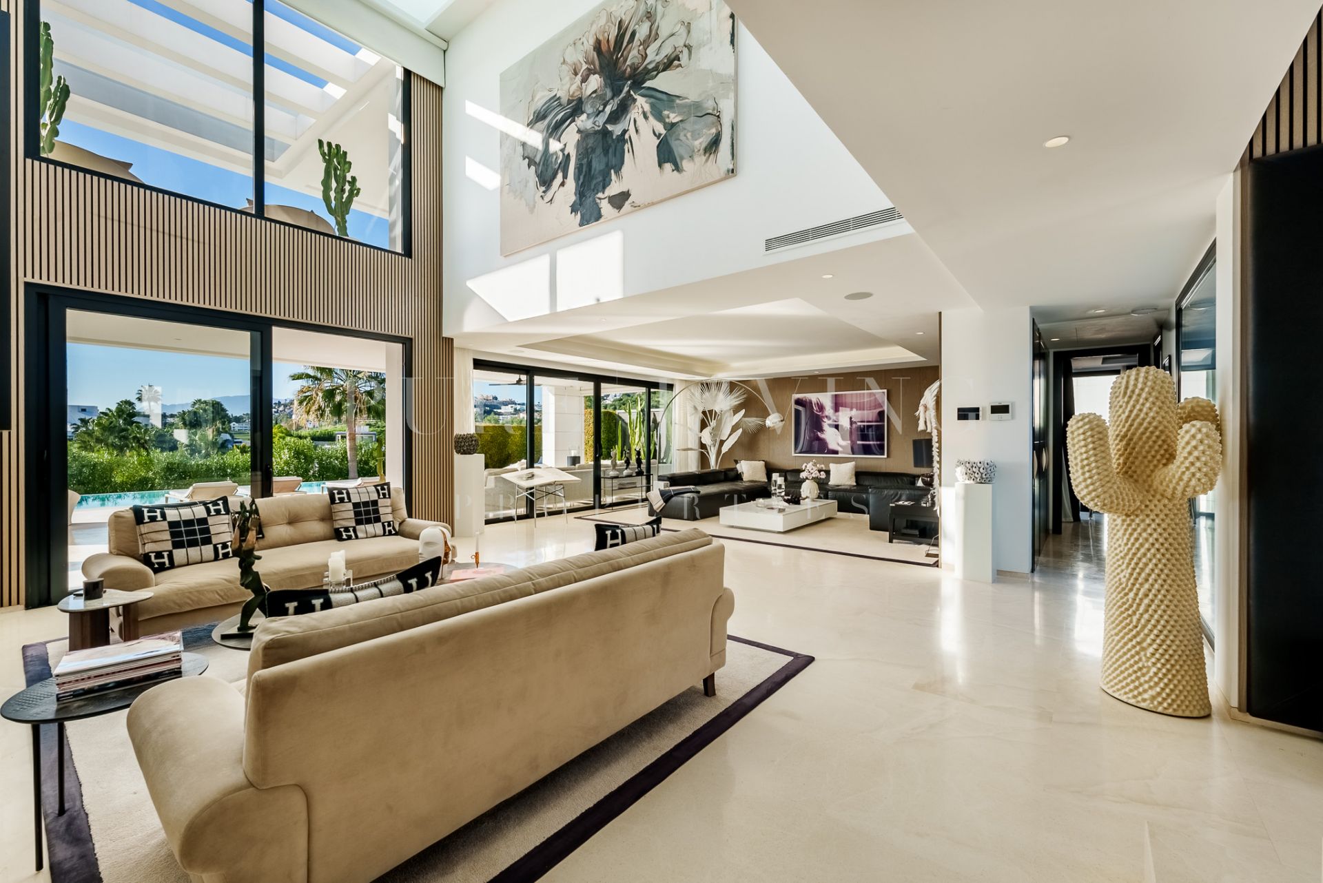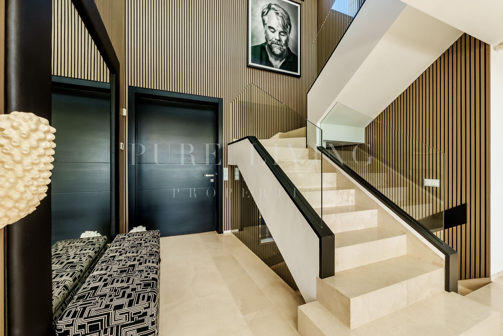 Located in the heart of Nueva Andalucía’s prestigious Golf Valley, this contemporary villa is a true sanctuary of style, comfort, and sophistication. Positioned to capture sweeping panoramic views, the residence offers a unique blend of refined architecture and everyday convenience in one of Marbella’s most sought-after neighbourhoods.