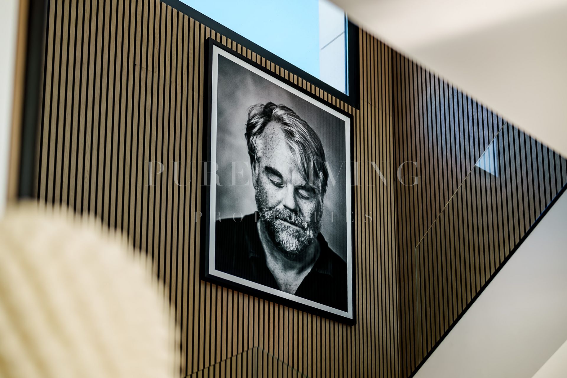 Inside, the villa reveals a calming, modern aesthetic with an open-plan layout that flows effortlessly between the main living spaces. Floor-to-ceiling glass sliding doors and high ceilings enhance the natural light and create a harmonious connection with the outdoors. The state-of-the-art kitchen, fitted with premium appliances, caters to everything from casual breakfasts to formal dining occasions.