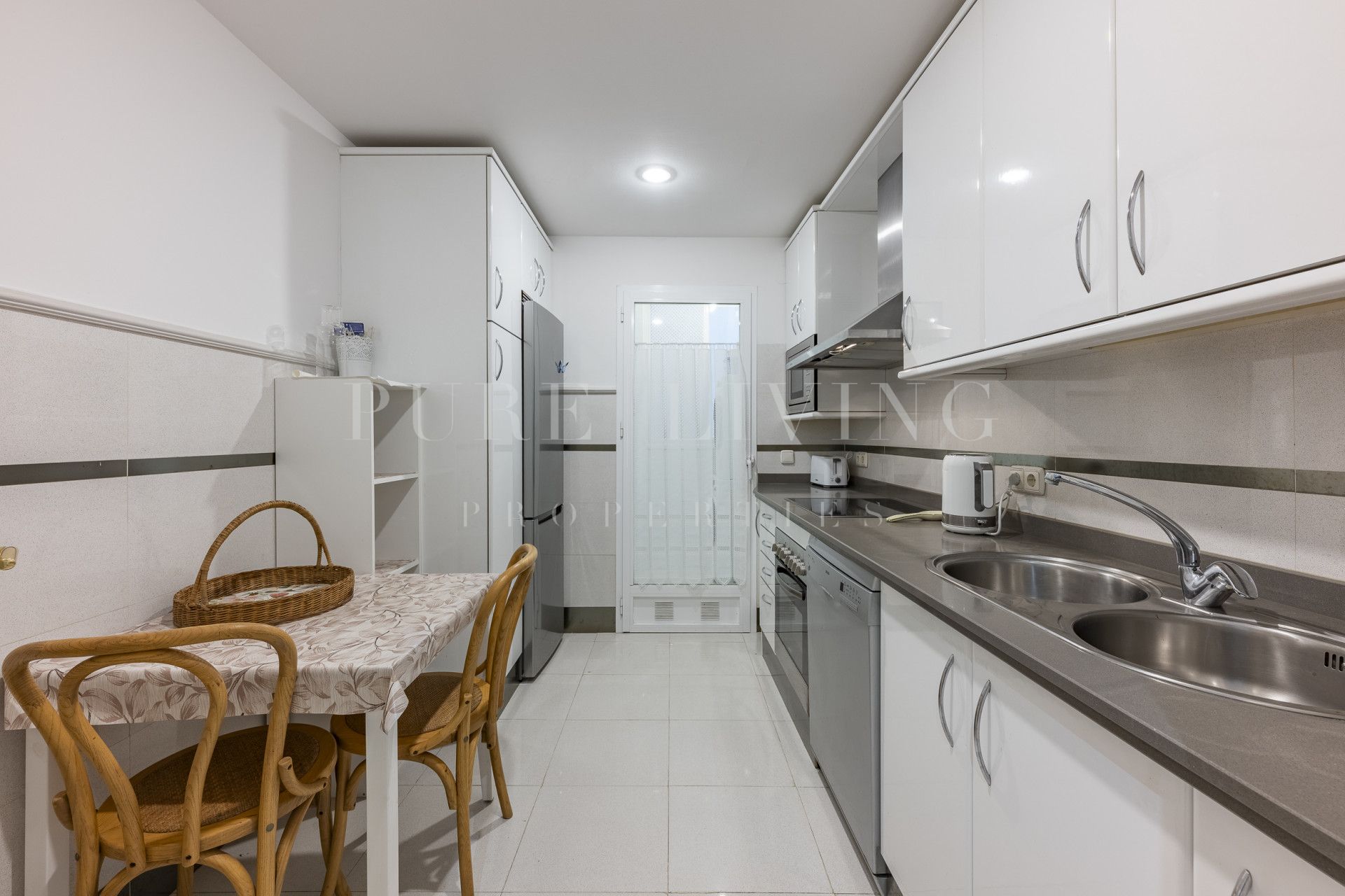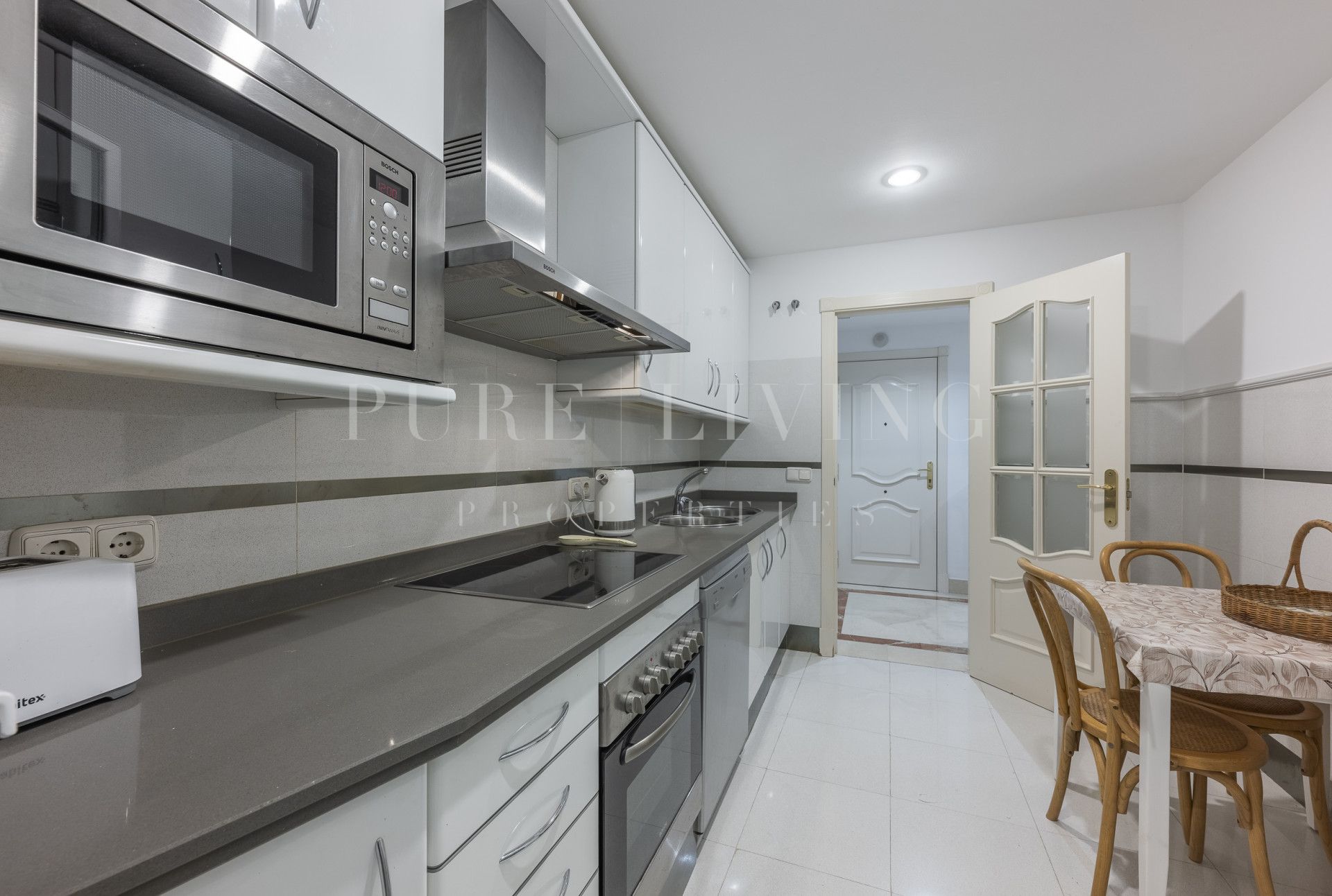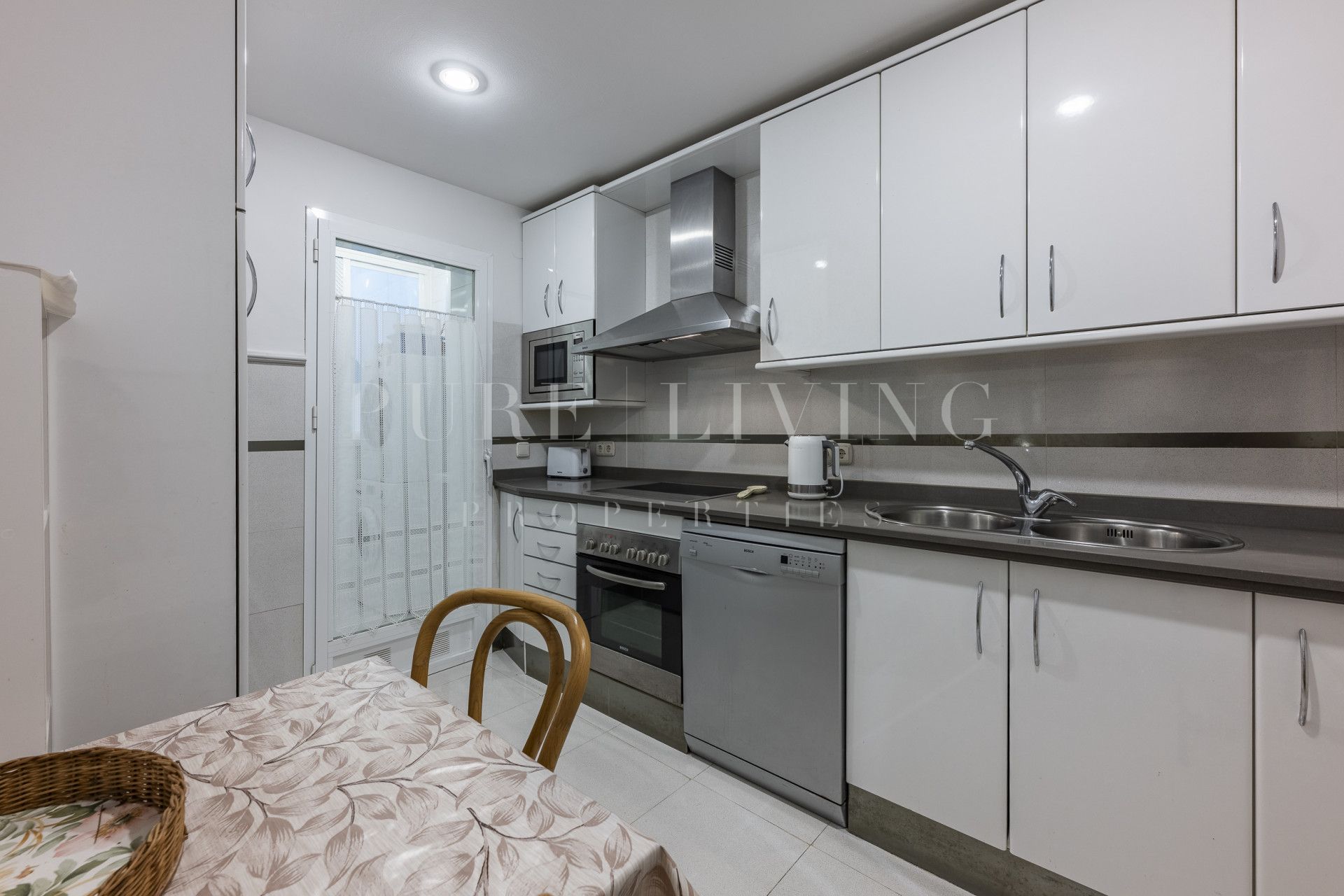 The living and dining areas, flooded with natural light, create an open and inviting atmosphere ideal for both relaxing evenings and social gatherings. The décor throughout is understated yet refined, with ample space to add personal touches, should you wish.