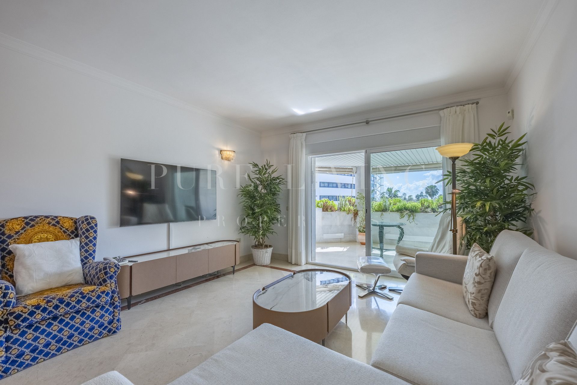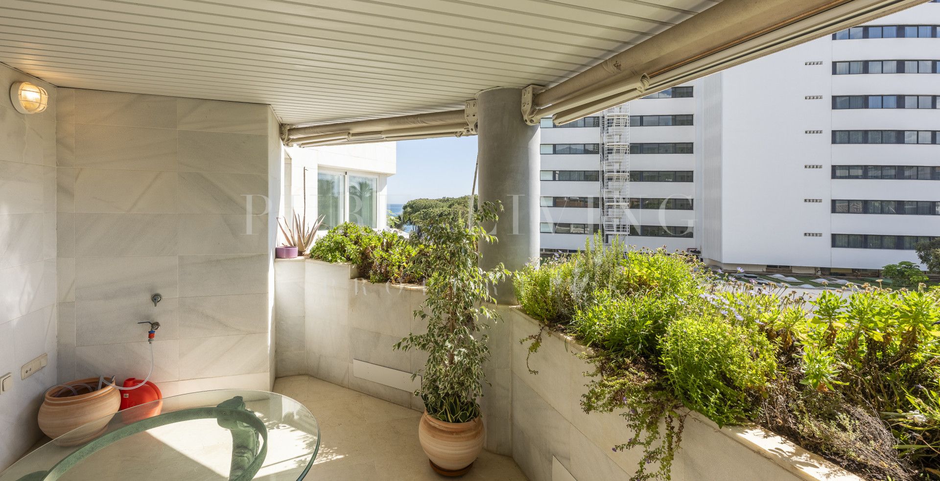 The apartment, situated on the fourth floor, enjoys sweeping partial sea views, which can be savored from its sun-drenched terrace — a perfect space to unwind while the gentle sound of the waves crashes softly in the background.