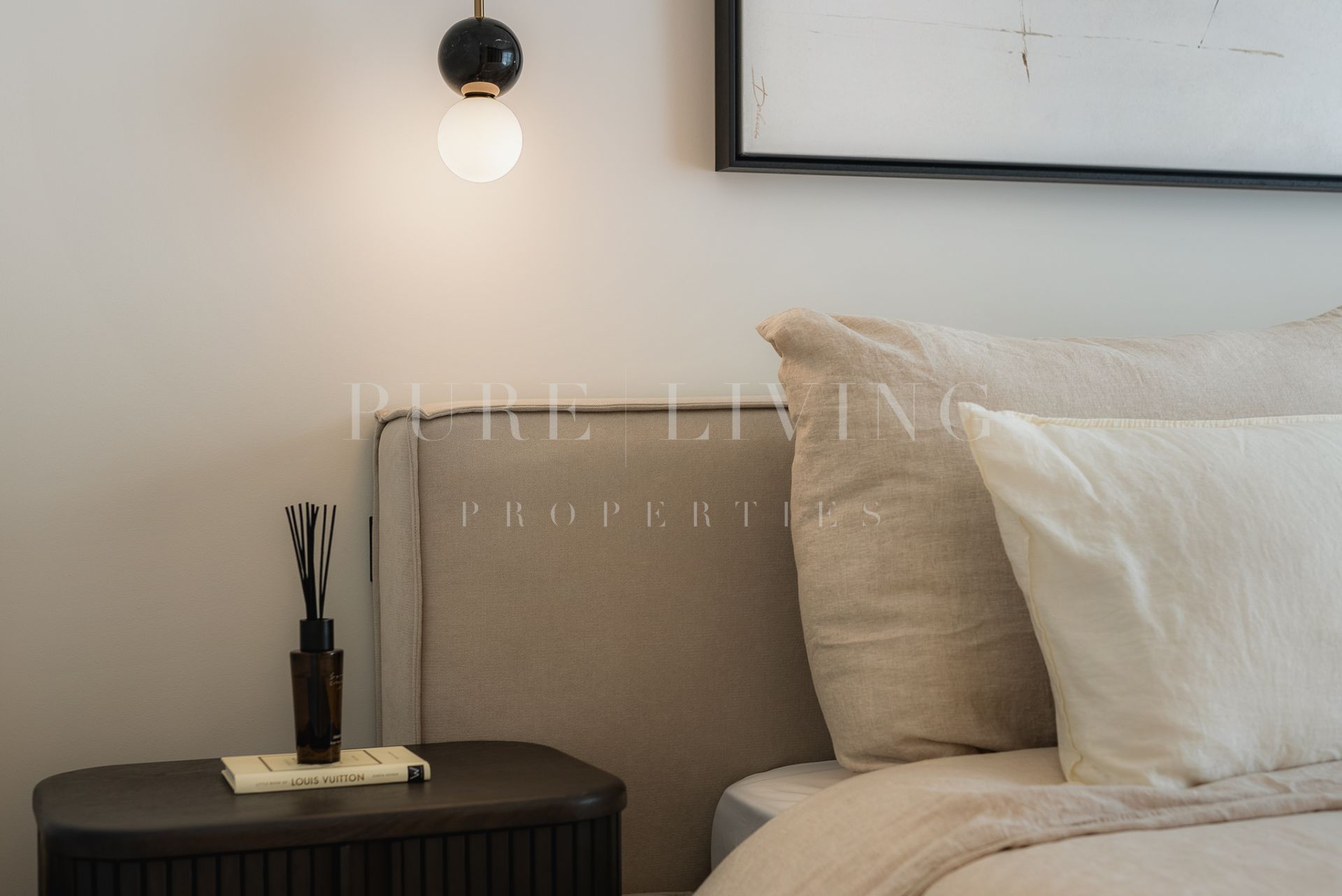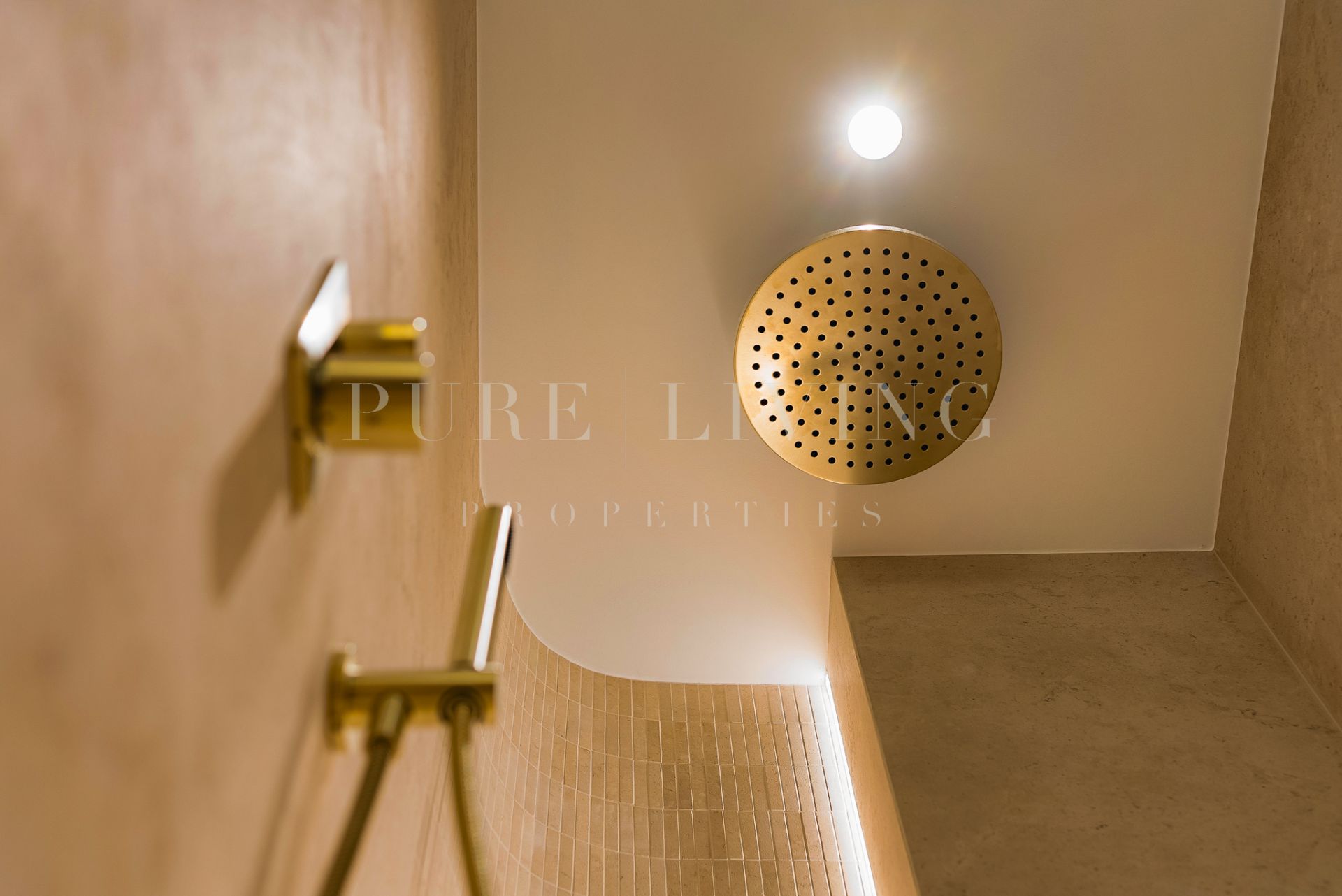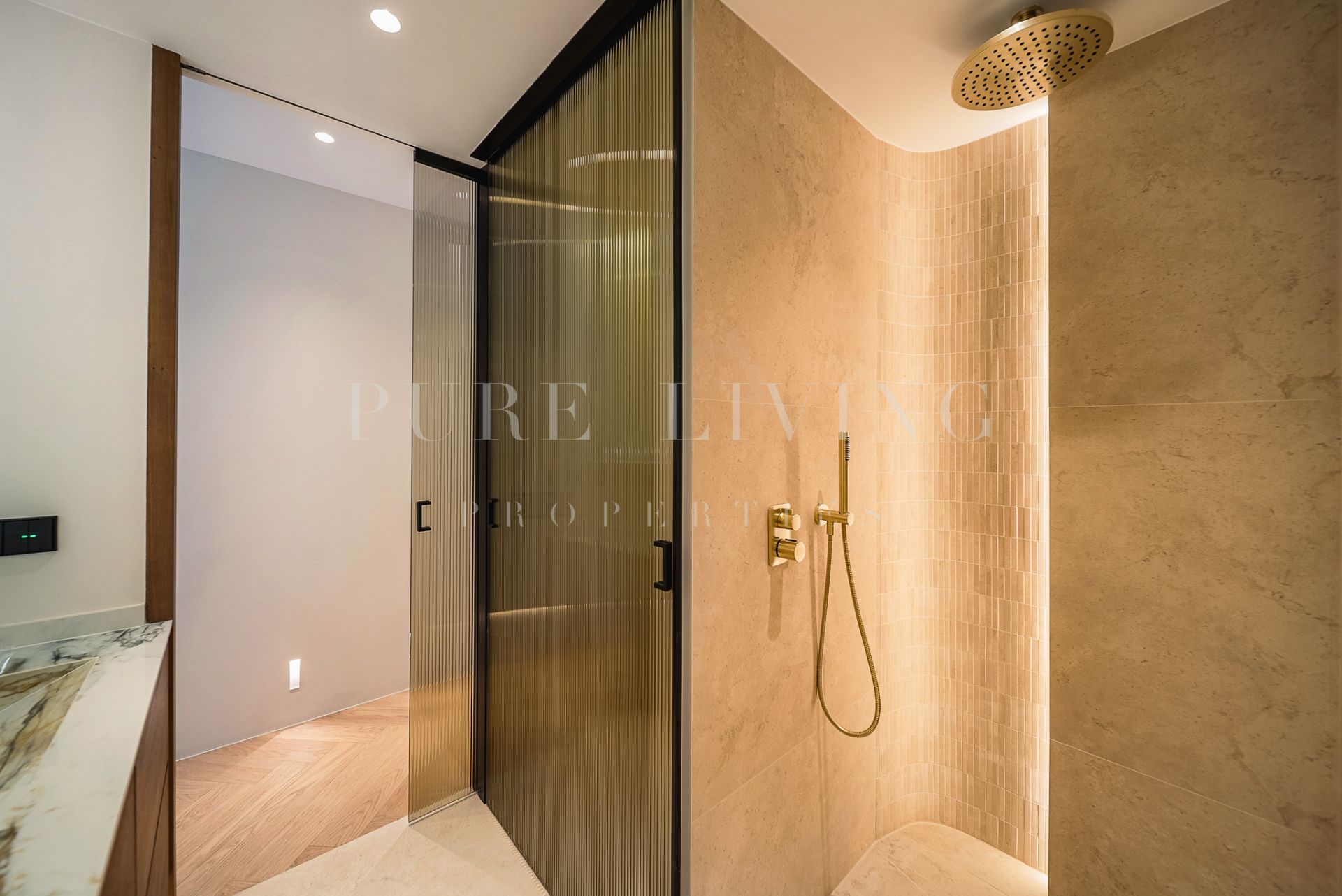 Bespoke carpentry subtly reflects the building’s signature curved architecture, creating a harmonious and fluid layout throughout. Soft neutral tones and natural materials evoke a timeless Mediterranean sophistication, seamlessly combined with modern functionality.