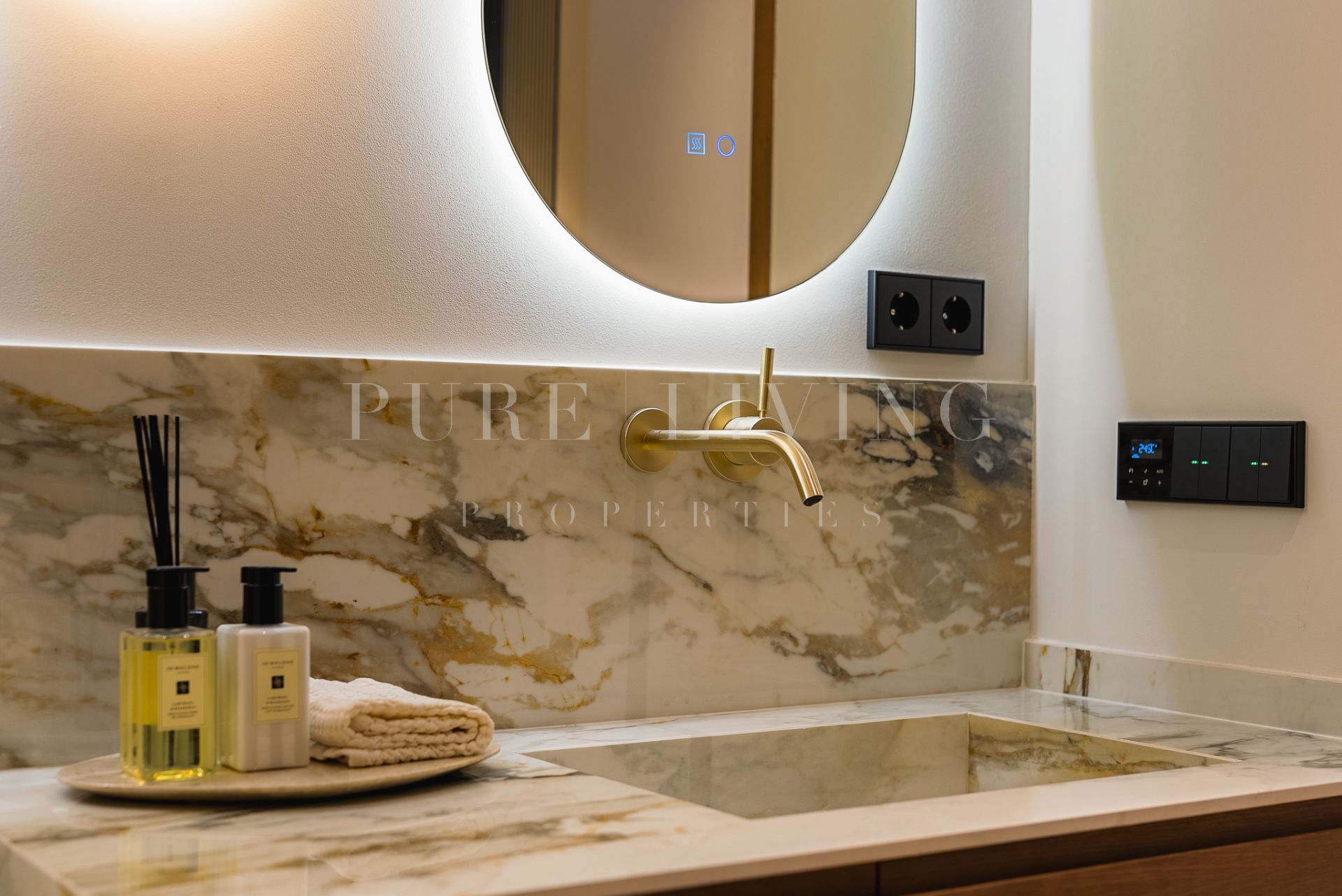 The custom-designed kitchen is fitted with premium Gaggenau and Siemens appliances, while the spa-inspired bathrooms feature elegant marble finishes and high-end Dornbracht fittings. BOEN herringbone wooden flooring adds warmth to the living spaces, complemented by underfloor heating in tiled areas. A discreet Jung smart home system enhances everyday comfort and convenience.