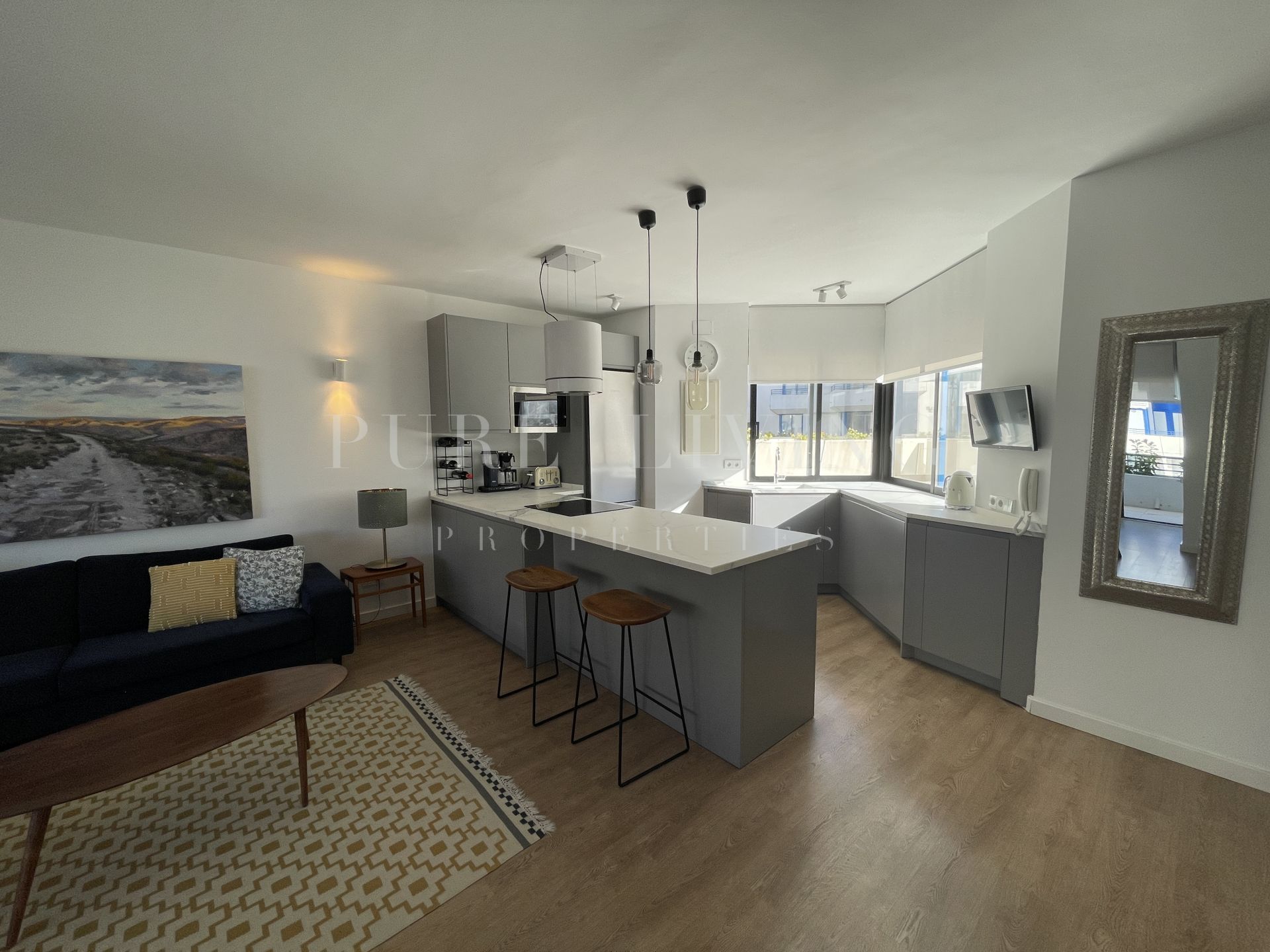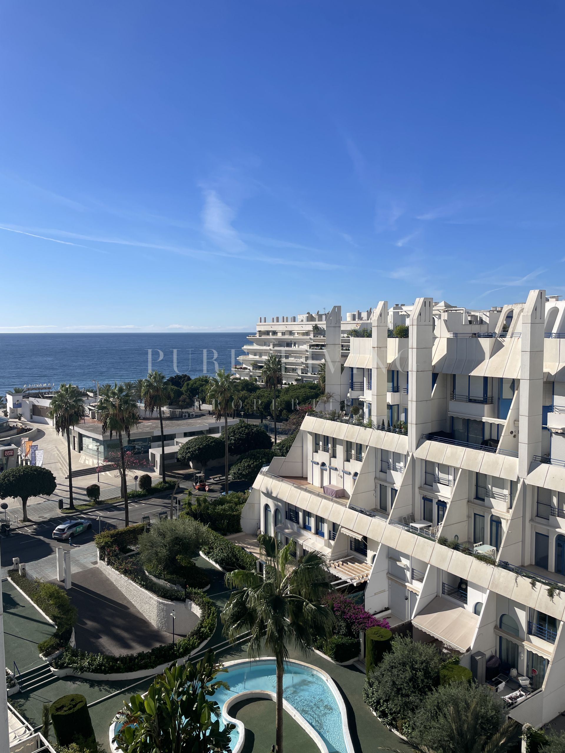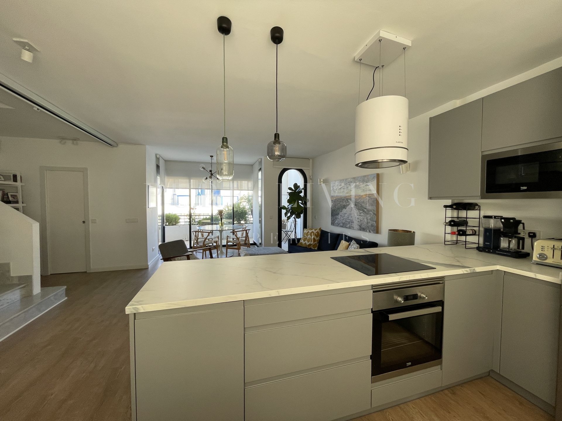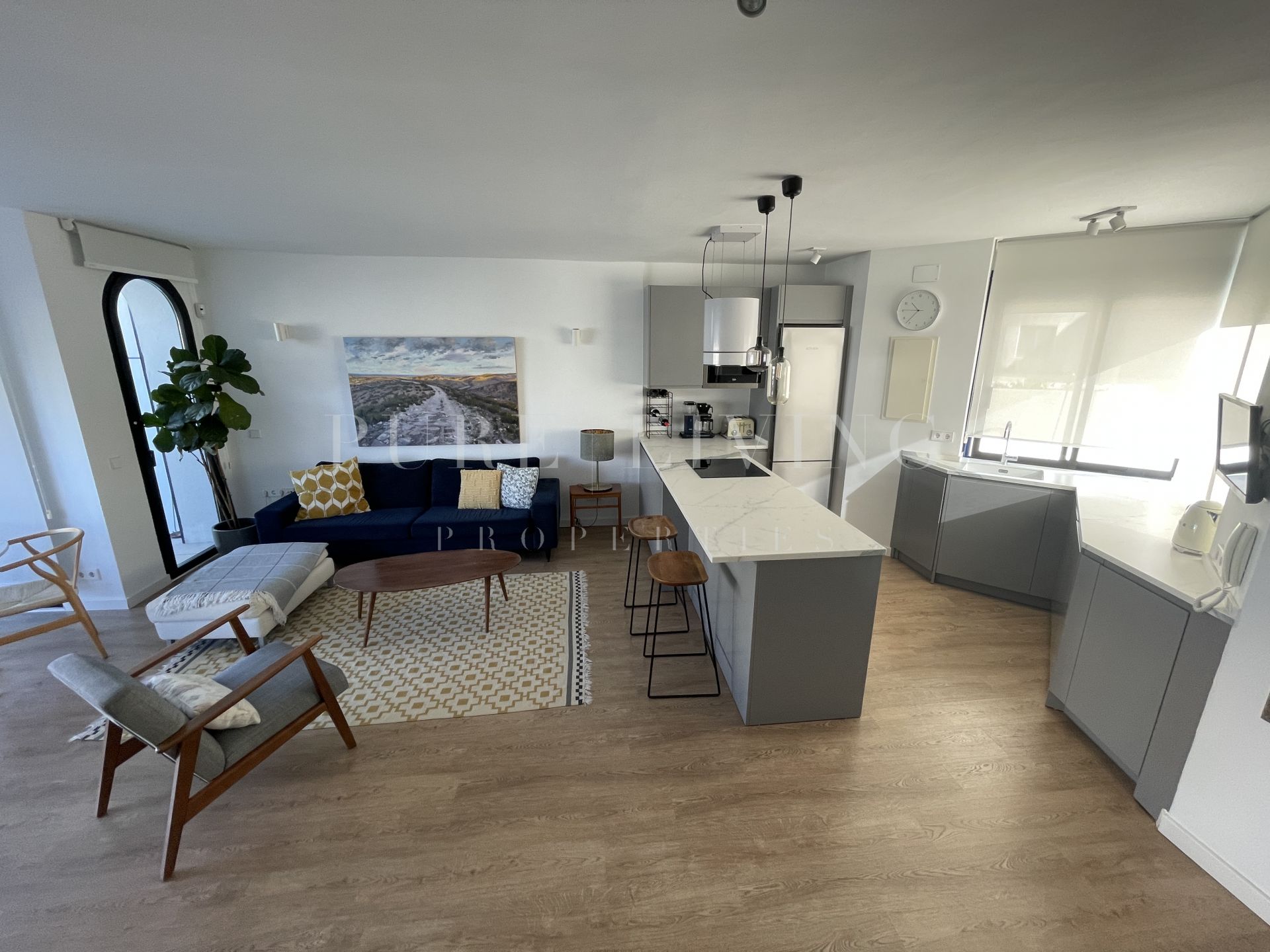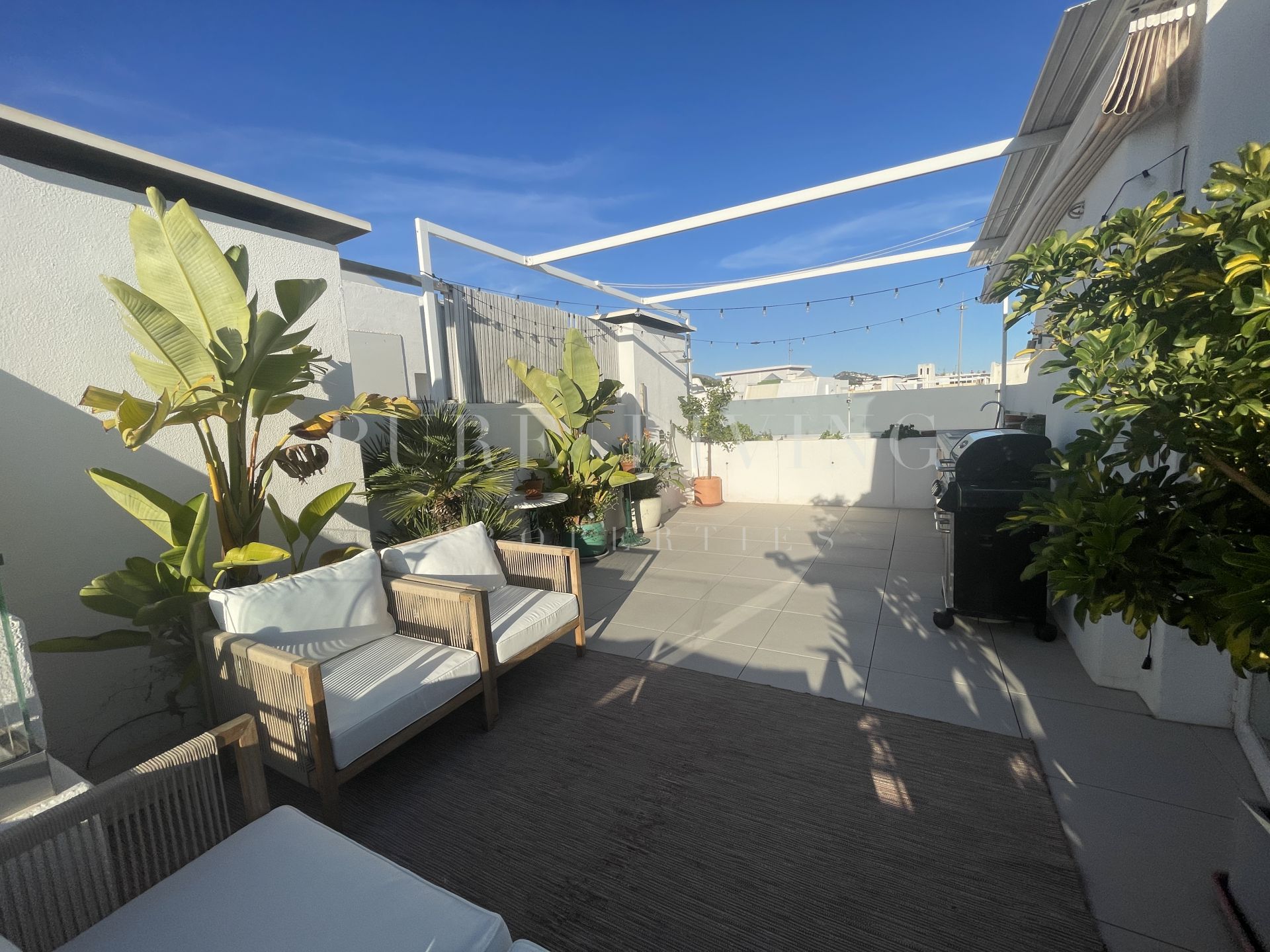 Fully renovated with high-quality materials and finishes, the penthouse is spread over three levels designed to maximize natural light and Mediterranean views.