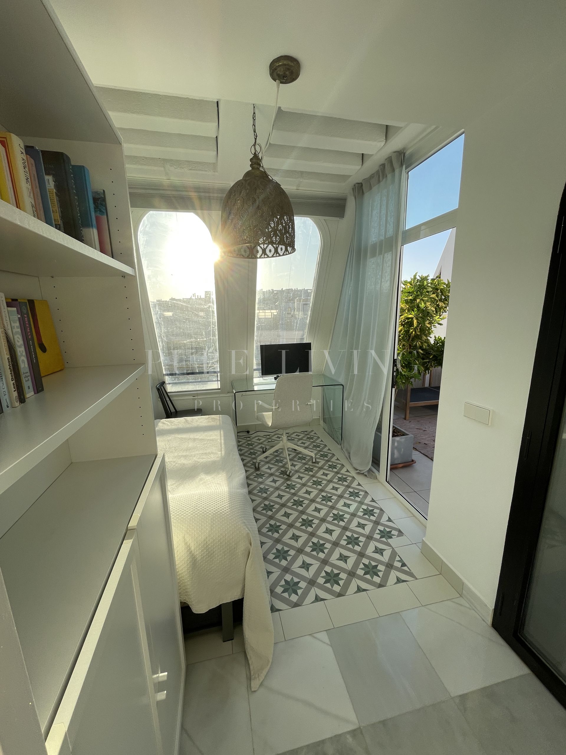 The rooftop terrace is undoubtedly the highlight of the property: a spectacular private solarium with barbecue area and panoramic sea and mountain views. In addition to the outdoor space, there is a versatile studio, ideal as an extra bedroom, office, or reading room.