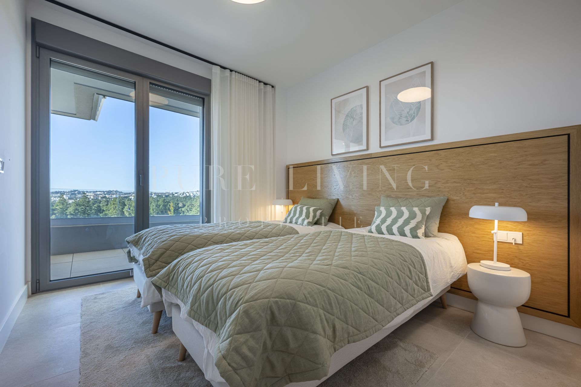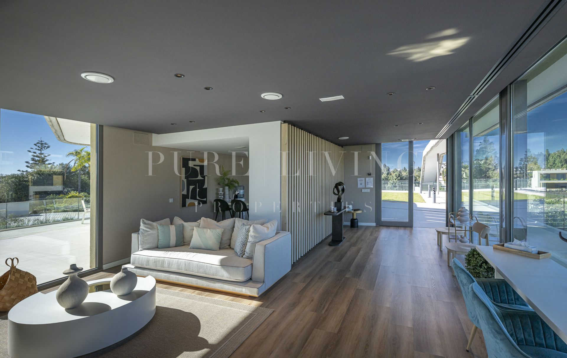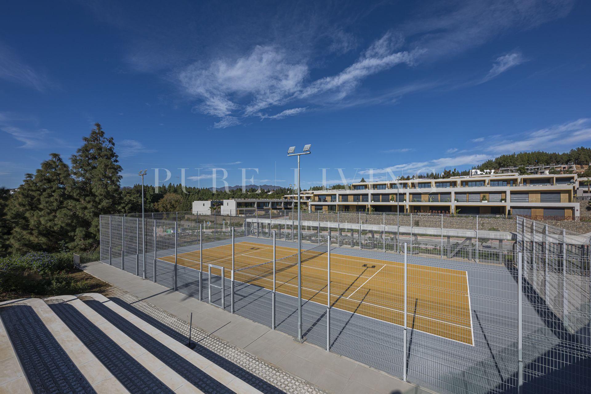 Introducing Eden, an exceptional luxury residence ideally positioned beside the renowned El Chaparral Golf & Country Club—one of the most prestigious residential enclaves on the Costa del Sol. Elevated on the highest tier of the development, this semi-detached home commands spectacular, unobstructed panoramic views of the Mediterranean Sea and coastline from both the main level and the private garden.