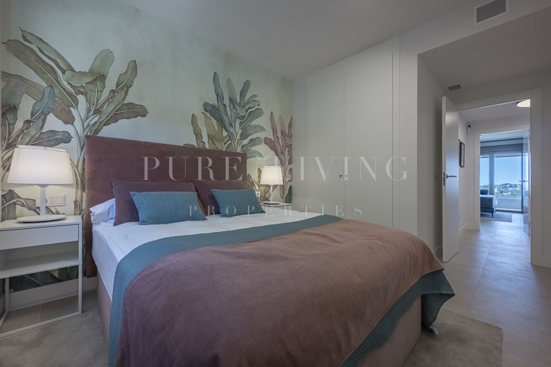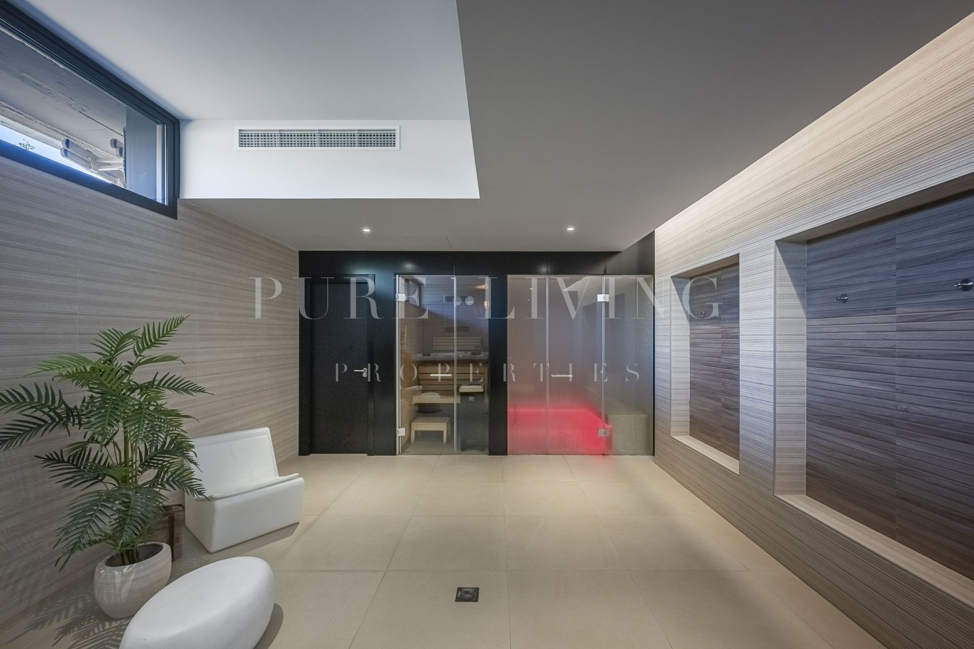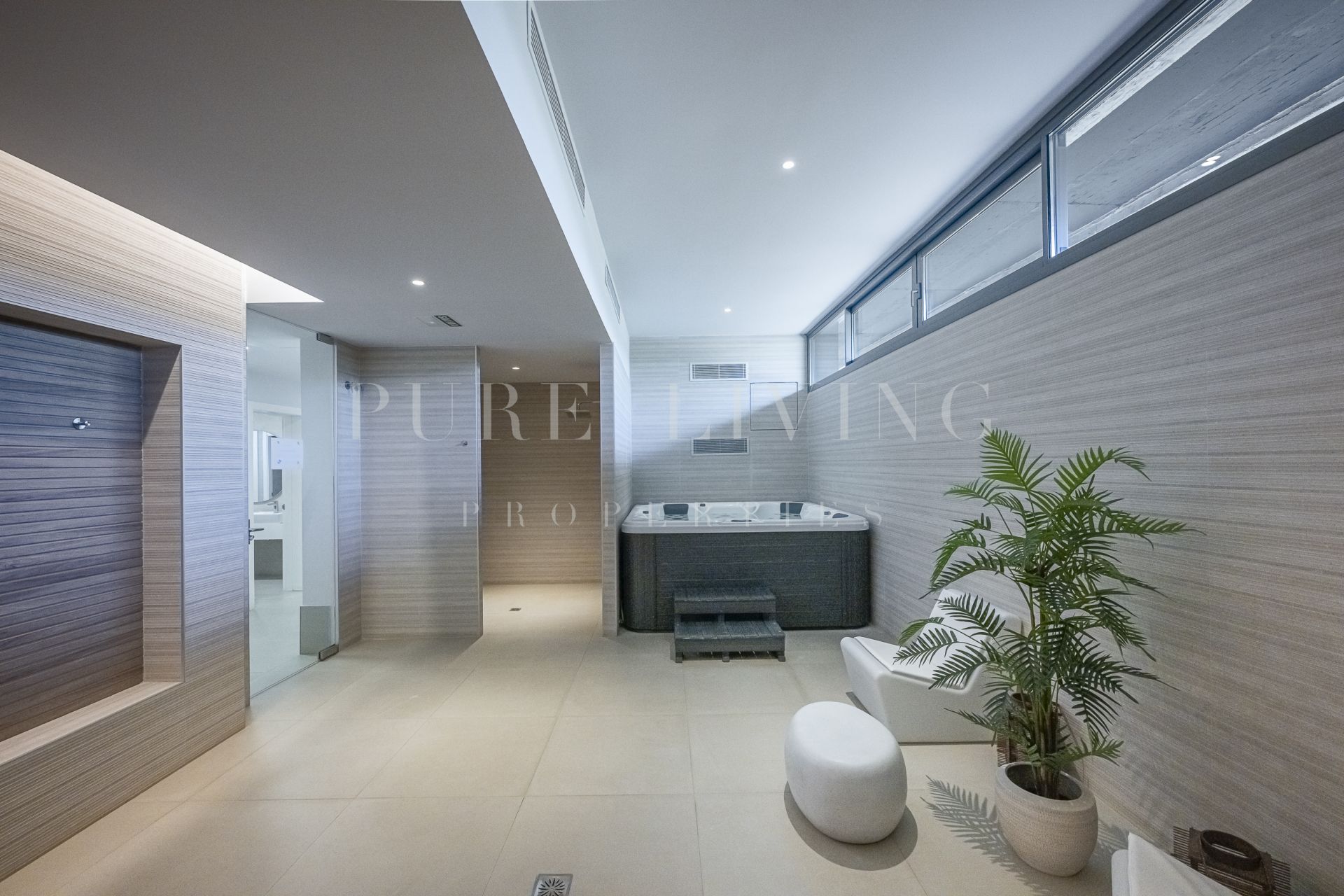 Saltwater swimming pool, Close to shops, Close to town, Close to schools, Surveillance cameras, Inside Golf Resort, Partial sea views, Aerothermics, Internet - Fibre optic, Front line golf, Amenities near, Transport near, Air conditioning, Fully furnished, Fully fitted kitchen, Sauna, Close to restaurants, Storage room, Gym, Alarm, Security entrance, Double glazing, Video entrance, Parking included, Security service 24h, Guest toilet, Private terrace, Kitchen equipped, Indoor pool, Heated pool, Security shutters, Dolby Stereo Surround system, Internet - Wi-Fi, Covered terrace, 24h Service, Electric blinds, Fitted wardrobes, Gated community, Lift, Garden view, Pool view, Tennis / paddle court, Beach Side, Close to children playground, Close to sea / beach, Close to golf, Uncovered terrace, Glass Doors, Open plan kitchen, Balcony, SPA, Turkish bath, Excellent condition, Good condition.