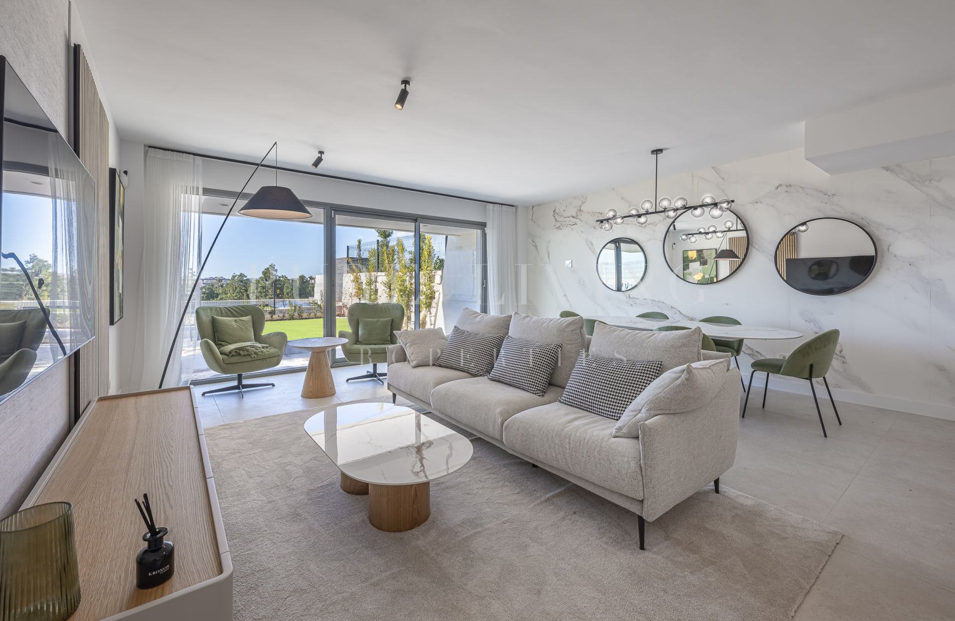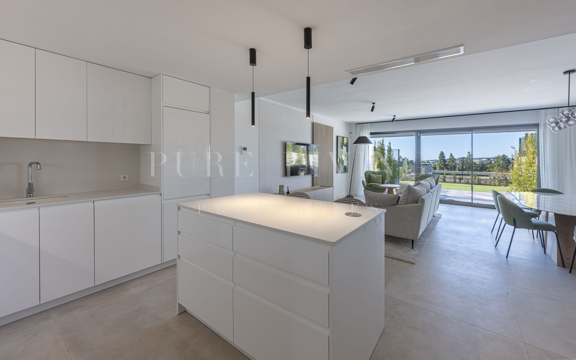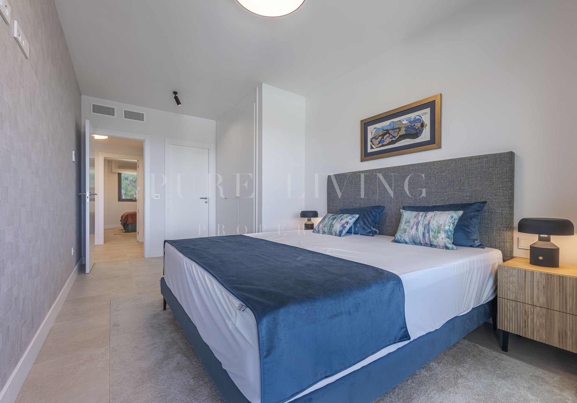 Saltwater swimming pool, Close to shops, Close to town, Close to schools, Surveillance cameras, Inside Golf Resort, Partial sea views, Aerothermics, Internet - Fibre optic, Front line golf, Amenities near, Transport near, Air conditioning, Fully furnished, Fully fitted kitchen, Sauna, Close to restaurants, Storage room, Gym, Alarm, Security entrance, Double glazing, Video entrance, Parking included, Security service 24h, Guest toilet, Private terrace, Kitchen equipped, Indoor pool, Heated pool, Security shutters, Dolby Stereo Surround system, Internet - Wi-Fi, Covered terrace, 24h Service, Electric blinds, Fitted wardrobes, Gated community, Lift, Garden view, Pool view, Tennis / paddle court, Beach Side, Close to children playground, Close to sea / beach, Close to golf, Uncovered terrace, Glass Doors, Open plan kitchen, Balcony, SPA, Turkish bath, Excellent condition, Good condition.