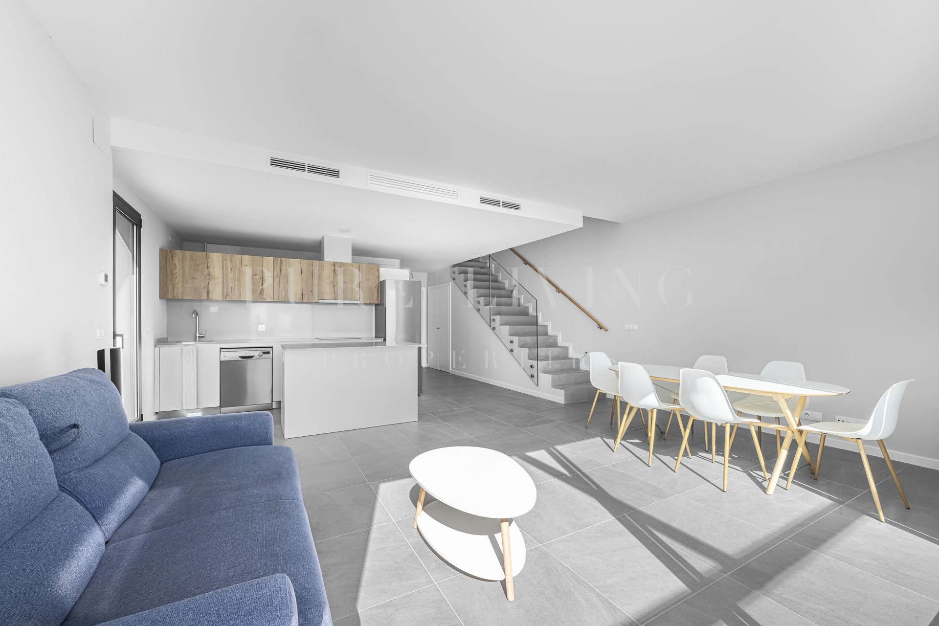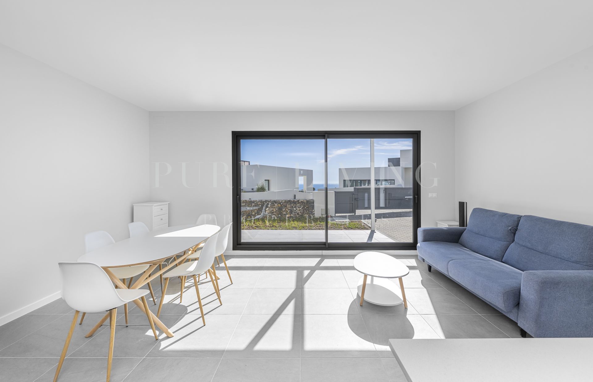 The property features bright and well-distributed living spaces across two levels, designed to maximize natural light and create a seamless connection between indoor and outdoor areas. The living area opens directly onto the private outdoor space and garden, perfect for enjoying the region’s exceptional climate and relaxed Mediterranean lifestyle.
