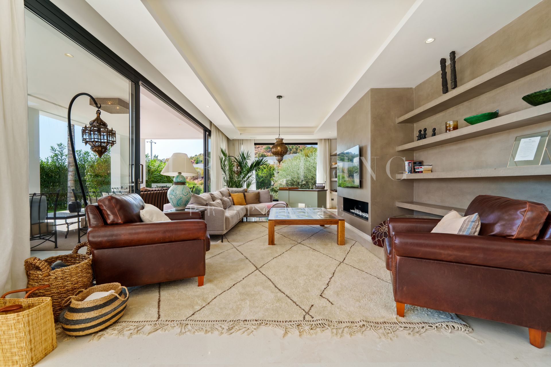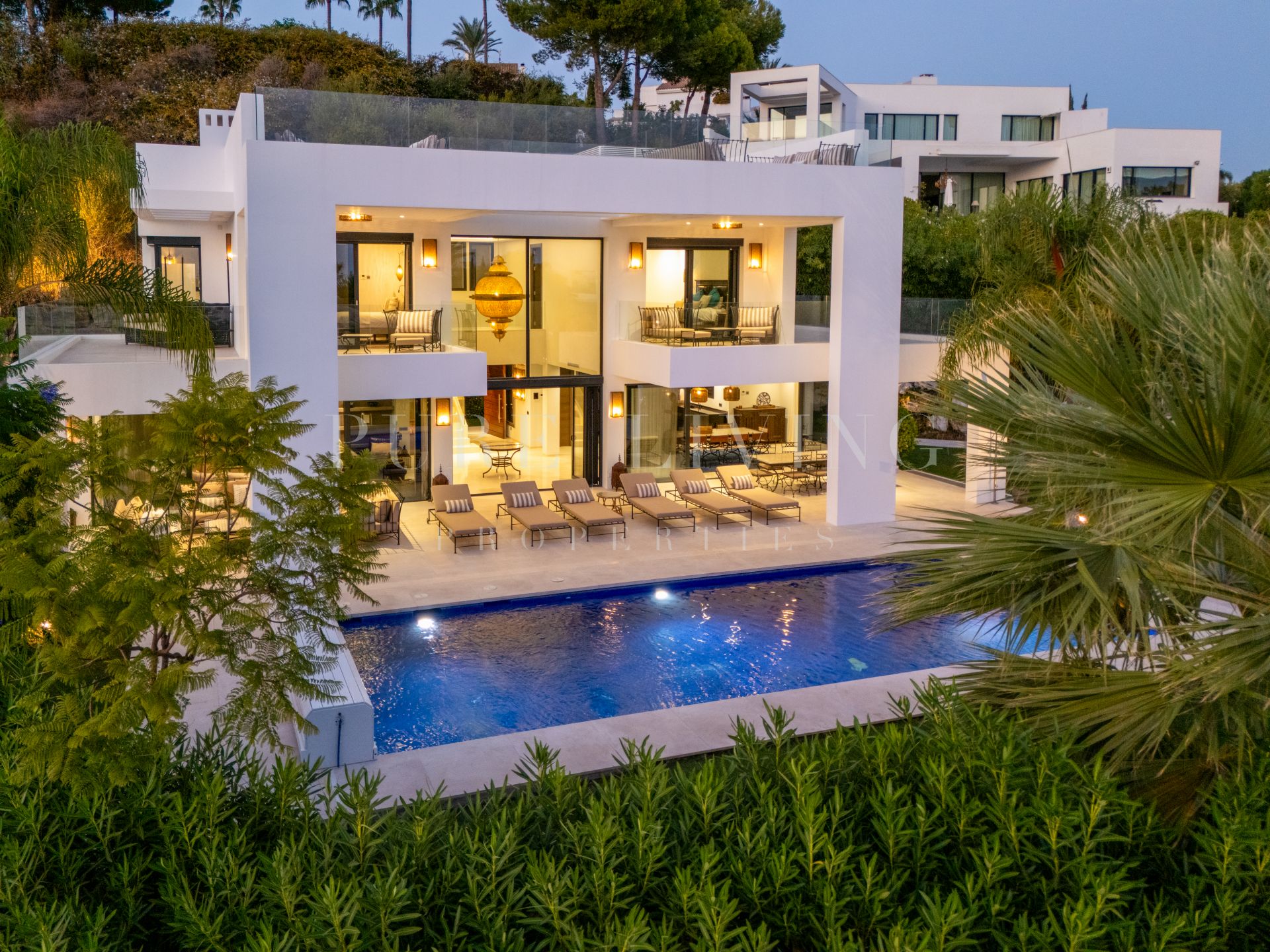 Located within an exclusive gated community in Nueva Andalucía, this striking detached villa showcases a refined blend of modern Mediterranean architecture with subtle Andalusian and Moorish influences, resulting in a sophisticated yet warm and timeless residence.