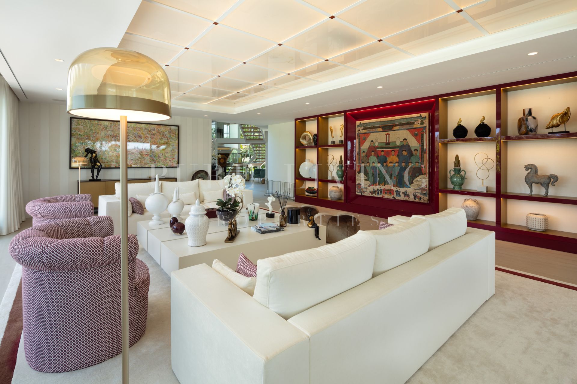 Additional features of this exceptional property include underfloor heating throughout, air conditioning, a guest apartment, and a private garage. The meticulously maintained garden is beautifully landscaped, with an automatic irrigation system ensuring a lush and green environment.