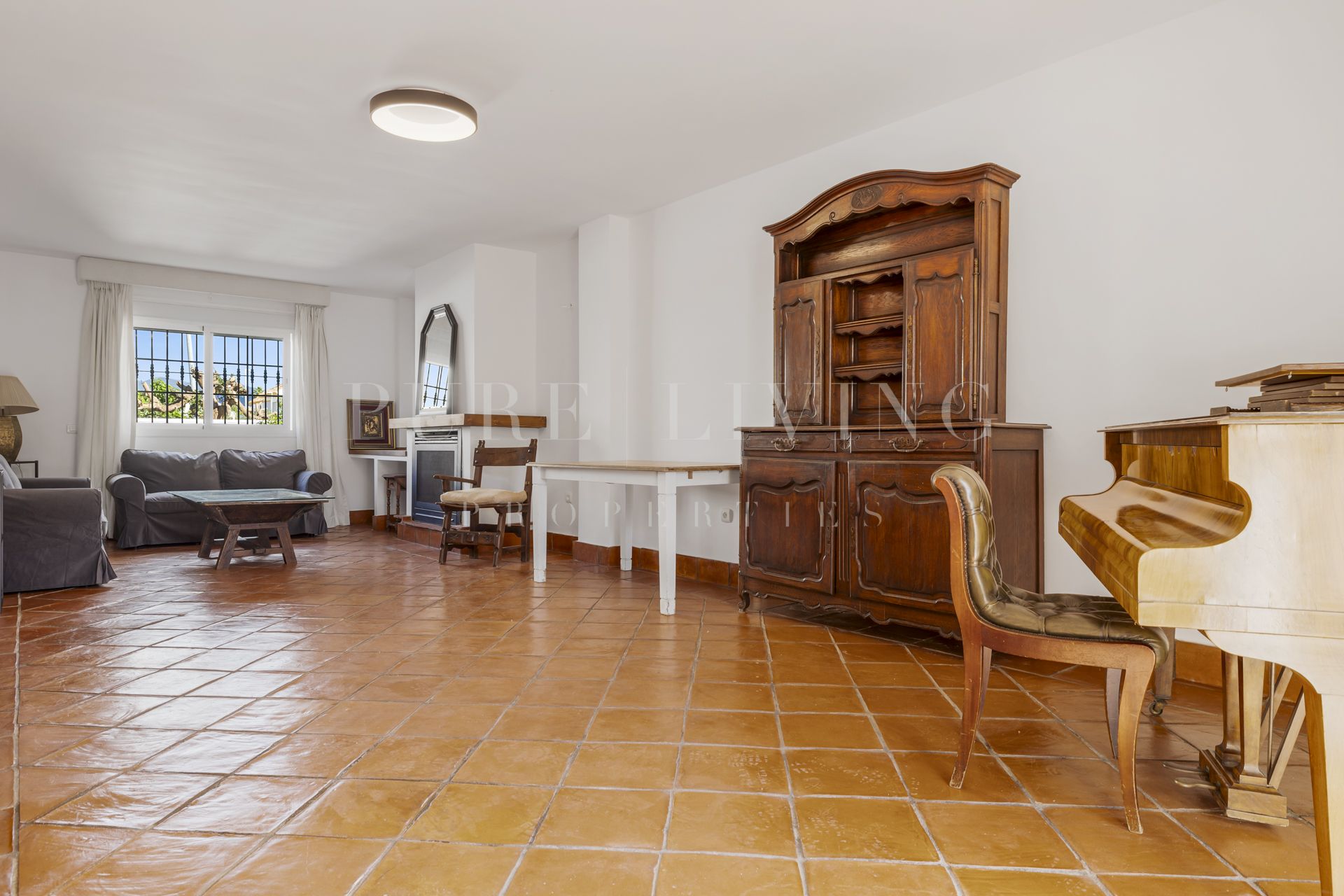 This charming Andalusian-style townhouse combines generous space with character, set in a peaceful and established location within walking distance of local amenities and the centre of San Pedro de Alcántara. Its south-facing orientation ensures natural light throughout the day, while the upper terrace offers pleasant countryside views and a glimpse of the sea.