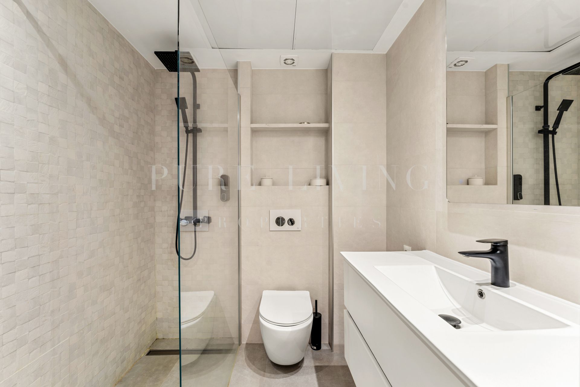The apartment comprises of four bedrooms and three en-suite bathrooms. The open-plan living area has been thoughtfully designed to maximise both space and functionality, flowing effortlessly onto a generous terrace that serves as a natural extension of the home. Whether enjoying family meals, entertaining guests, or unwinding outdoors, this area significantly enhances the property’s lifestyle appeal. Large sliding doors allow natural light to fill the interiors, while features such as electric blinds, a fully equipped Balay kitchen, and high-quality finishes ensure both comfort and convenience.