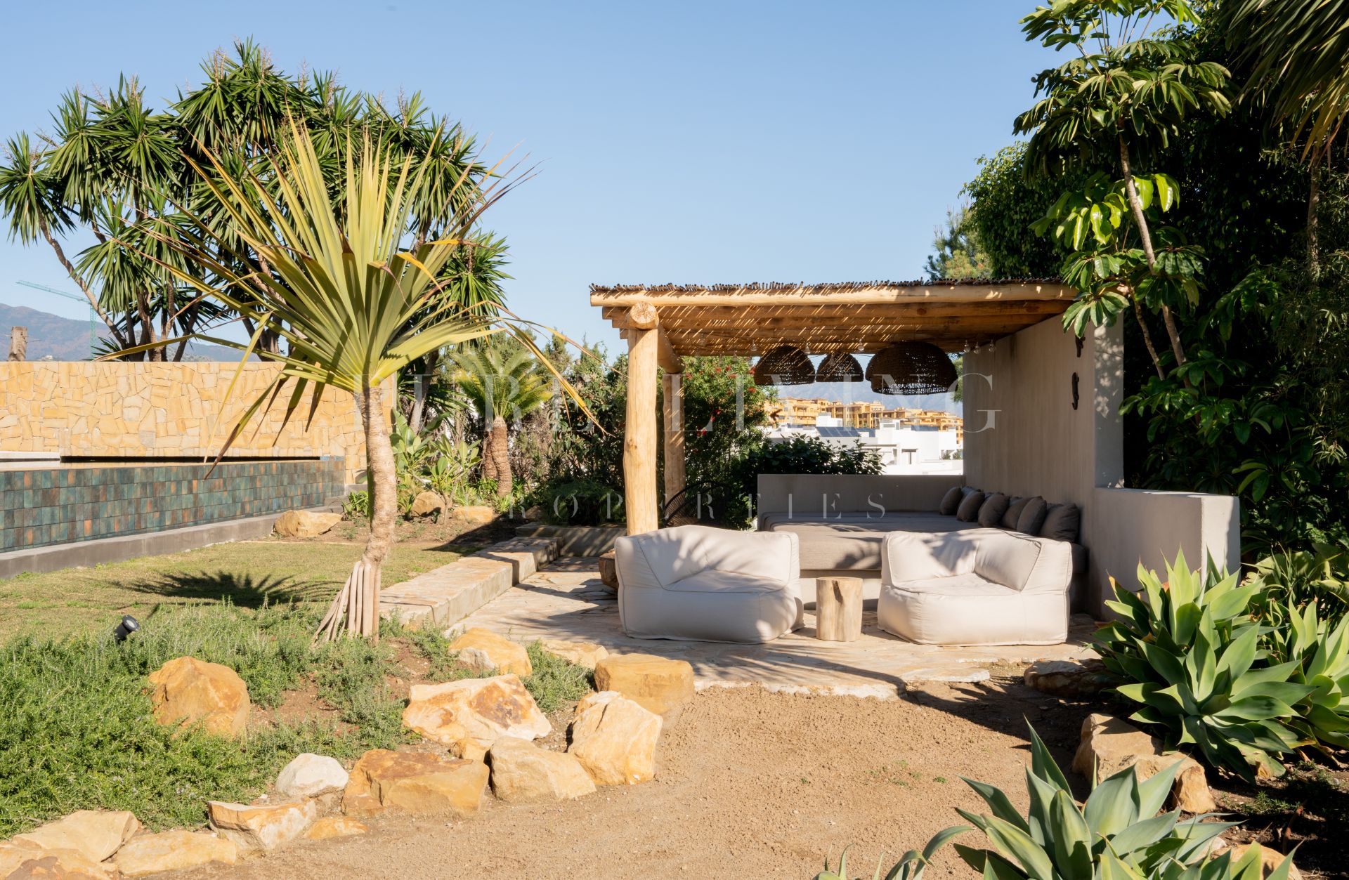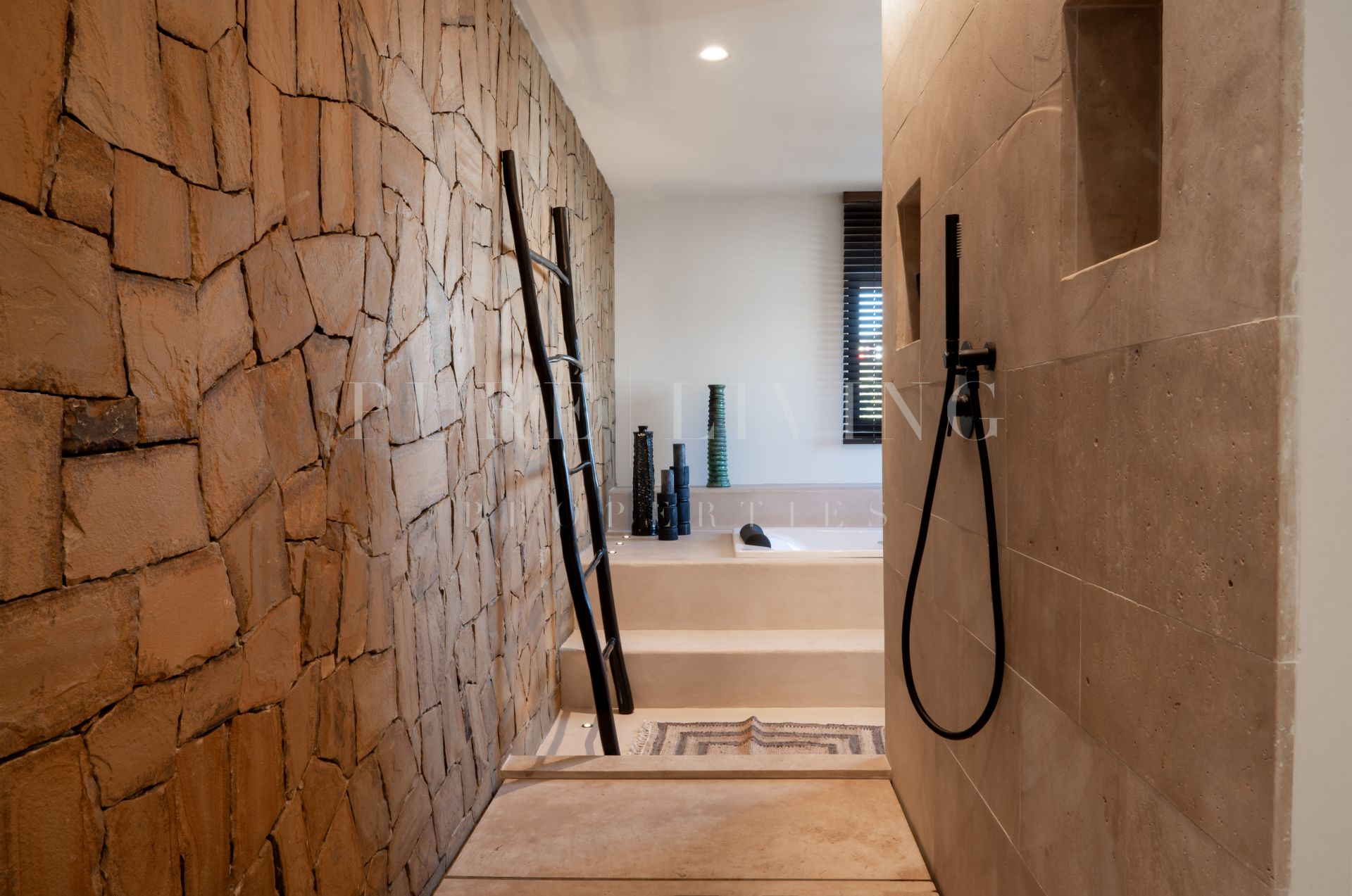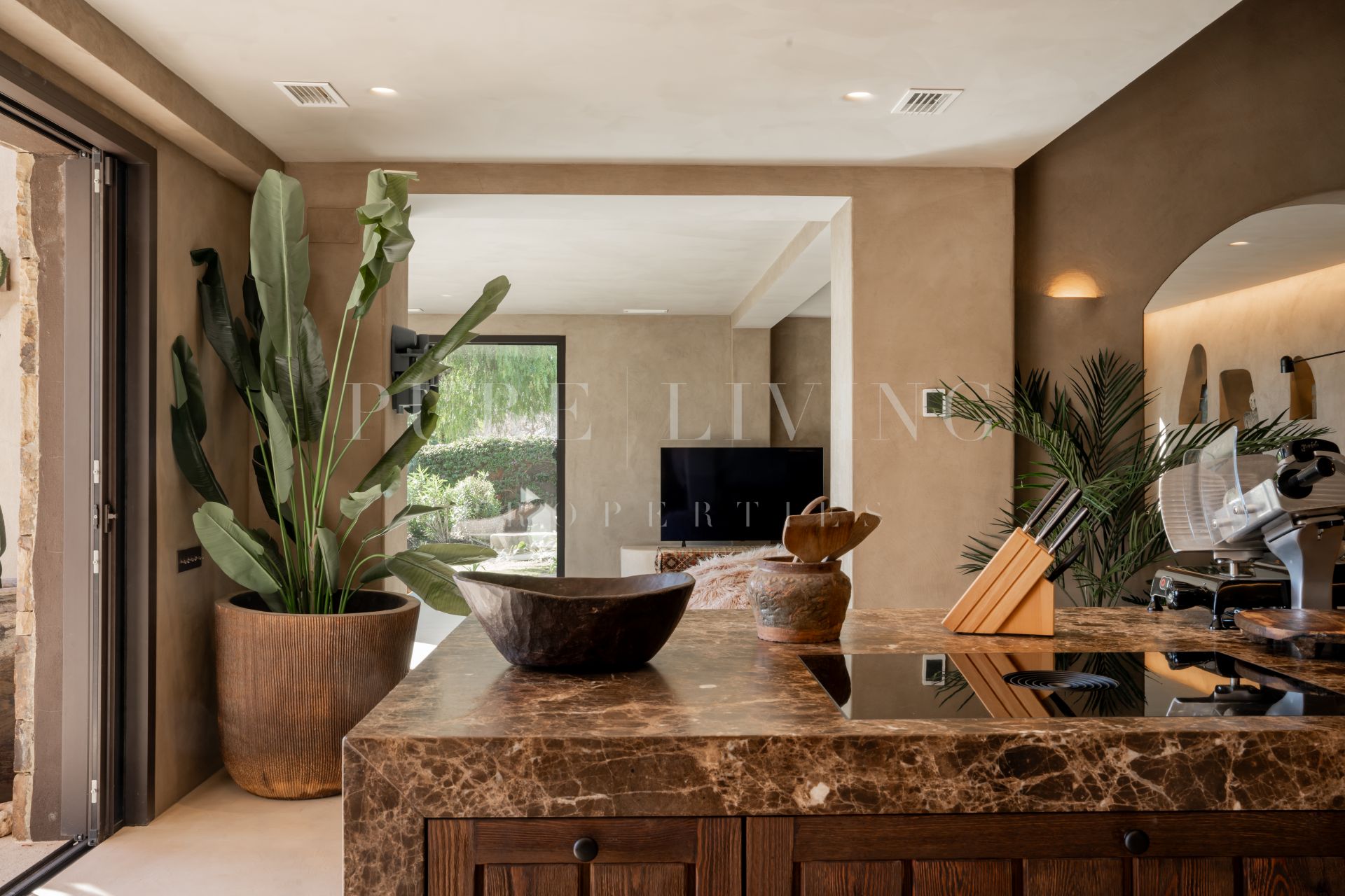 An extraordinary and completely unique property, this remarkable villa underwent a full renovation in 2024, seamlessly merging design influences from Mexico, Thailand, Ibiza, and Andalucía. Nestled in the emerging Selwo area, it enjoys stunning sea views from the garden and pool level — a serene blend of beauty, comfort, and contemporary elegance.