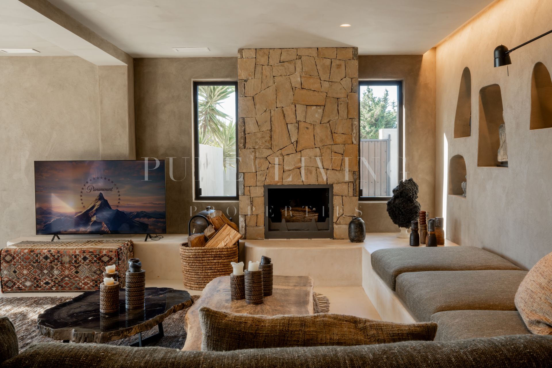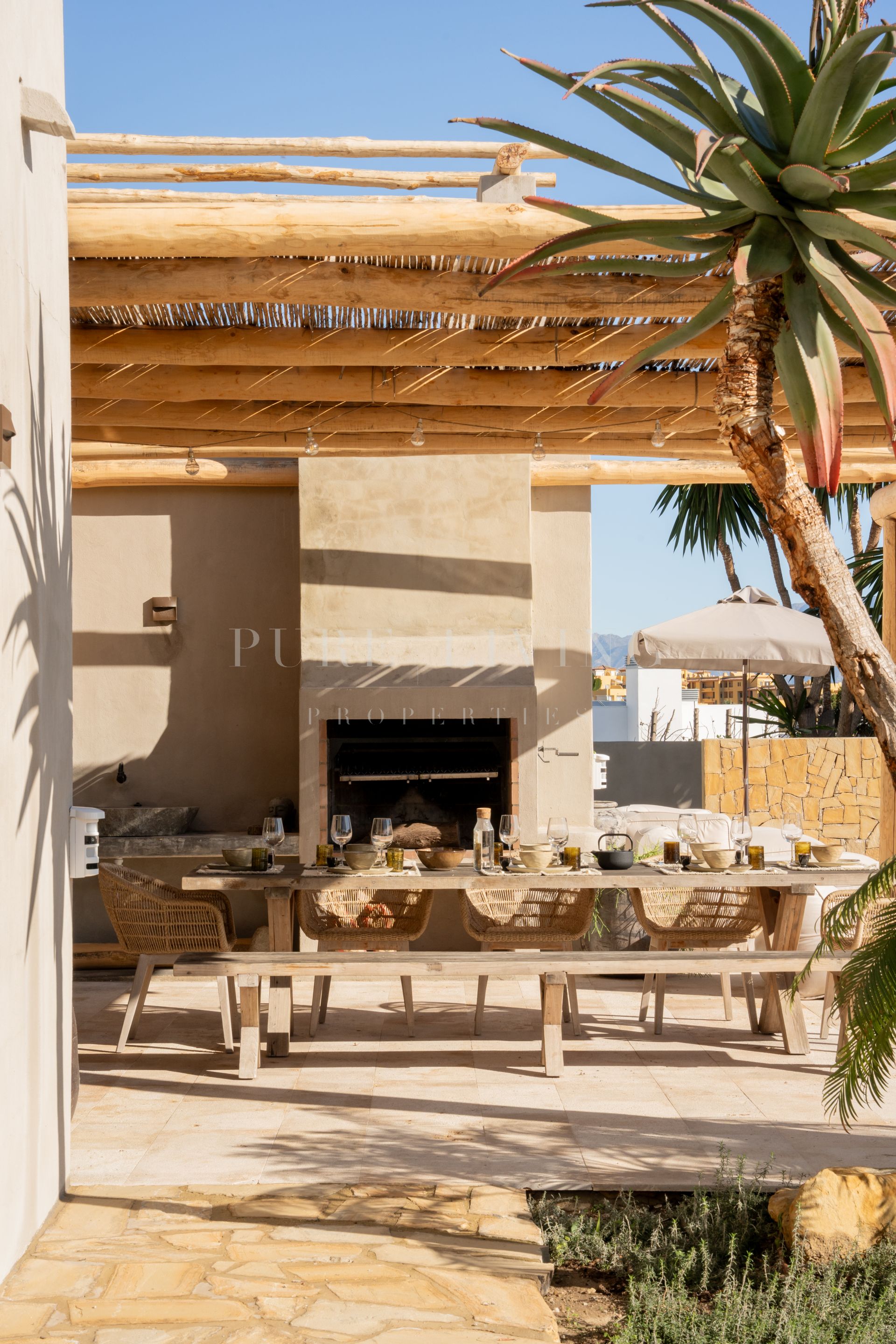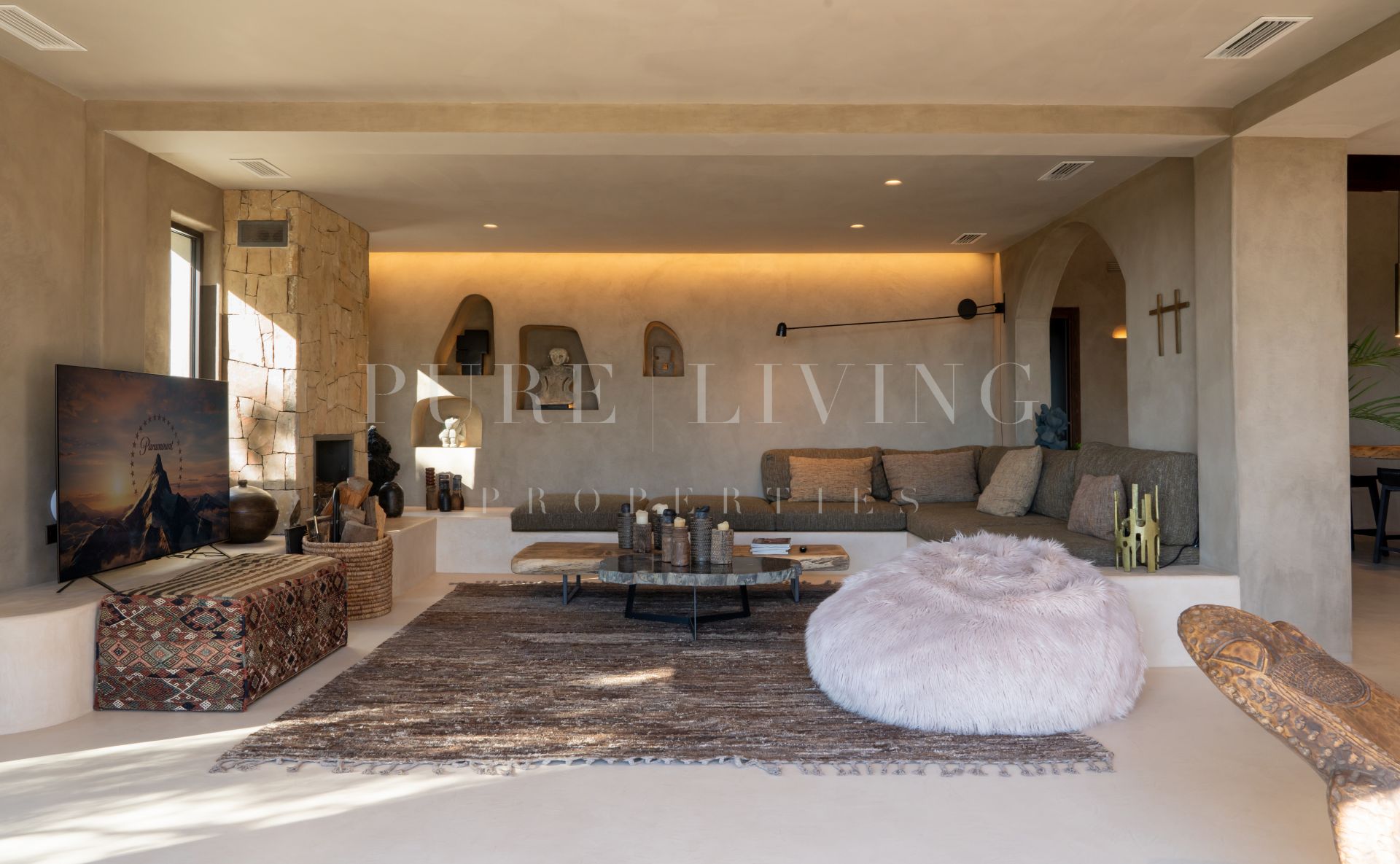 An extraordinary and completely unique property, this remarkable villa underwent a full renovation in 2024, seamlessly merging design influences from Mexico, Thailand, Ibiza, and Andalucía. Nestled in the emerging Selwo area, it enjoys stunning sea views from the garden and pool level — a serene blend of beauty, comfort, and contemporary elegance.
