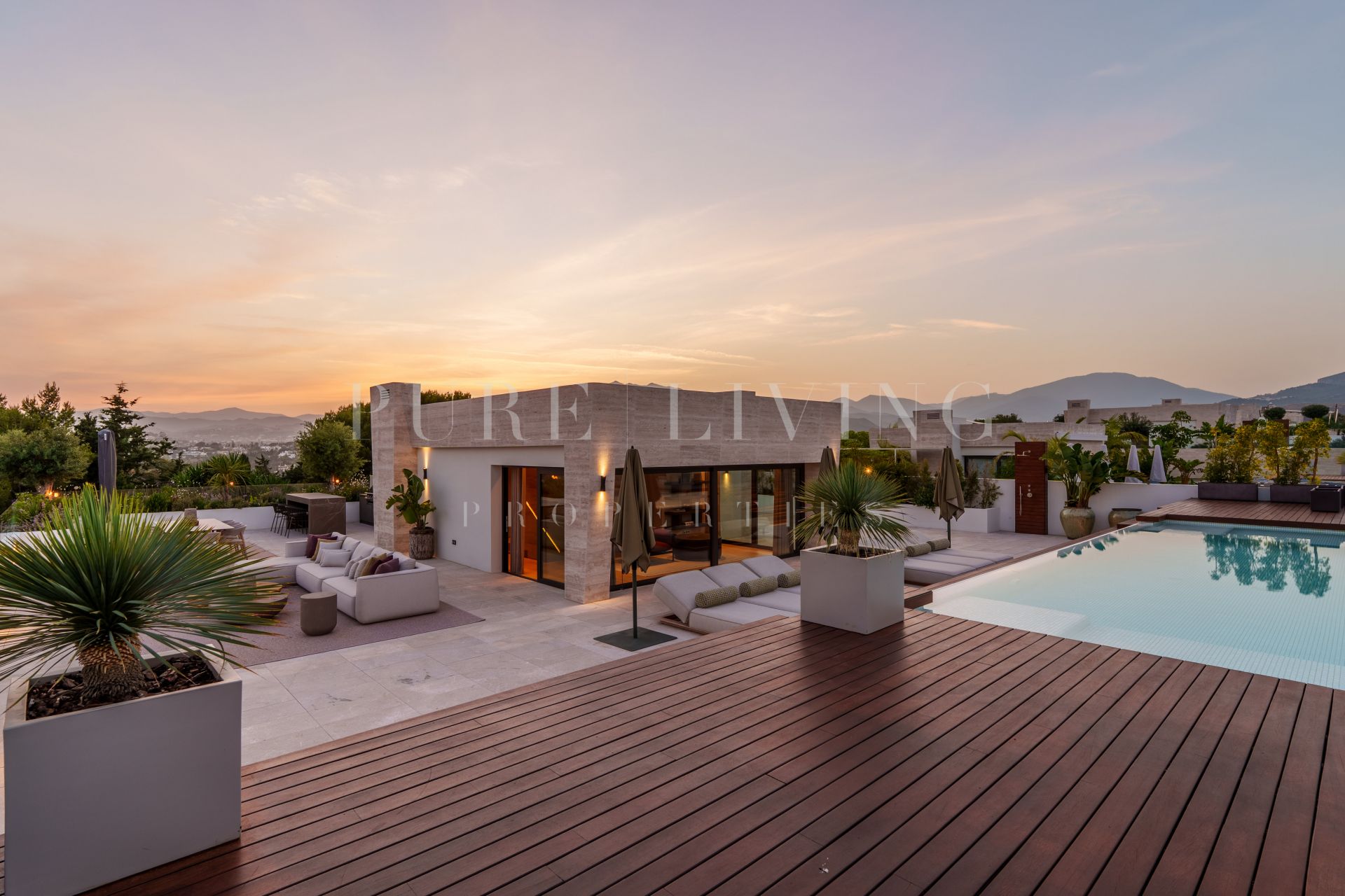 Los acabados de carpintería, de excelente calidad, complementan la sofisticación general de la vivienda. Las terrazas del nivel principal y el solárium ofrecen vistas panorámicas impresionantes, enmarcando el entorno con una belleza natural incomparable.