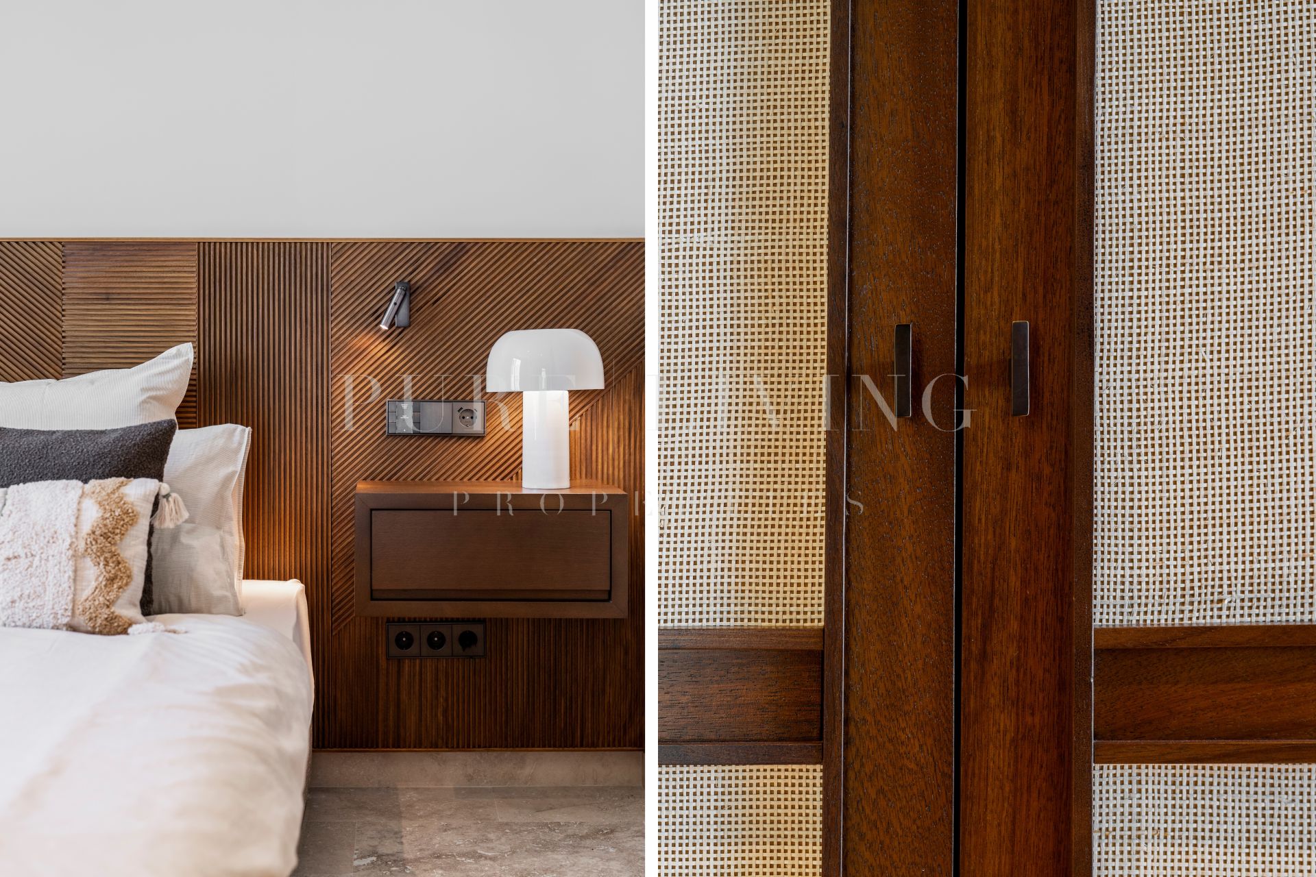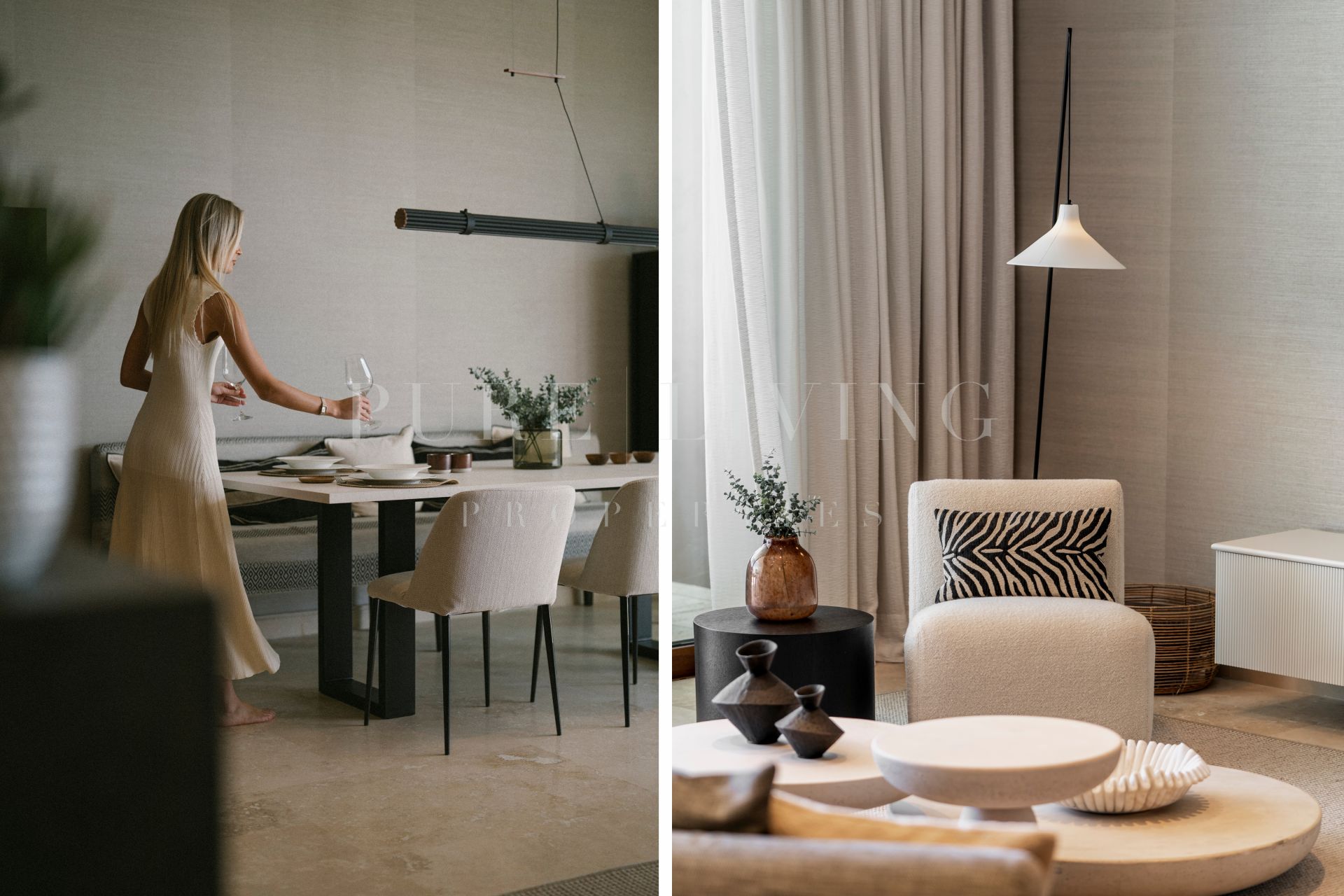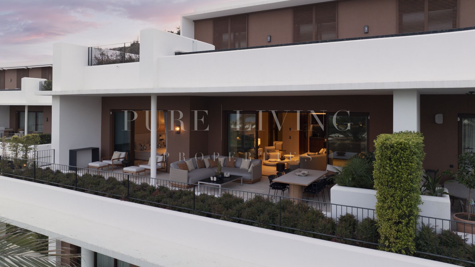 En el interior, el apartamento dispone de tres amplios dormitorios en suite, cada uno con lujosos baños de mármol de Carrara, equipados con doble lavabo y duchas a ras de suelo. La suite principal incluye un vestidor, bañera y grandes ventanales que se abren a la terraza. Los acabados en madera de alta calidad y una suave paleta de tonos arena crean una atmósfera cálida y acogedora, que se integra armoniosamente con el entorno natural.