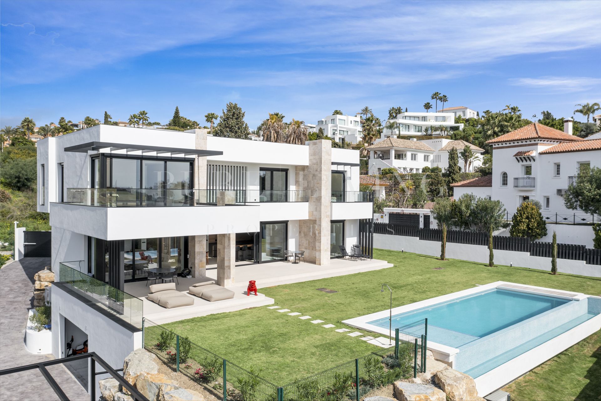 Enclavada en una codiciada zona residencial de Benahavís, esta villa contemporánea de reciente construcción (2024) ofrece un equilibrio perfecto entre exclusividad, confort y diseño. Con orientación sur-oeste, la propiedad goza de luminosidad durante todo el día, vistas panorámicas a las montañas y un toque de mar desde la planta alta. Situada en un entorno sereno, se encuentra a solo unos minutos en coche de las playas y del centro de San Pedro, así como de una amplia oferta de servicios.