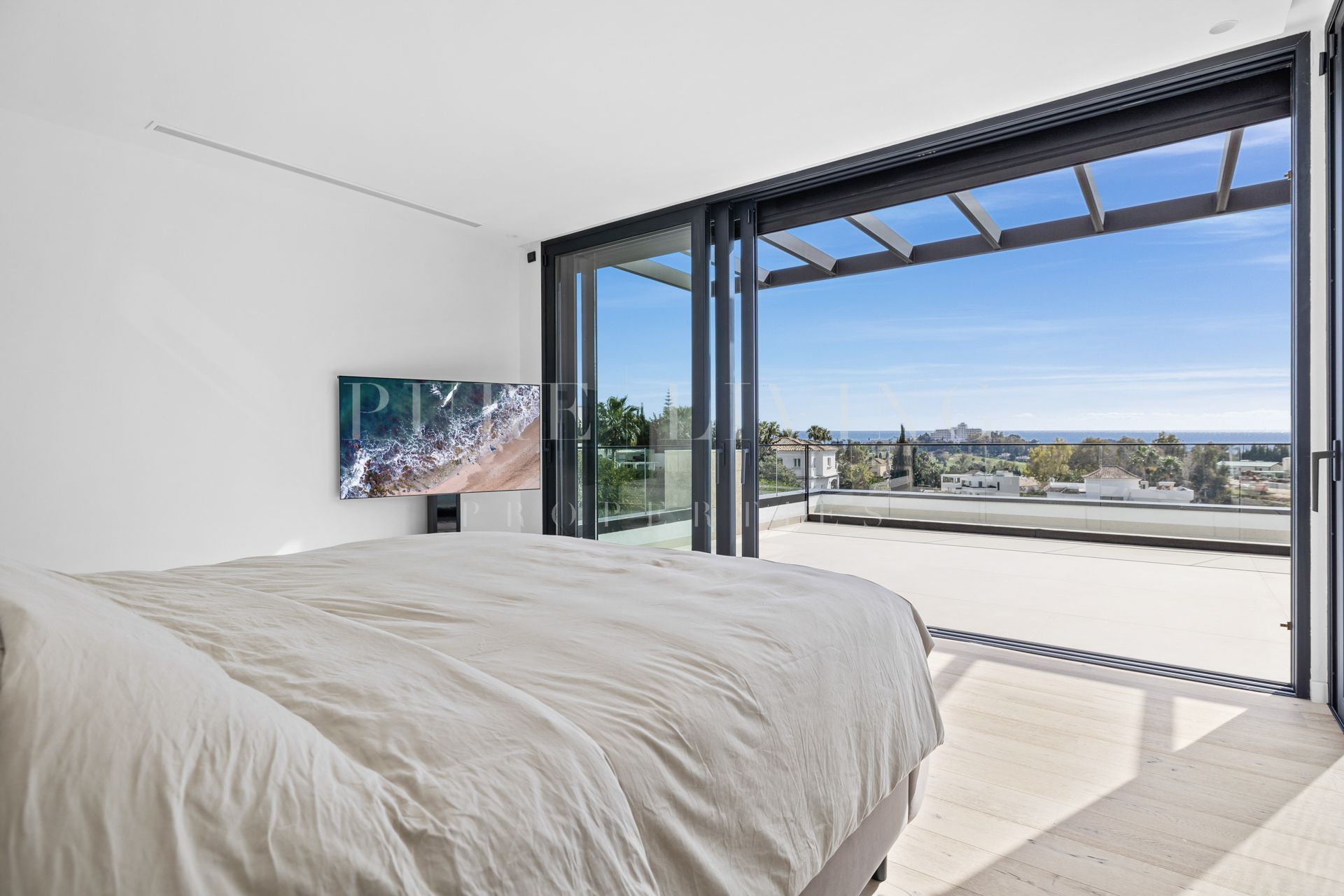 Terraza privada, Piscina de agua salada, Tiendas cerca, Cerca de la ciudad, Cerca del puerto, Colegios cerca, Vistas a la montaña, Piscina climatizada, Suelo radiante (toda la casa), Sistema domótico, Persianas eléctricas, Armarios empotrados, Comunidad cerrada, Ascensor, Vistas al jardín, Vestidor, Vistas a la piscina, Vistas panorámicas, Aire acondicionado, Cocina totalmente equipada, Sin amueblar, Parque infantil cercano, Suelos de mármol, Cerca de playa / mar, Cerca del golf, Terraza descubierta, Puertas de cristal, Alarma, Muebles opcionales, Cristal doble, Excelente estado.