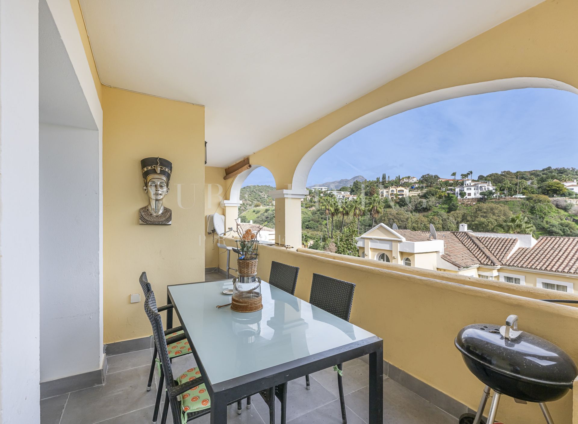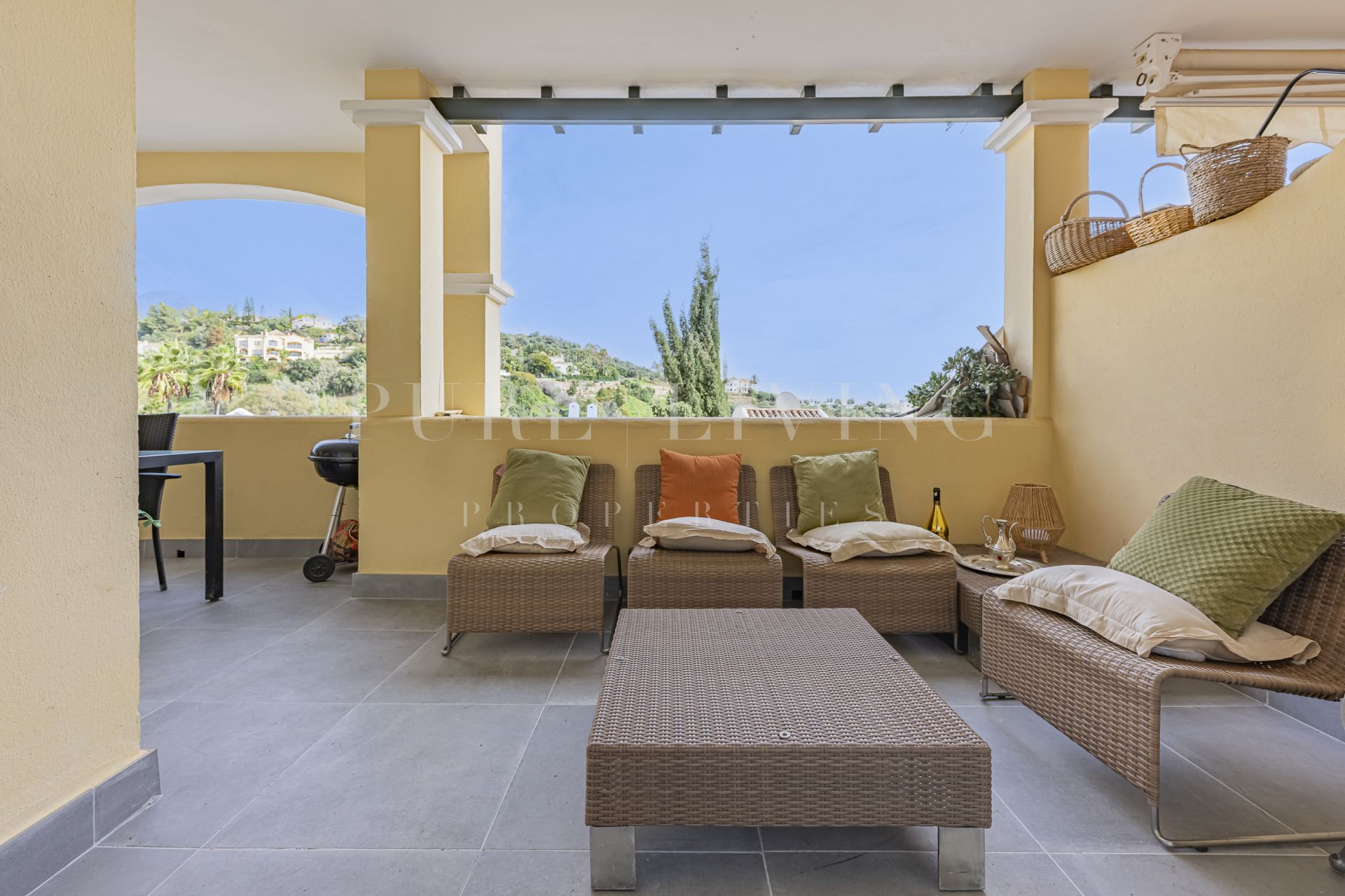 Enclavado en el tranquilo entorno de La Quinta Golf, este apartamento en primera planta ofrece la combinación perfecta de confort, elegancia y comodidad. Con una orientación sur, cuenta con impresionantes vistas panorámicas de las montañas, el campo, e incluso el mar, por lo que es un refugio ideal para aquellos que aprecian la belleza natural y la vida refinada.