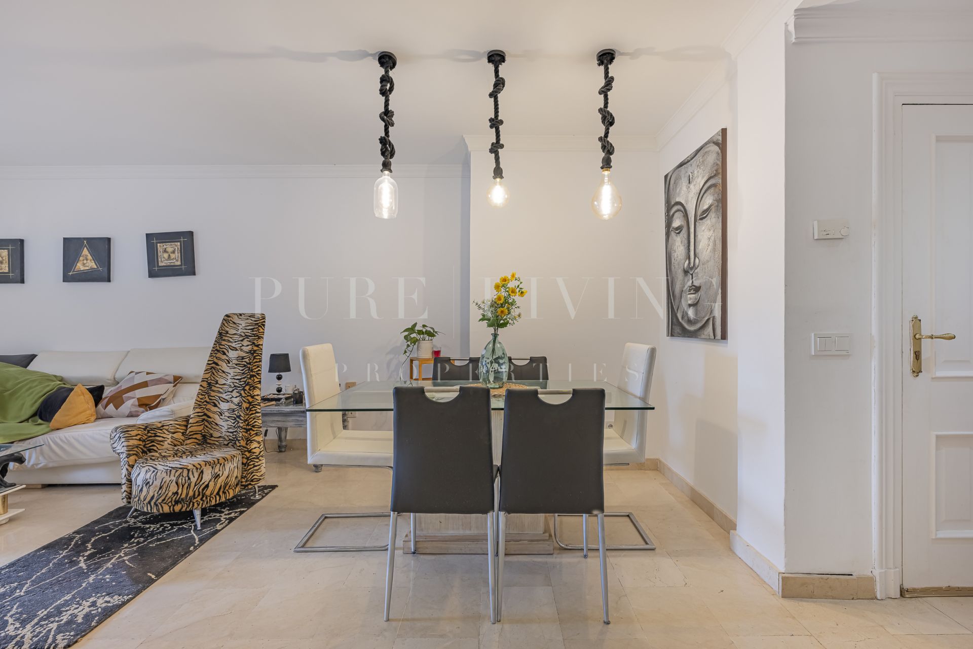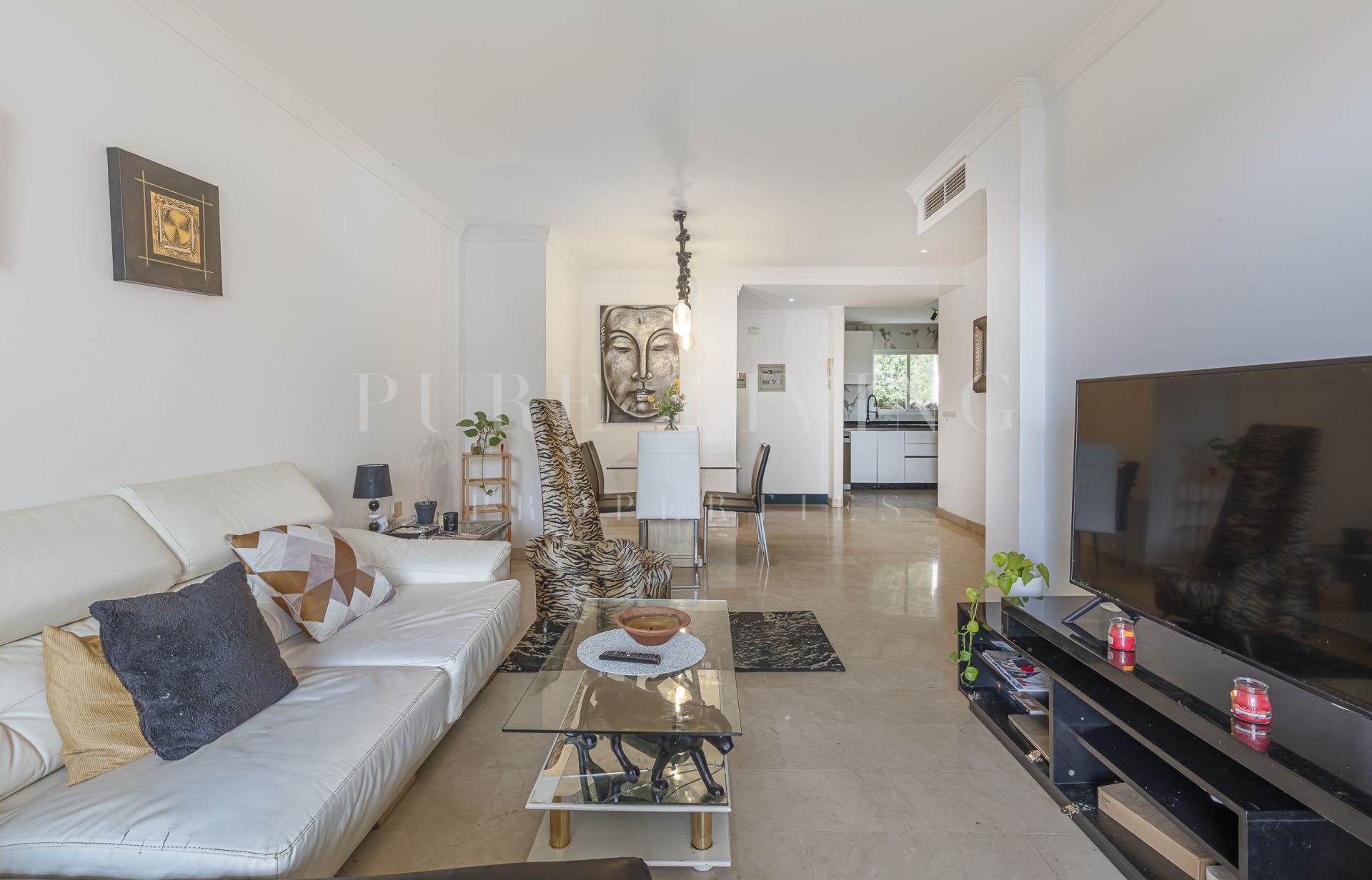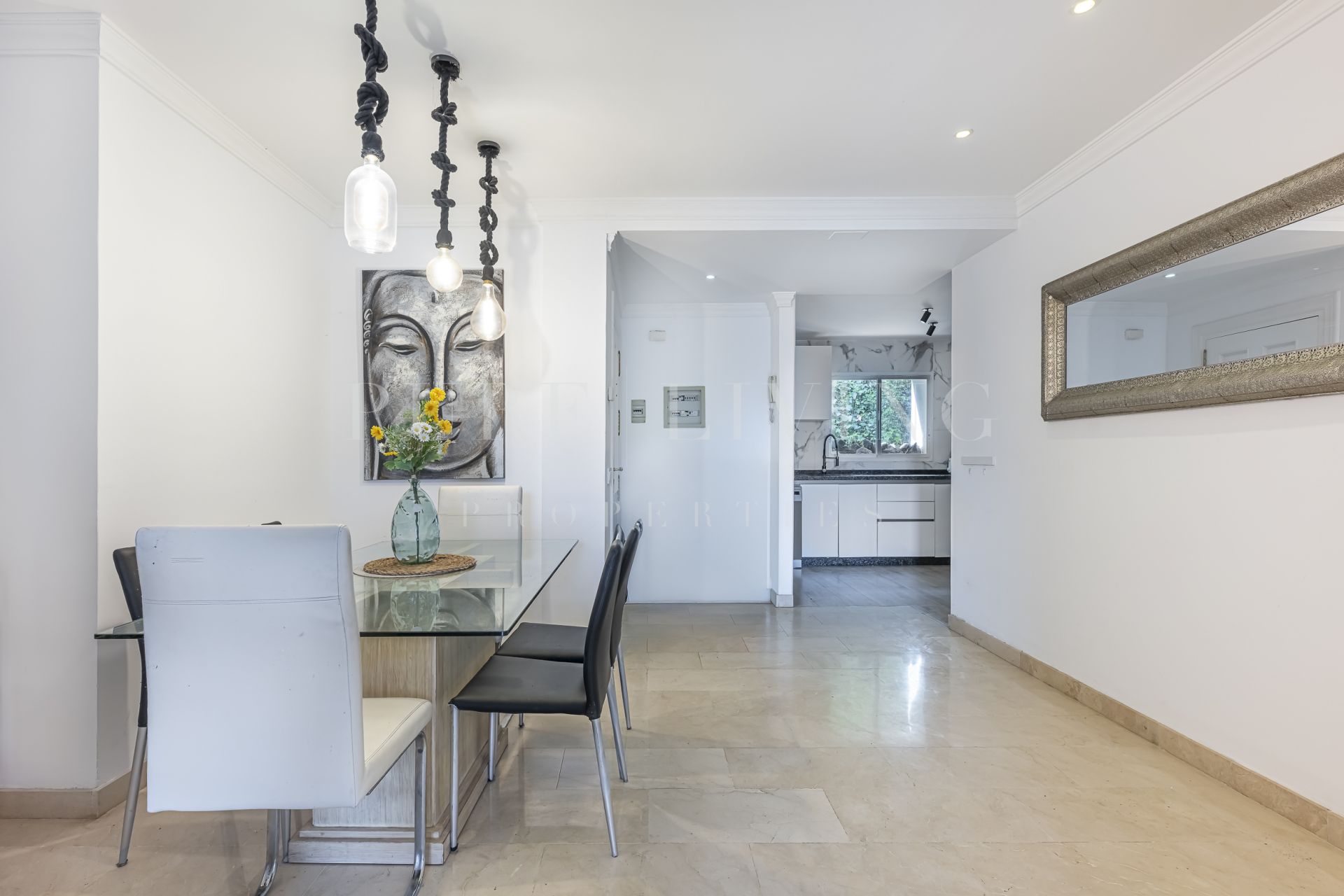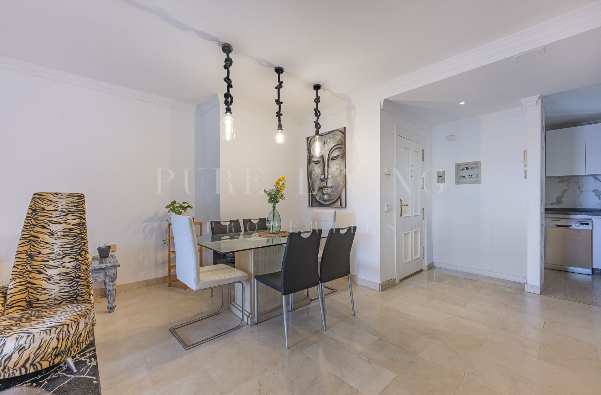 El apartamento cuenta con tres amplios dormitorios y dos cuartos de baño, todos diseñados con funcionalidad y estilo en mente. El luminoso y aireado salón se abre a una terraza privada, perfecta para relajarse o celebrar cenas al aire libre mientras se disfruta de las impresionantes vistas. Un comedor independiente y una cocina totalmente equipada con electrodomésticos modernos garantizan una vida cotidiana sin esfuerzo.