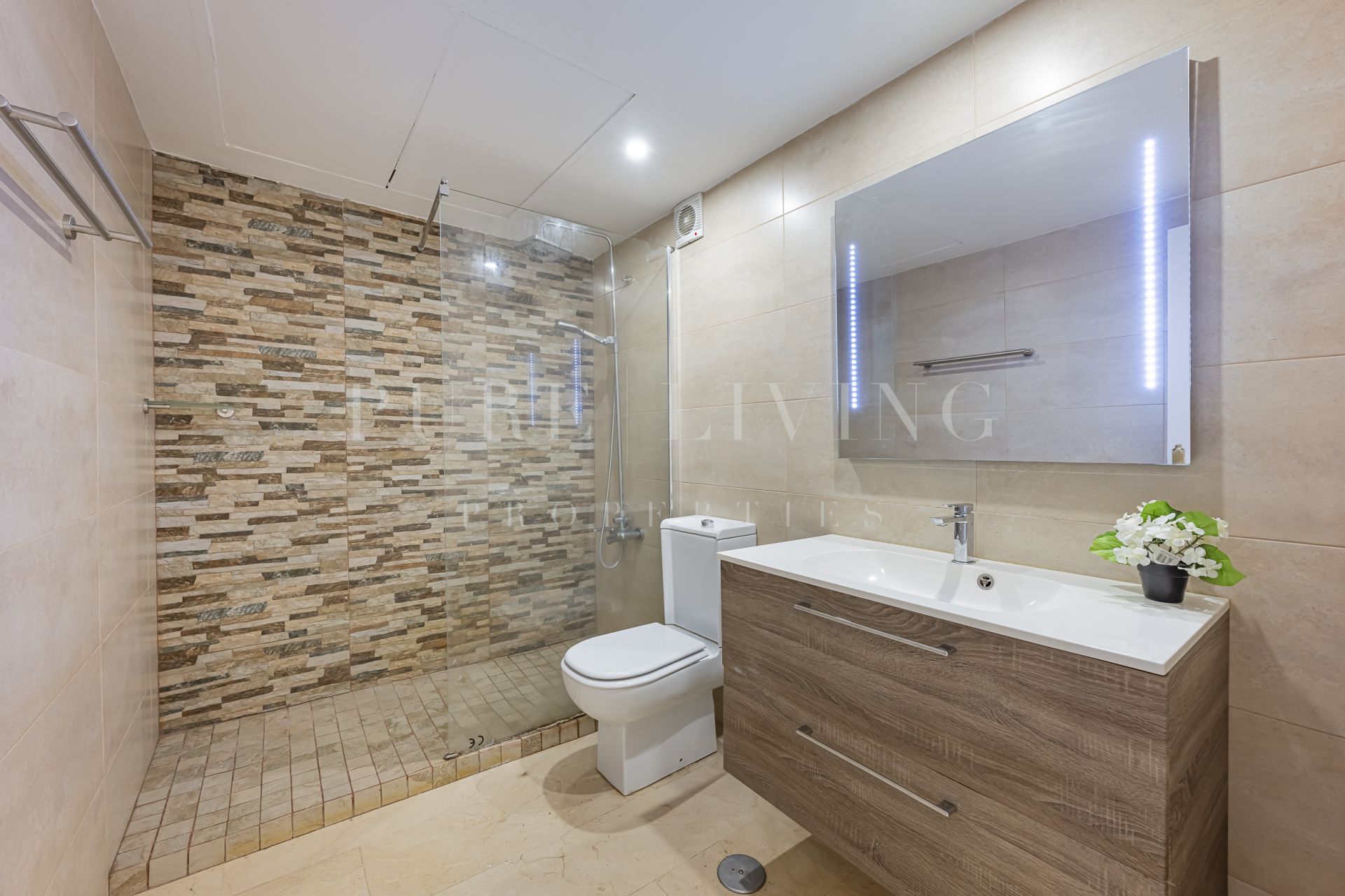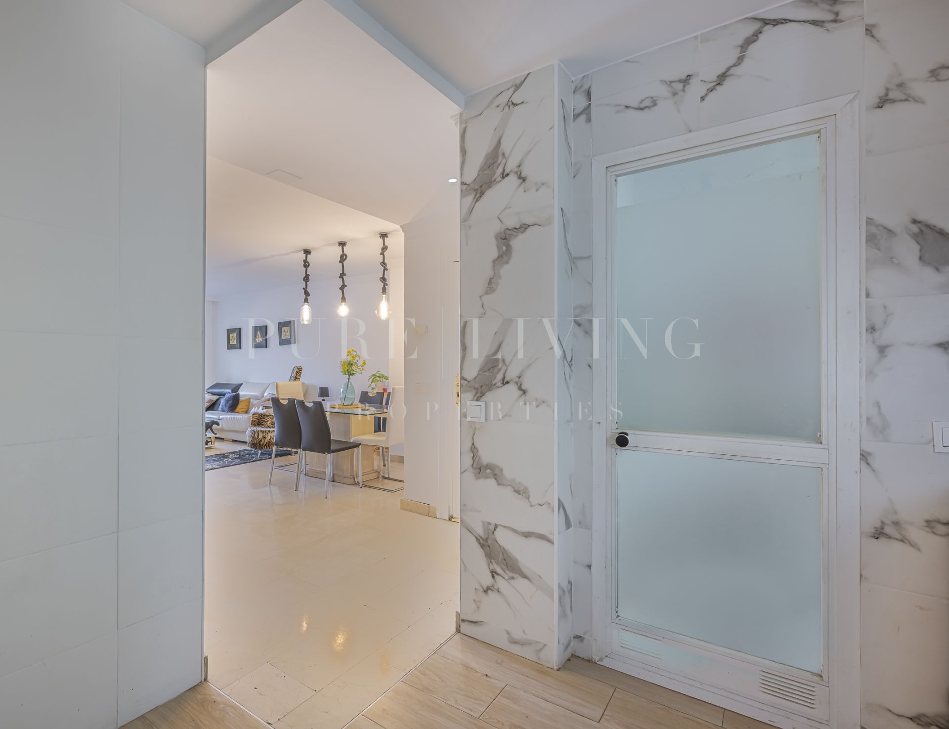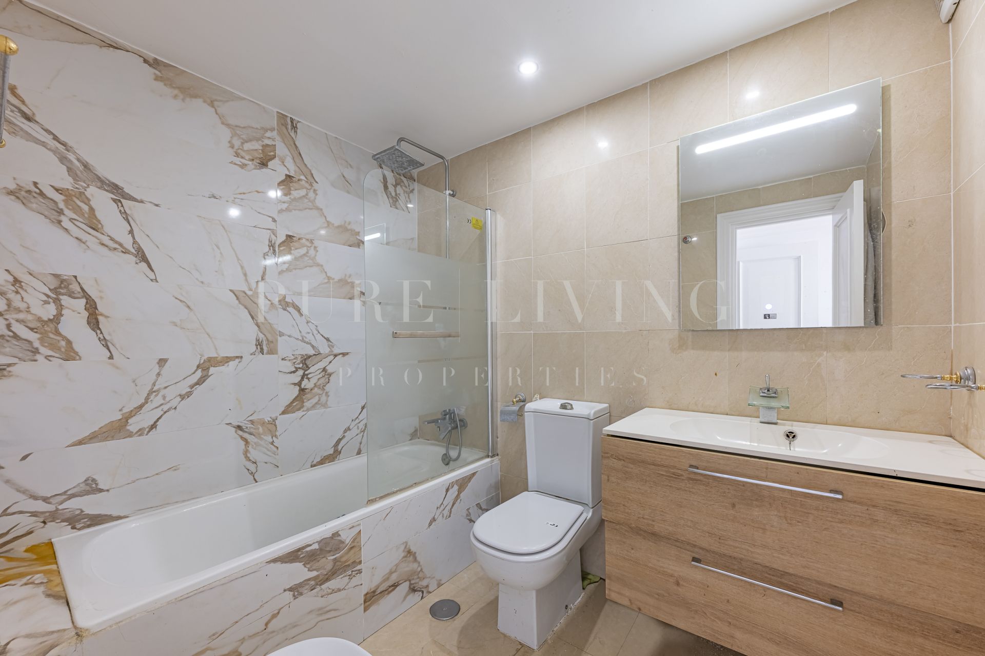 Fabricado con materiales de alta calidad, el apartamento cuenta con elegantes suelos de mármol y puertas de cristal que añaden un toque de sofisticación. Otras comodidades adicionales incluyen aire acondicionado, armarios empotrados y un lavadero, garantizando tanto la comodidad como la practicidad.